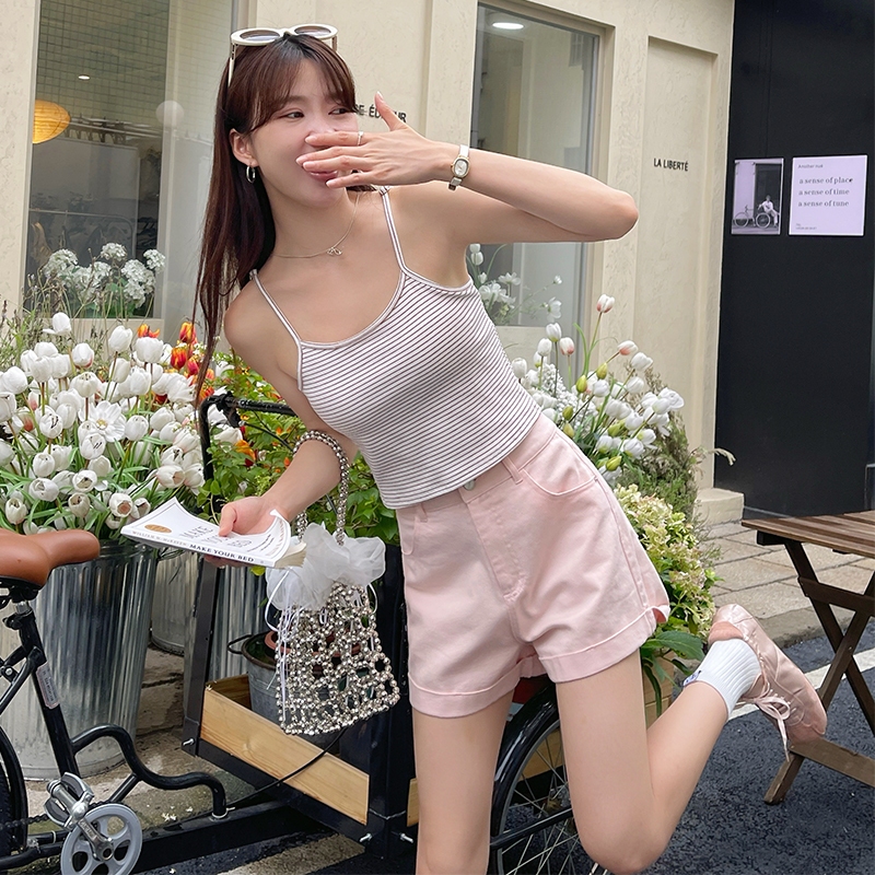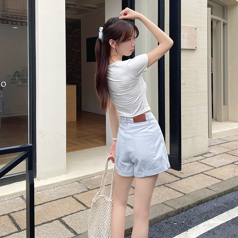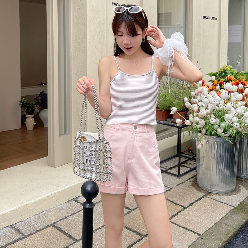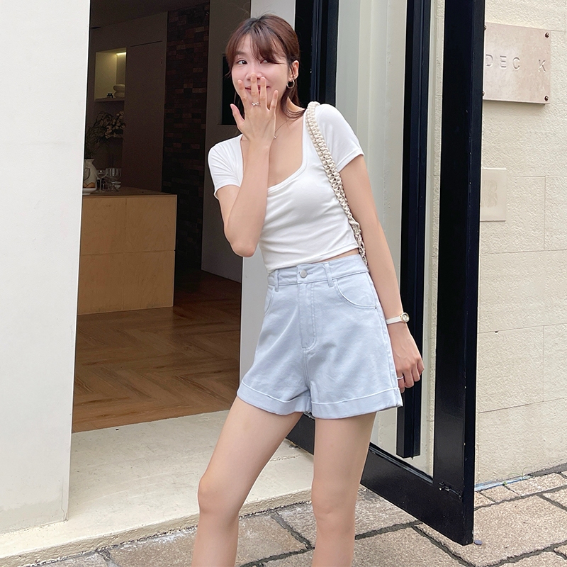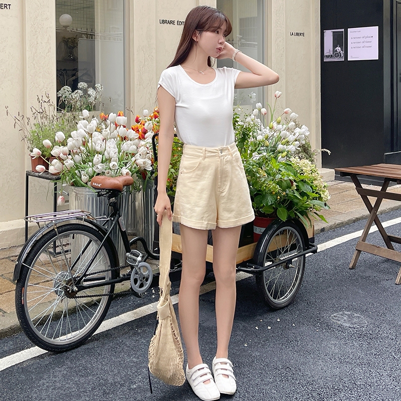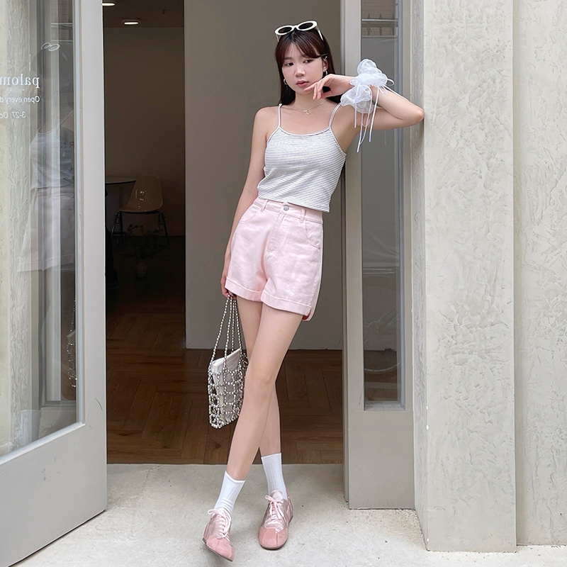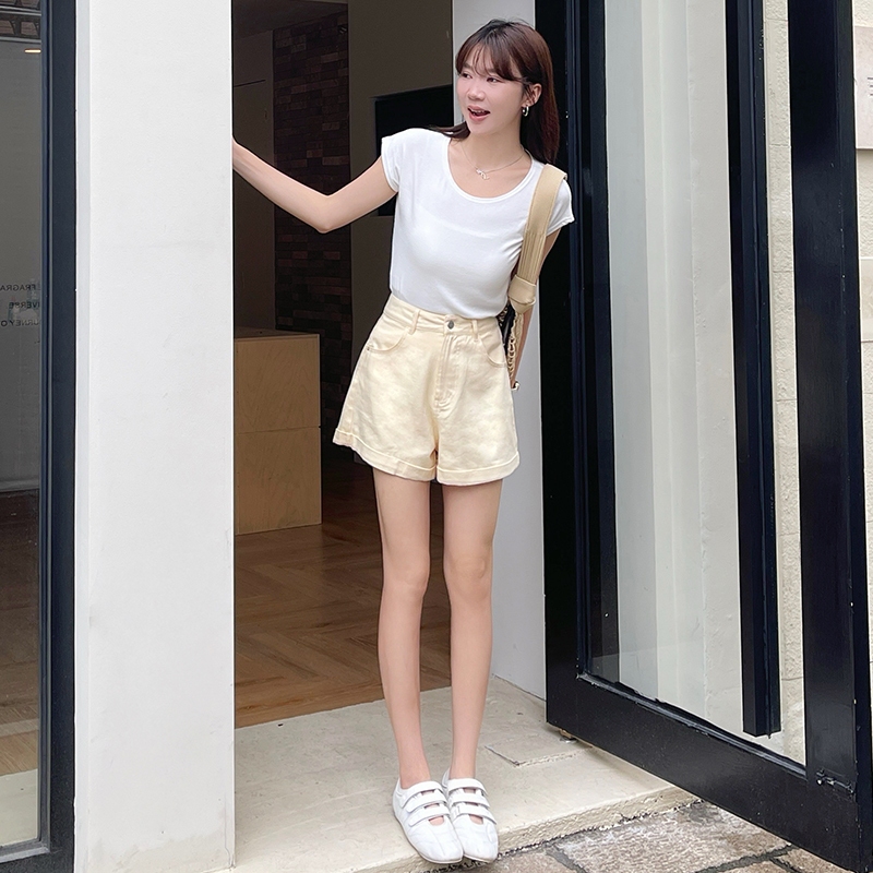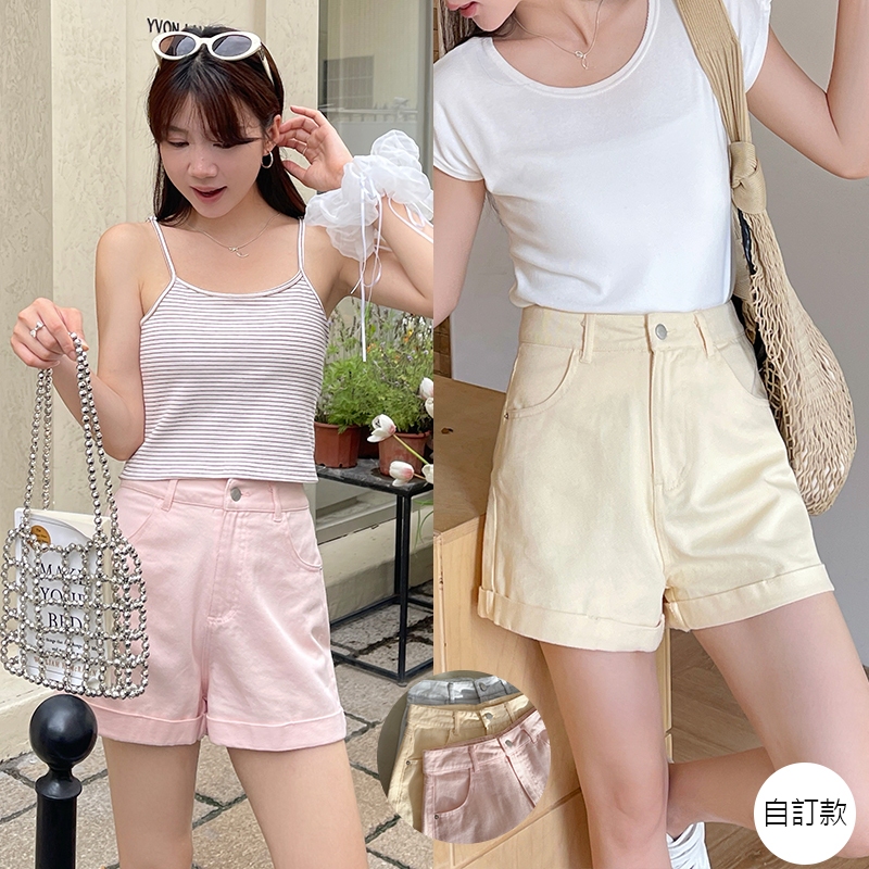 【HARPER】品牌自訂視覺顯瘦全棉短褲 | 現貨 短褲 褲子 顯瘦【PNA27221J】黃,S|黃,M|黃,L|柔和桃,S|柔和桃,M|柔和桃,L|baby藍,S|baby藍,M|baby藍,LShortsHARPER