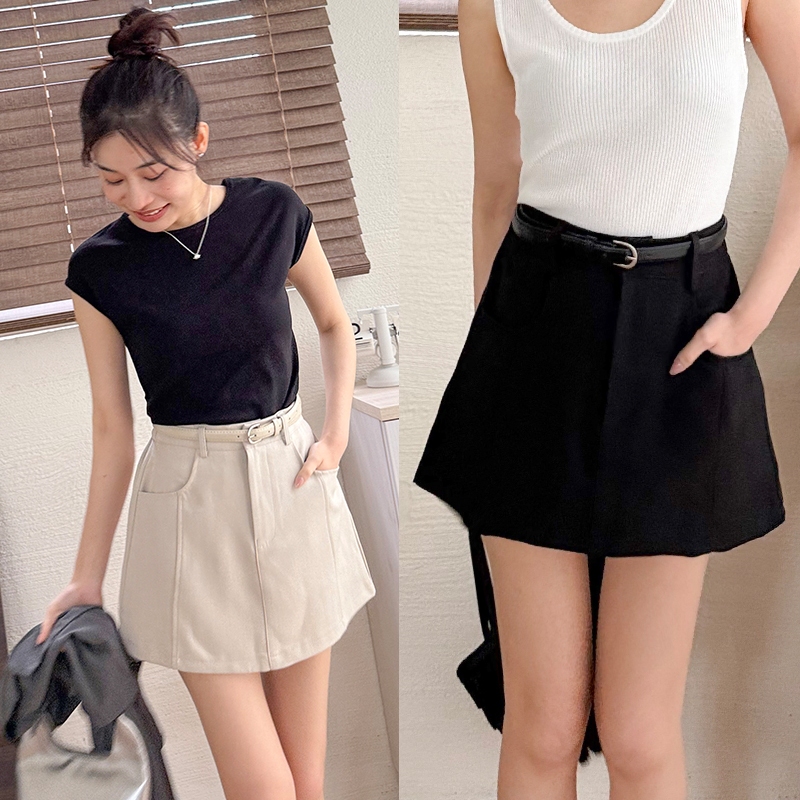 【HARPER】俐落簡約A字短褲裙 附皮帶 | 現貨 褲裙 短褲【SKC48724J】