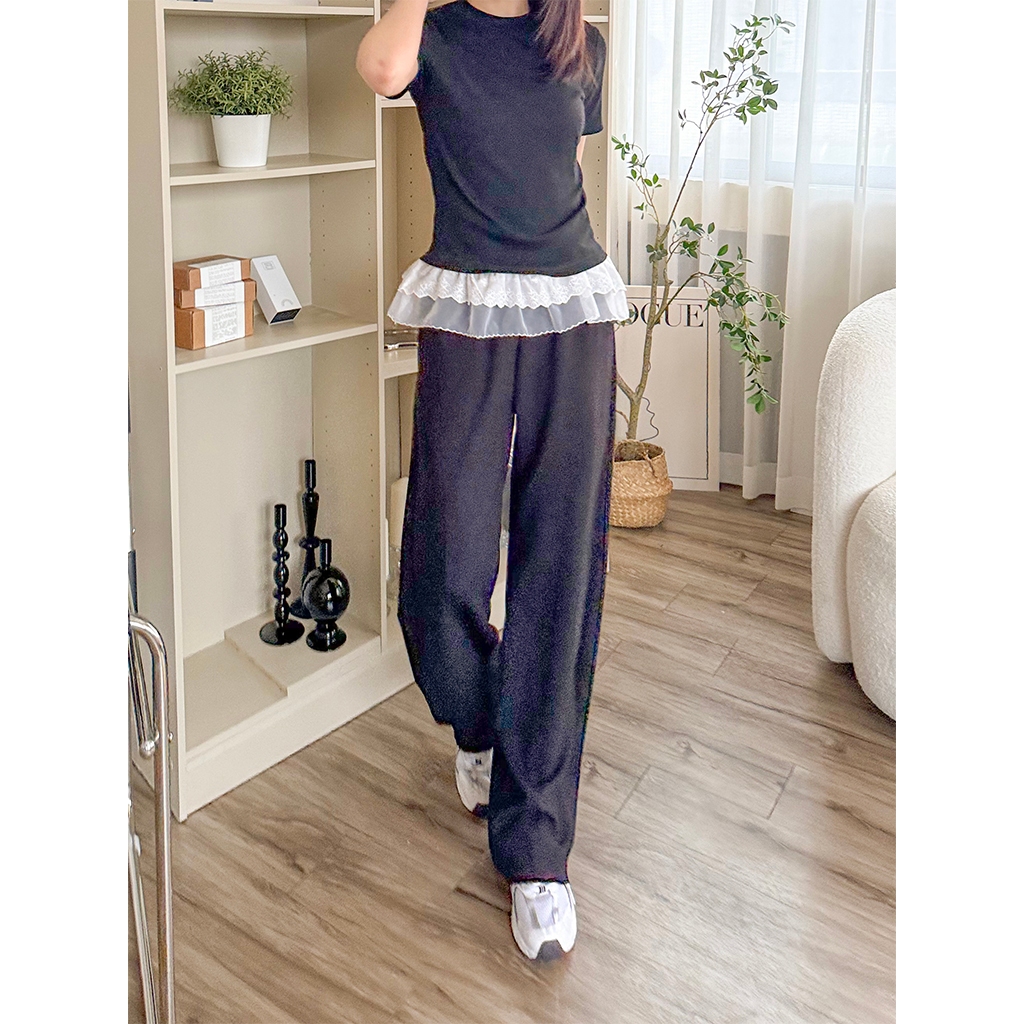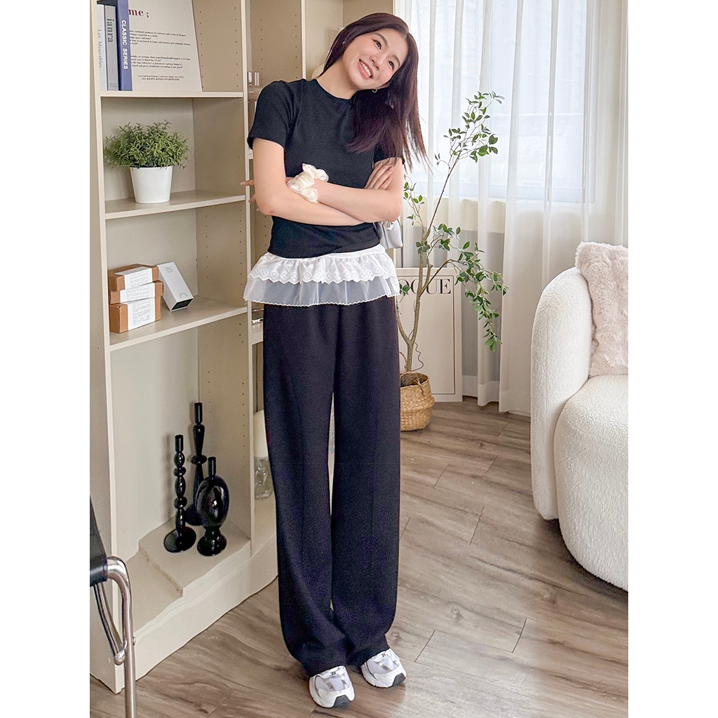 【HARPER】顯瘦車線棉質寬褲 | 現貨 寬褲 褲子 棉褲【PNA33416J】米杏,F|黑,FPantsHARPER