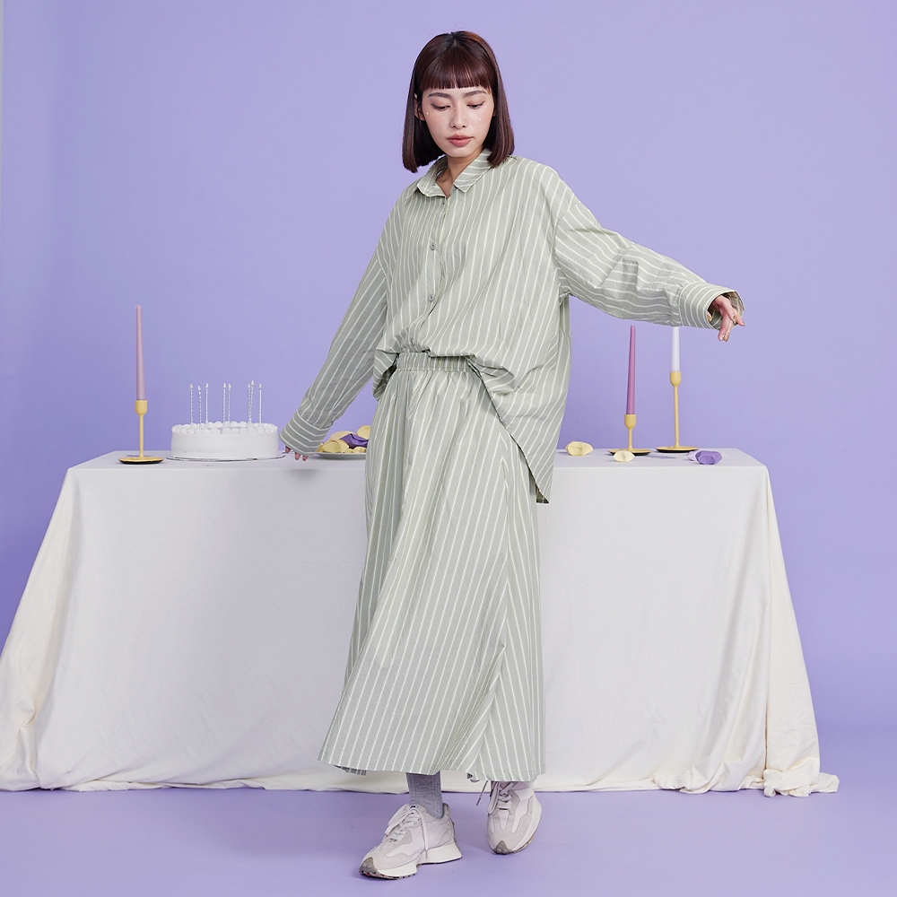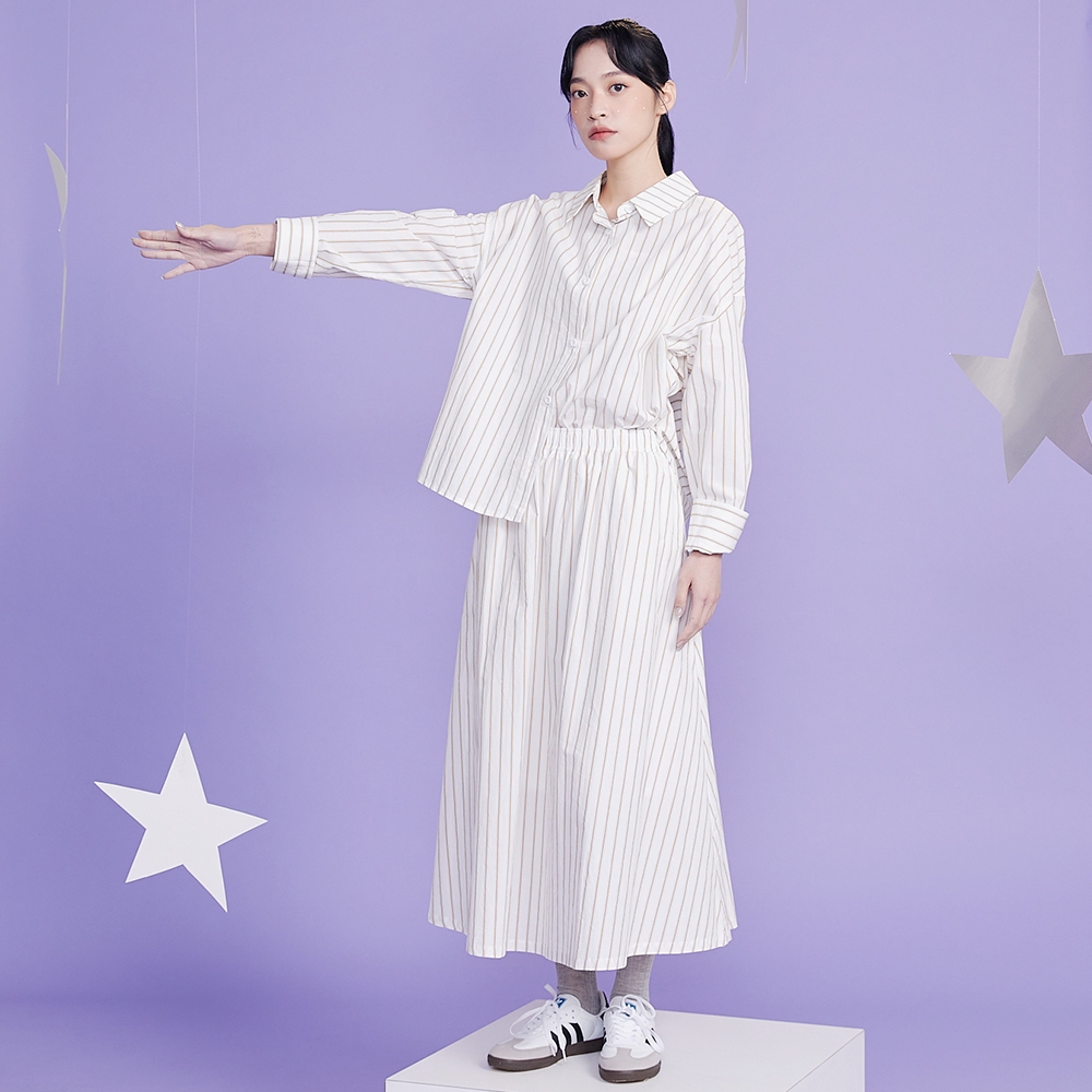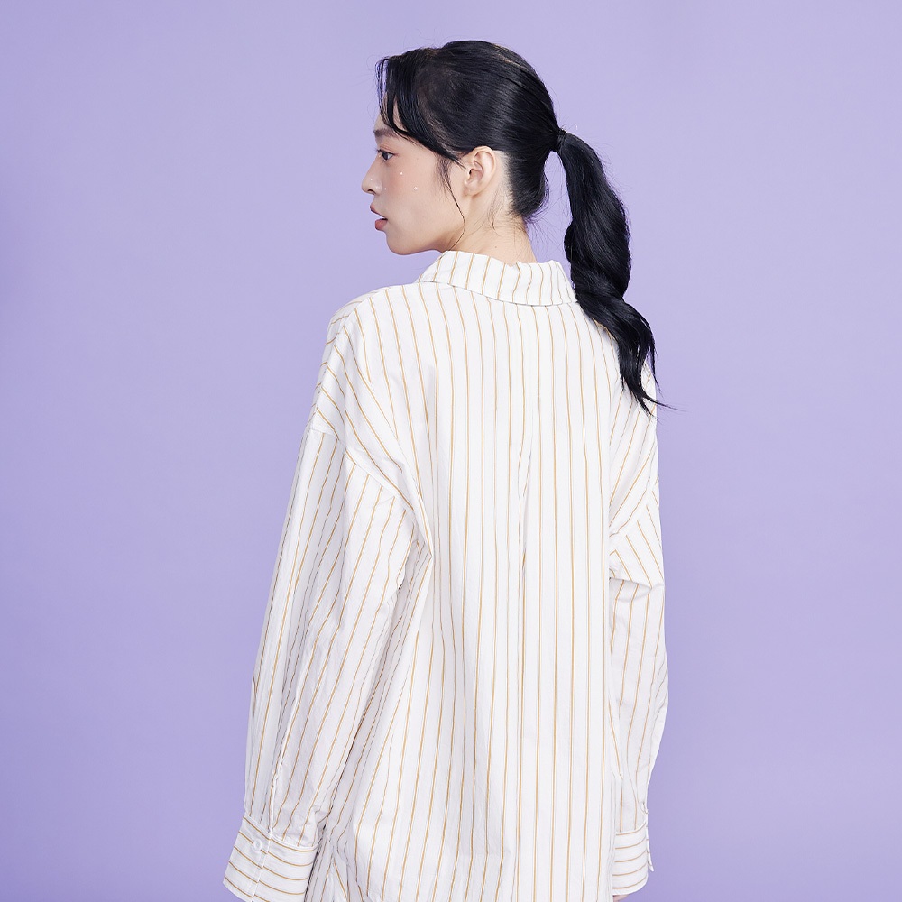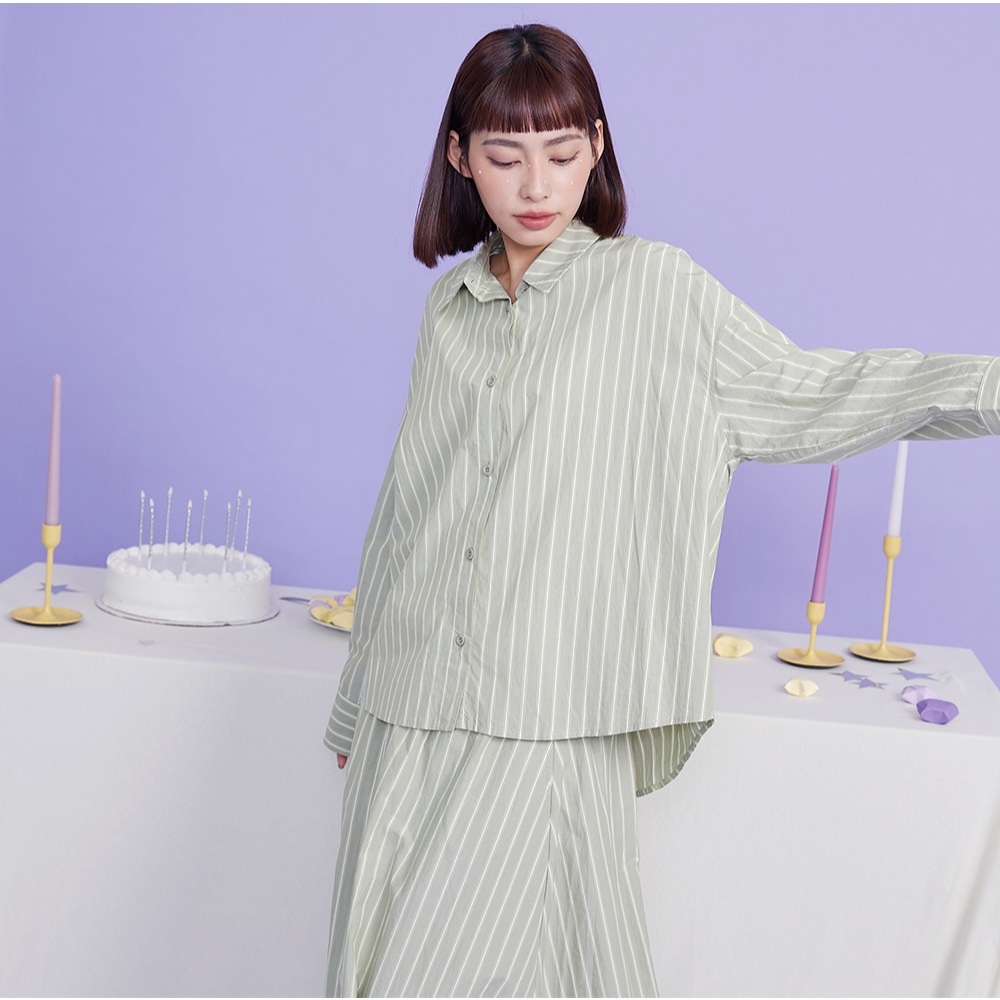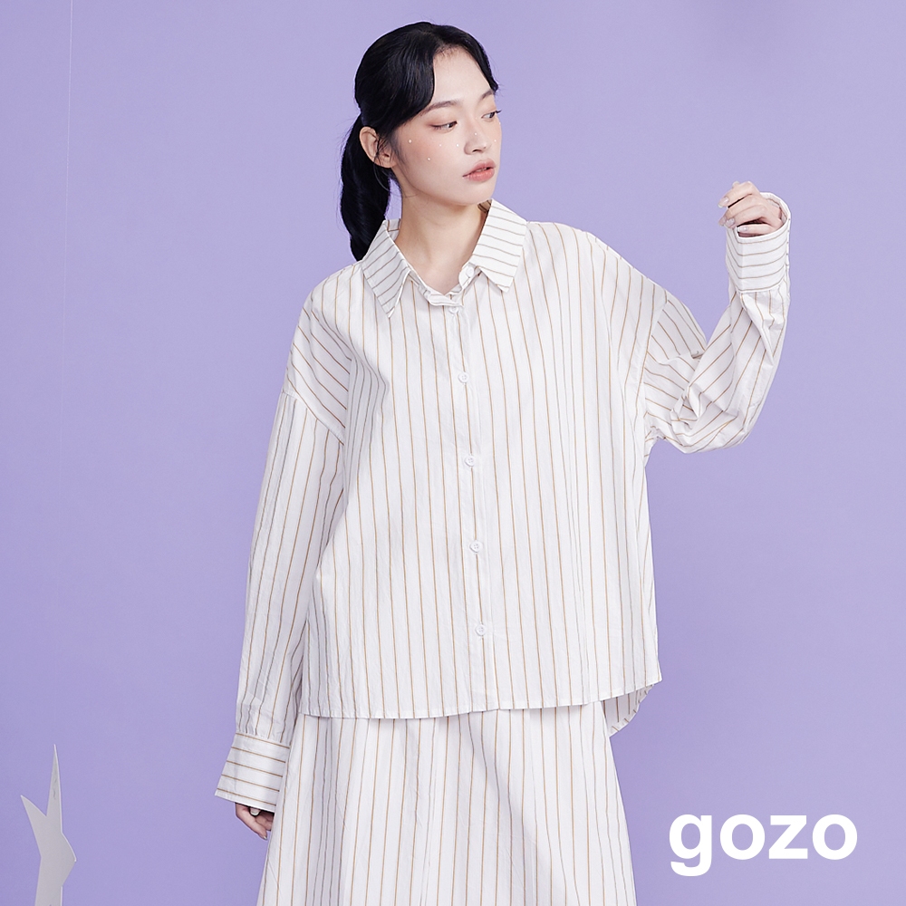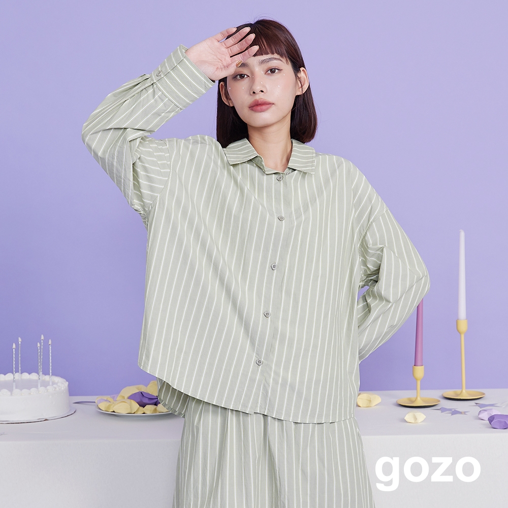【gozo】水洗純棉條紋長袖襯衫(白色/綠色_F) | 女裝 襯衫領 百搭白色,F|綠色,FShirts & Blousesgozo 品牌旗艦店
