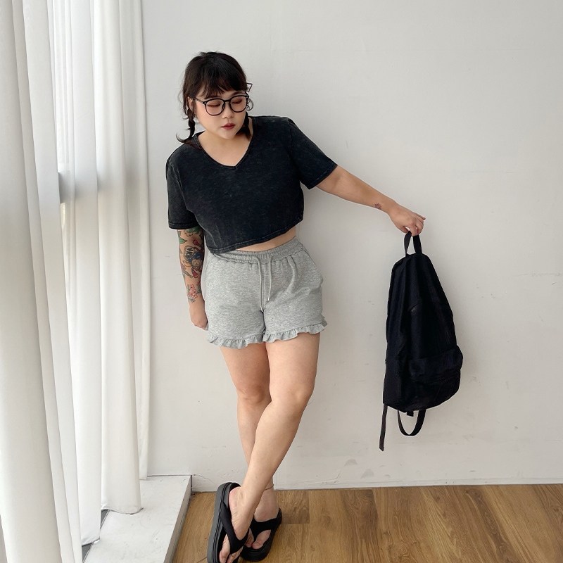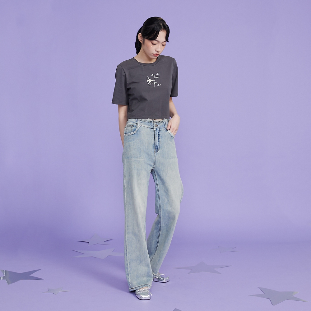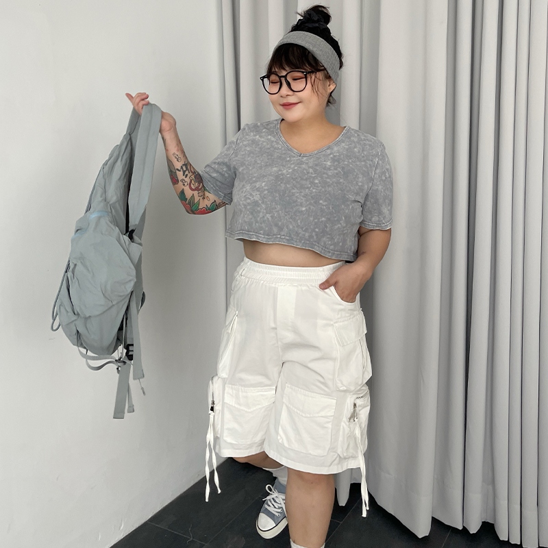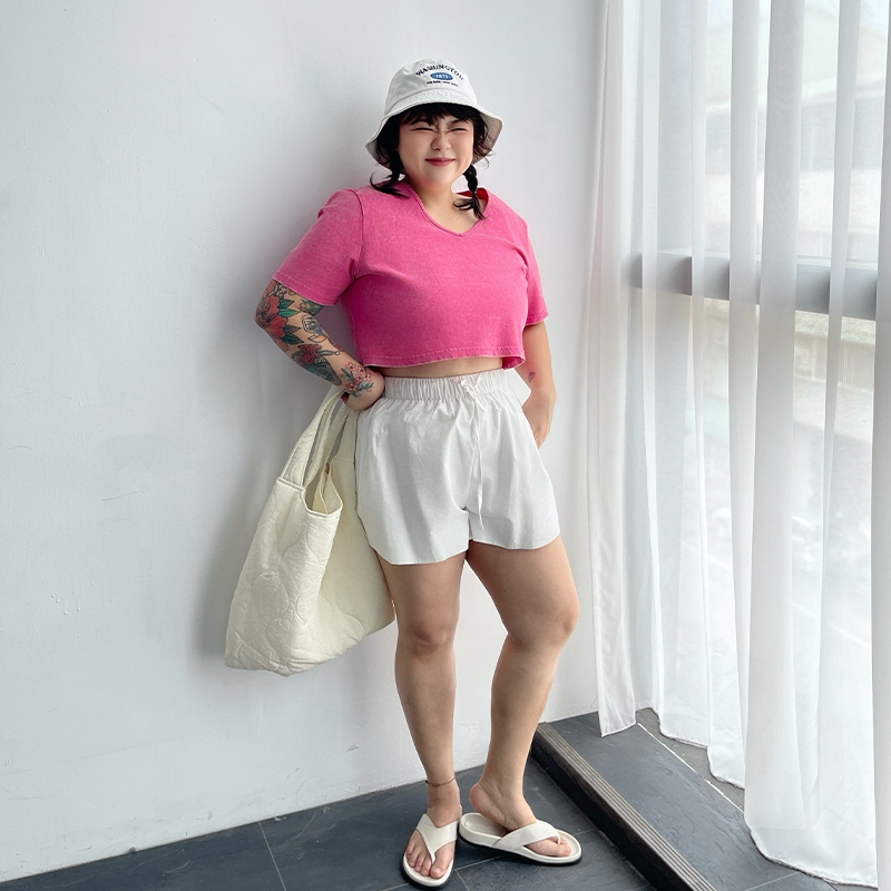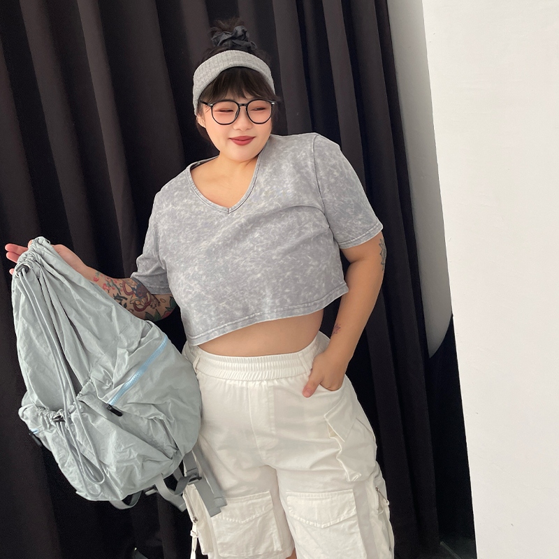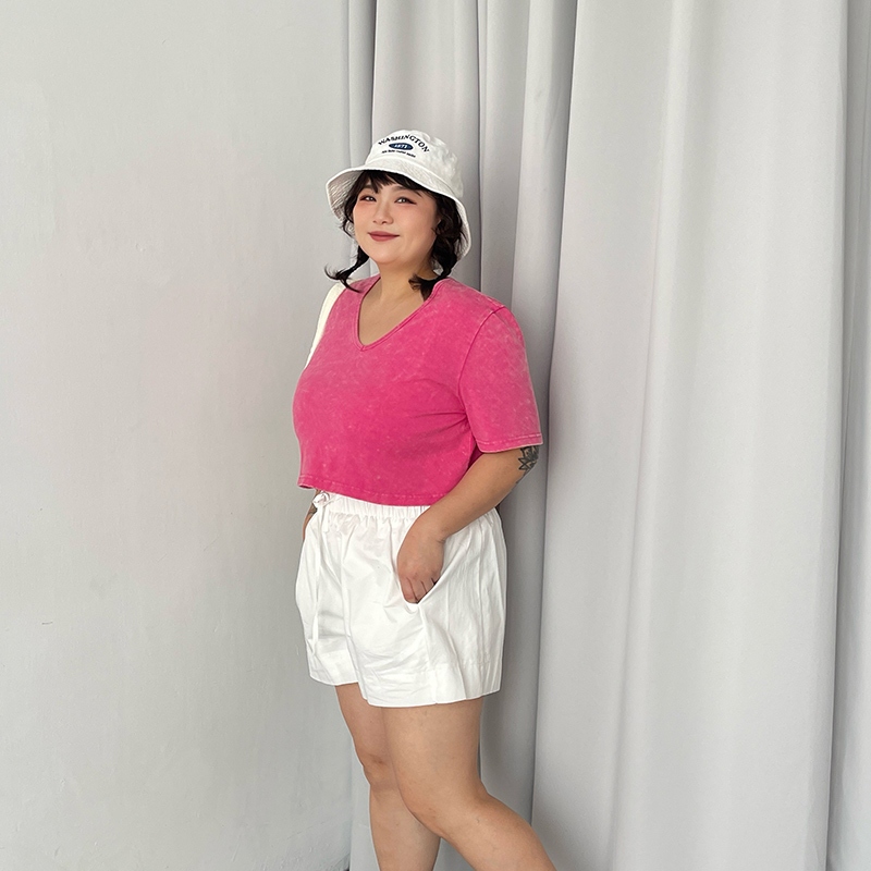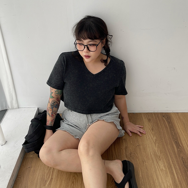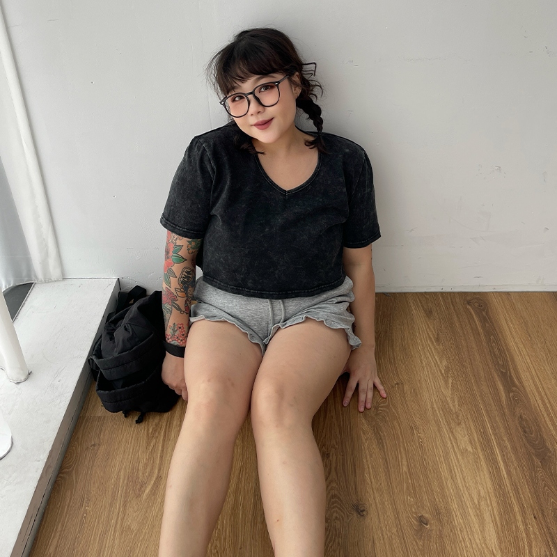LULUS/PLUS/中大尺碼/水洗做舊短版上衣3色【A01250378】250604灰|玫紅|黑T-shirtsLULUS