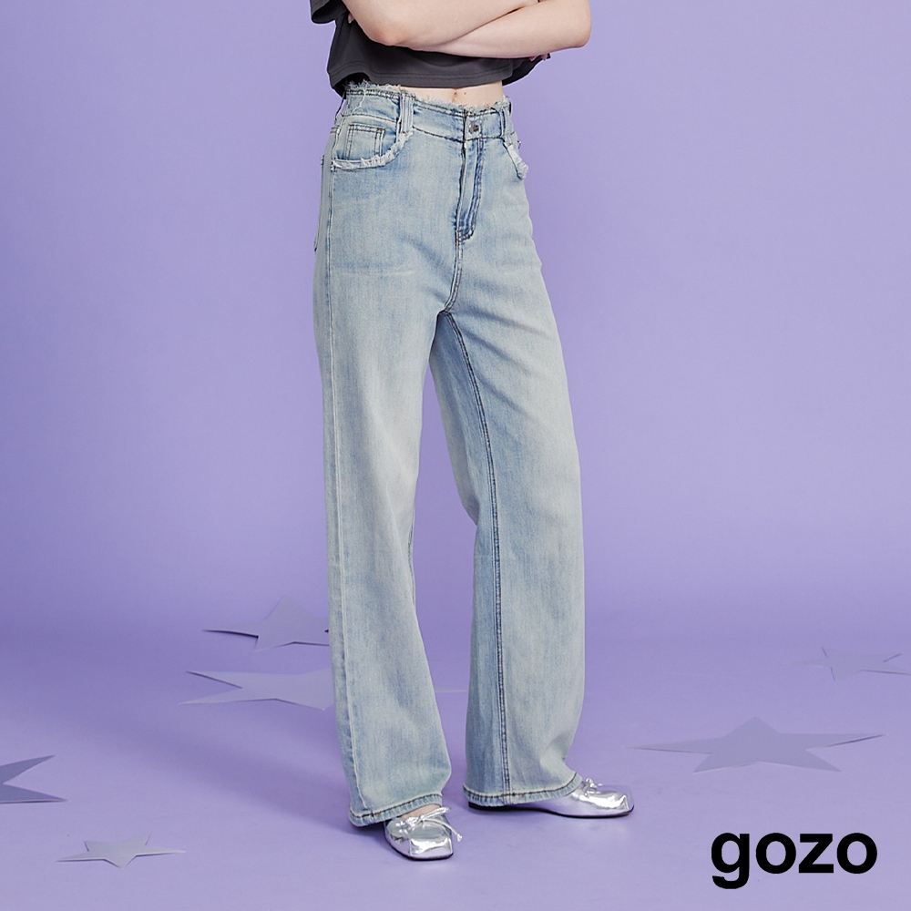 【gozo】好比例抽鬚牛仔直筒纖長寬褲(藍色_S/M/L) | 女裝 顯瘦 百搭 寬褲 牛仔寬褲 落地褲 牛仔褲 長褲藍色,S|藍色,M|藍色,Lgozo 品牌旗艦店