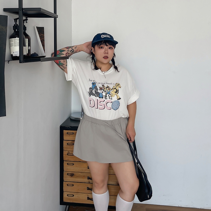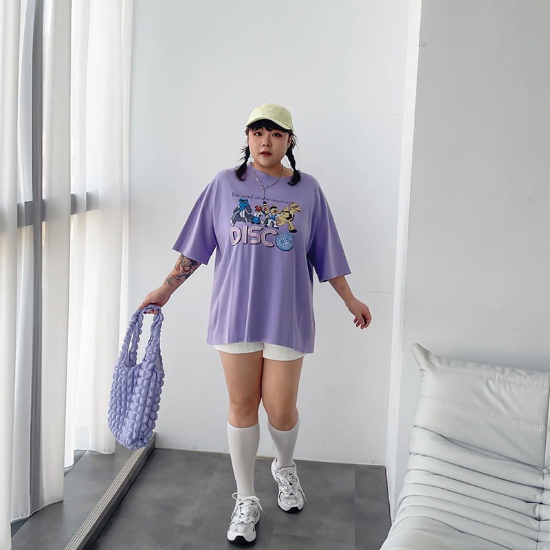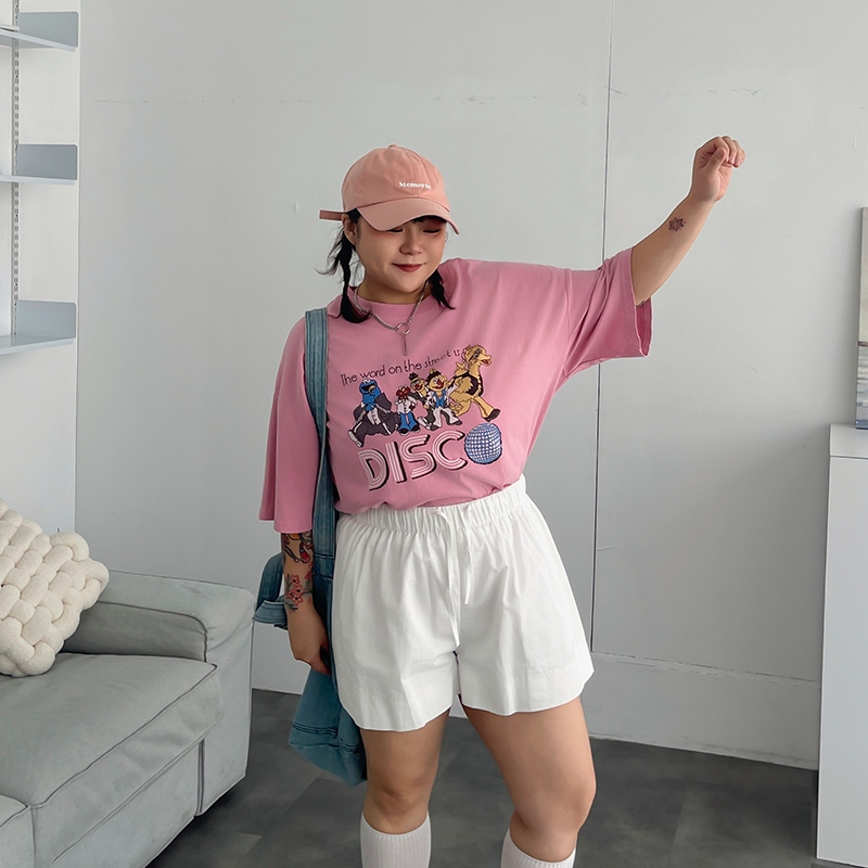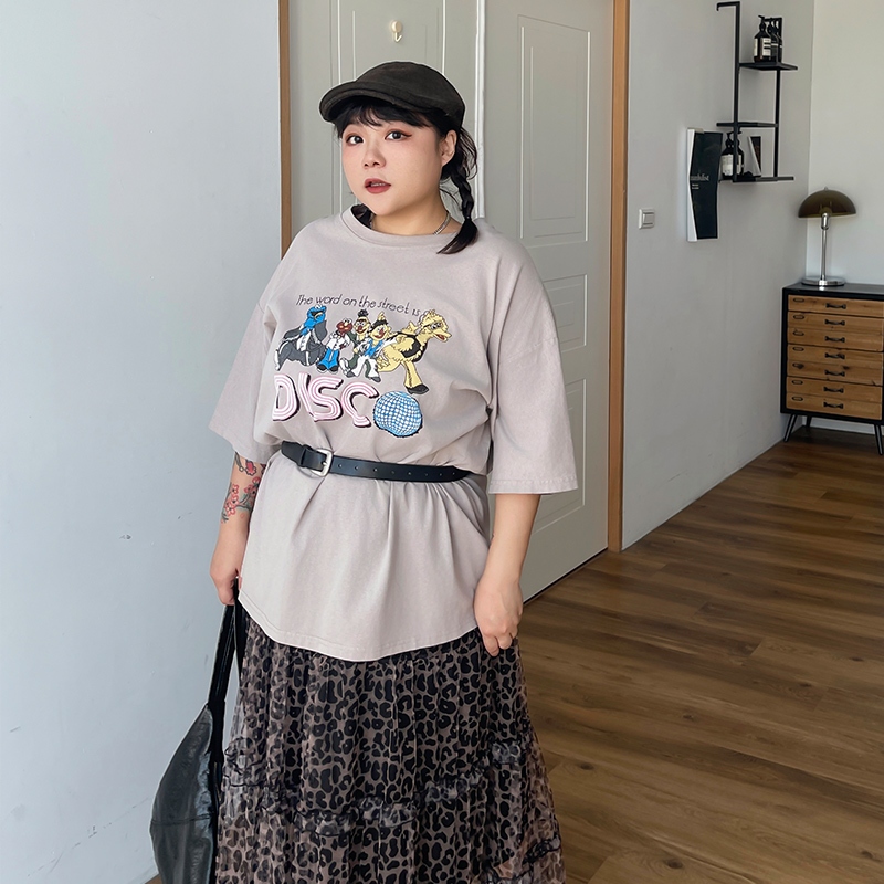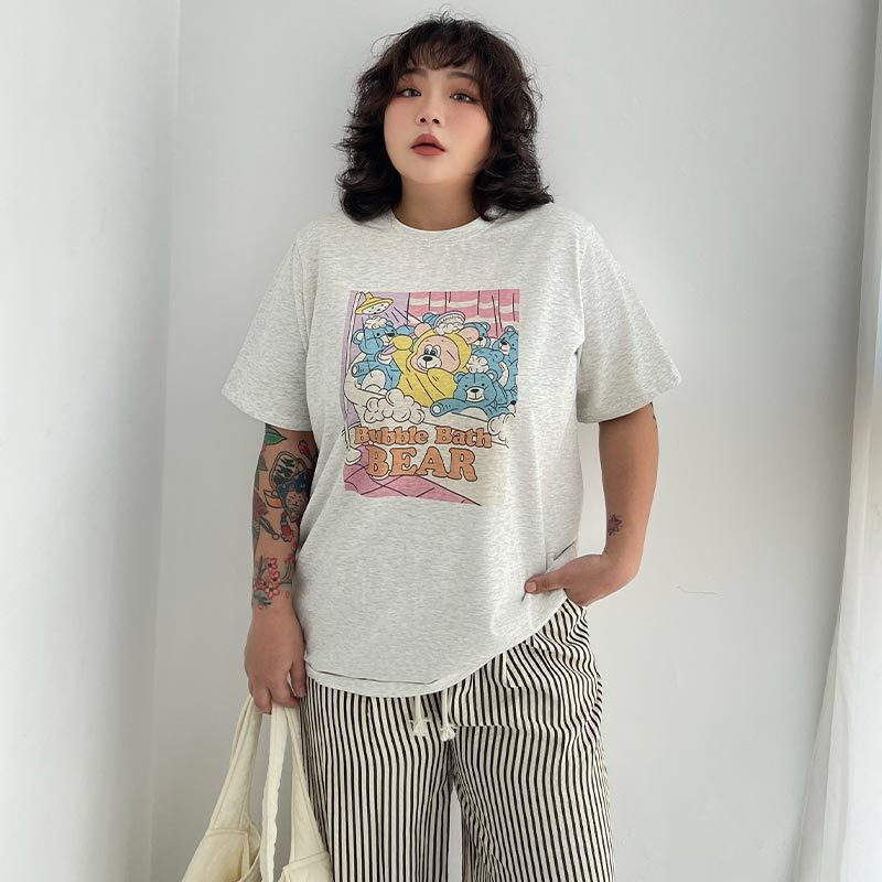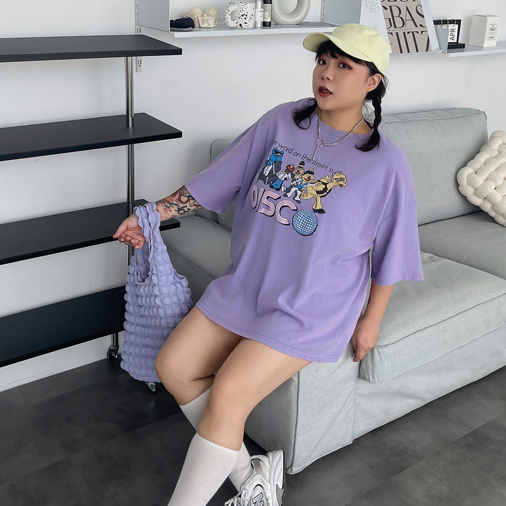 LULUS/PLUS/復古水洗開派對人物寬鬆T恤4色【A01250473】250625灰杏|粉|紫|白T-shirtsLULUS