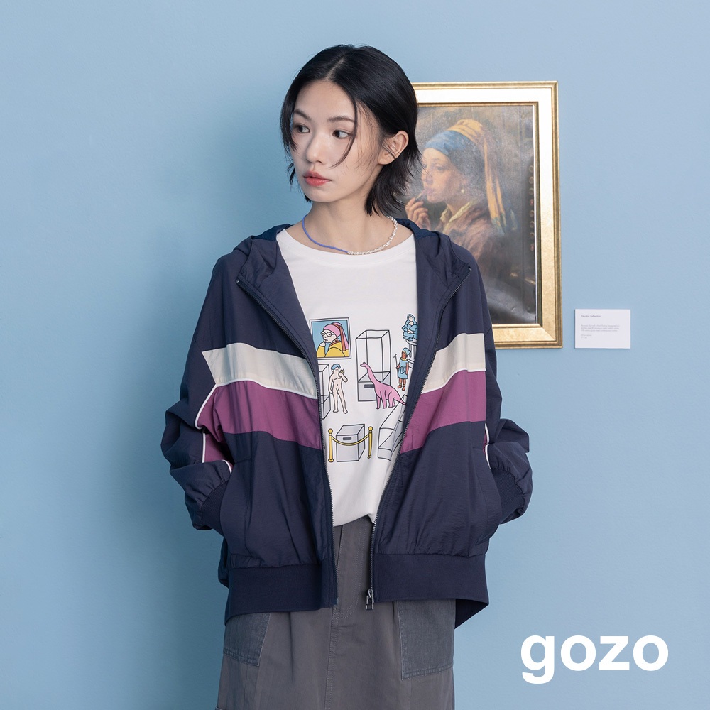 【gozo】經典配色運動連帽外套(深藍/米白_F) | 女裝 連帽 休閒深藍,F|米白,FOthersgozo 品牌旗艦店