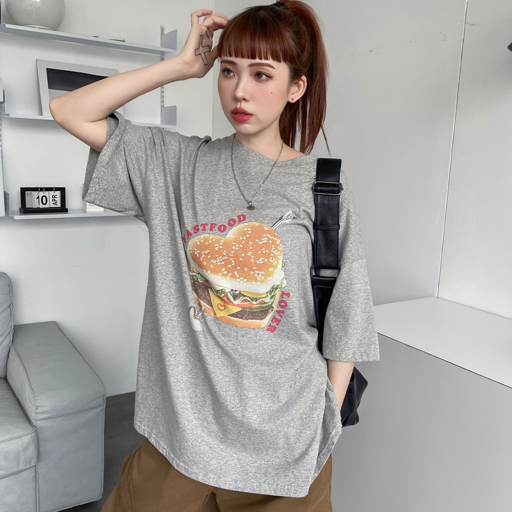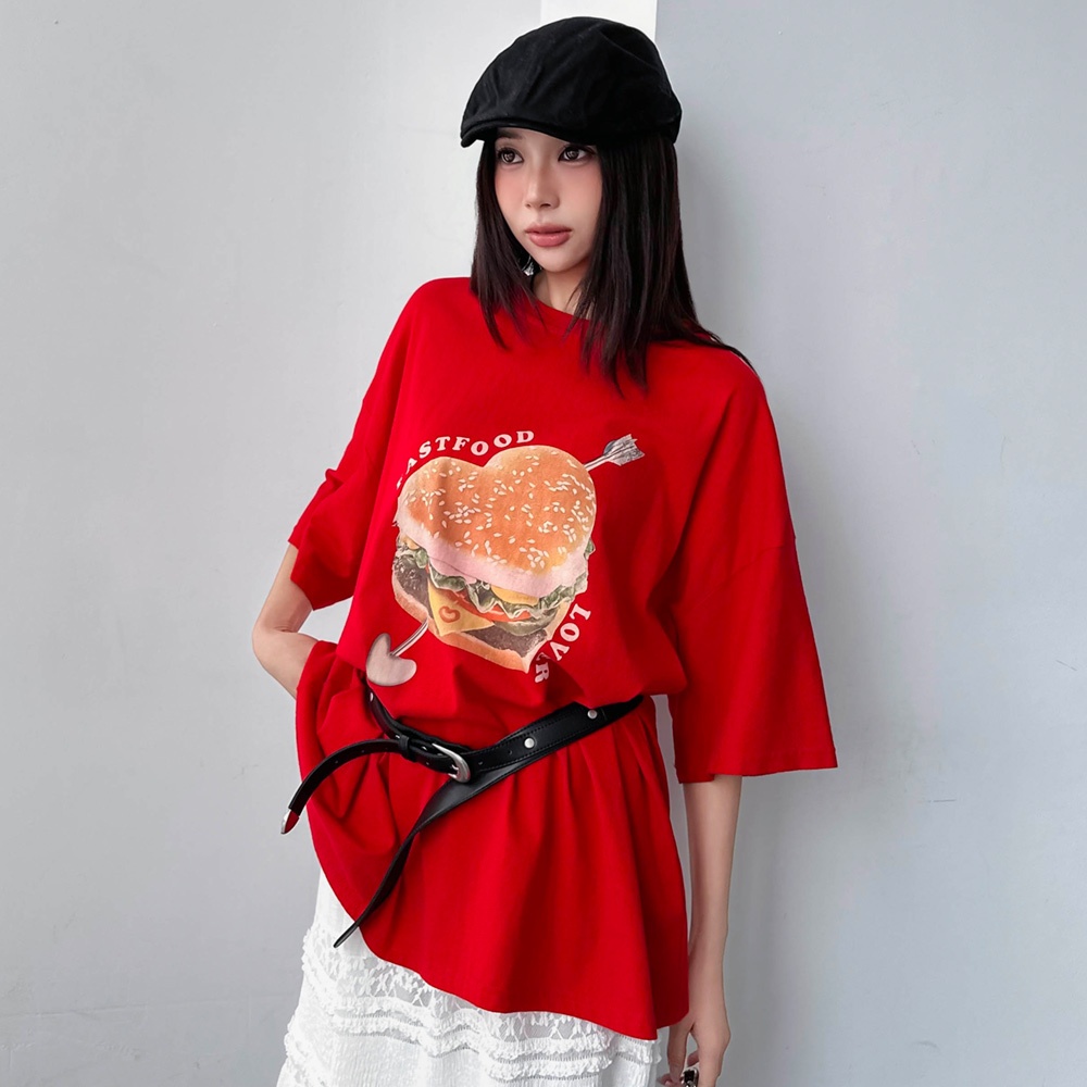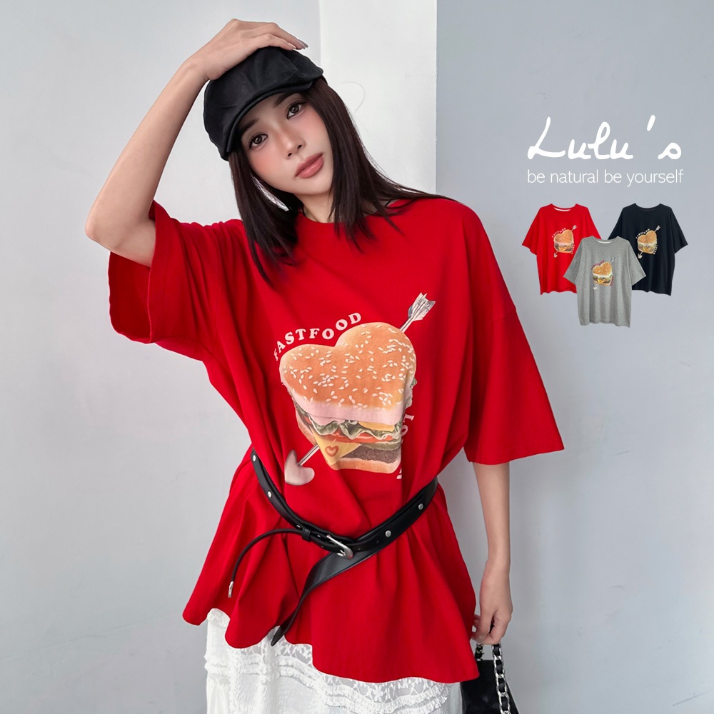 LULUS/現貨/早餐店愛心漢堡T恤3色【A01250428】250618花灰|紅|黑T-shirtsLULUS