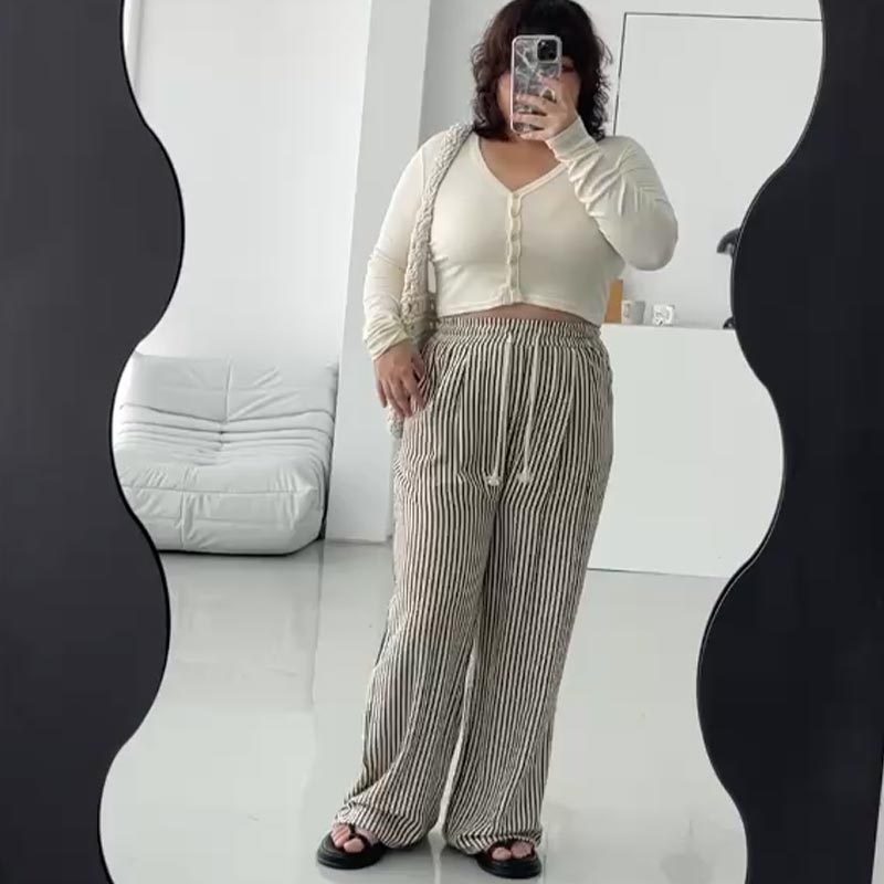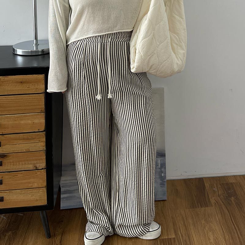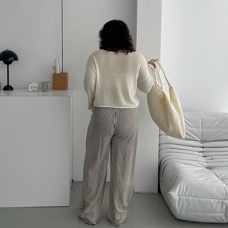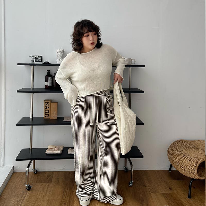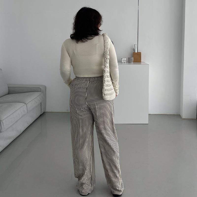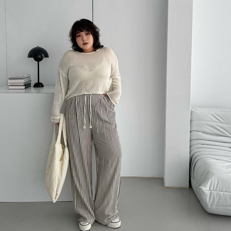 LULUS/PLUS/中大尺碼/鬆弛感直紋休閒長褲M-XL黑【A04240053】休閒褲/寬褲 240425黑M|黑XL|黑LPantsLULUS