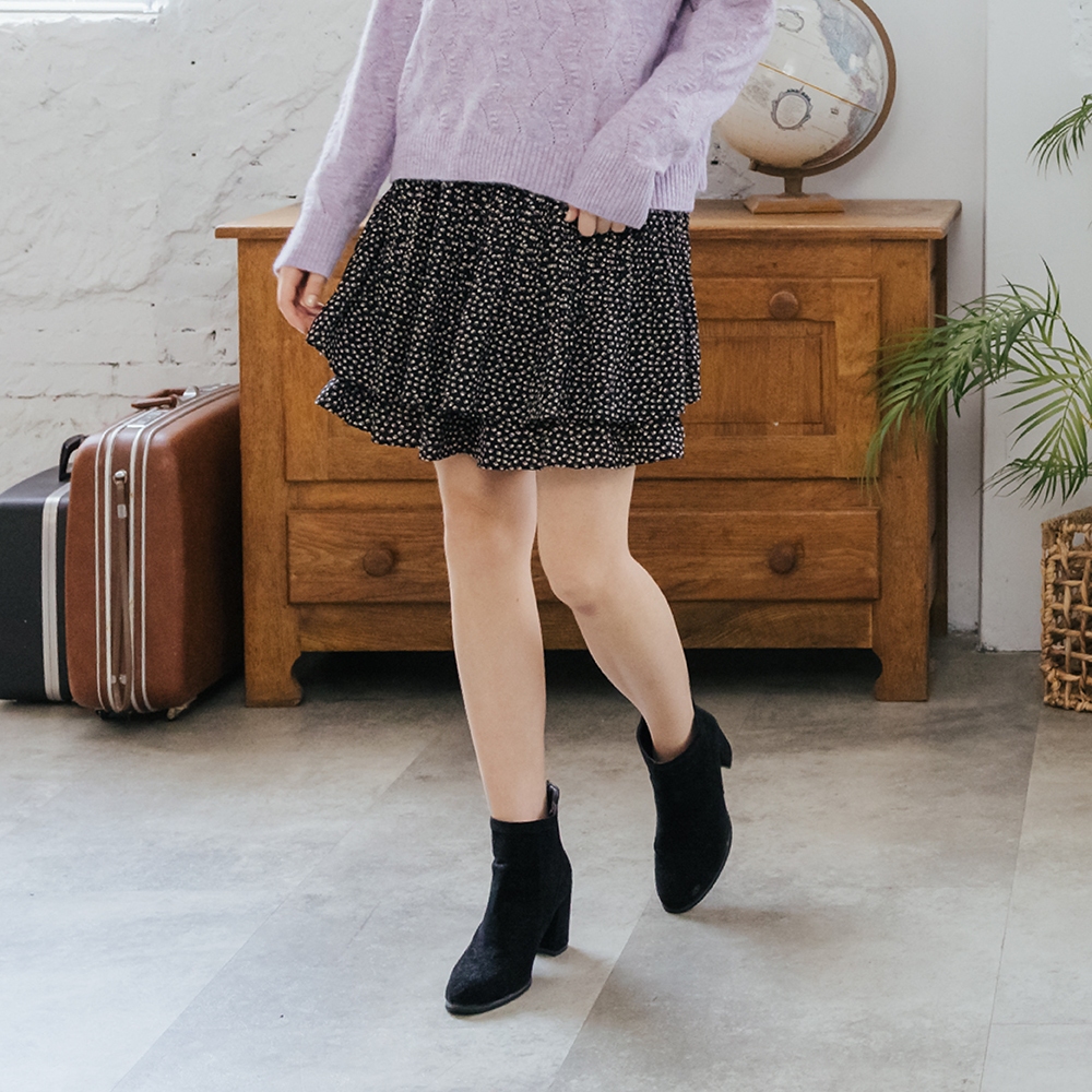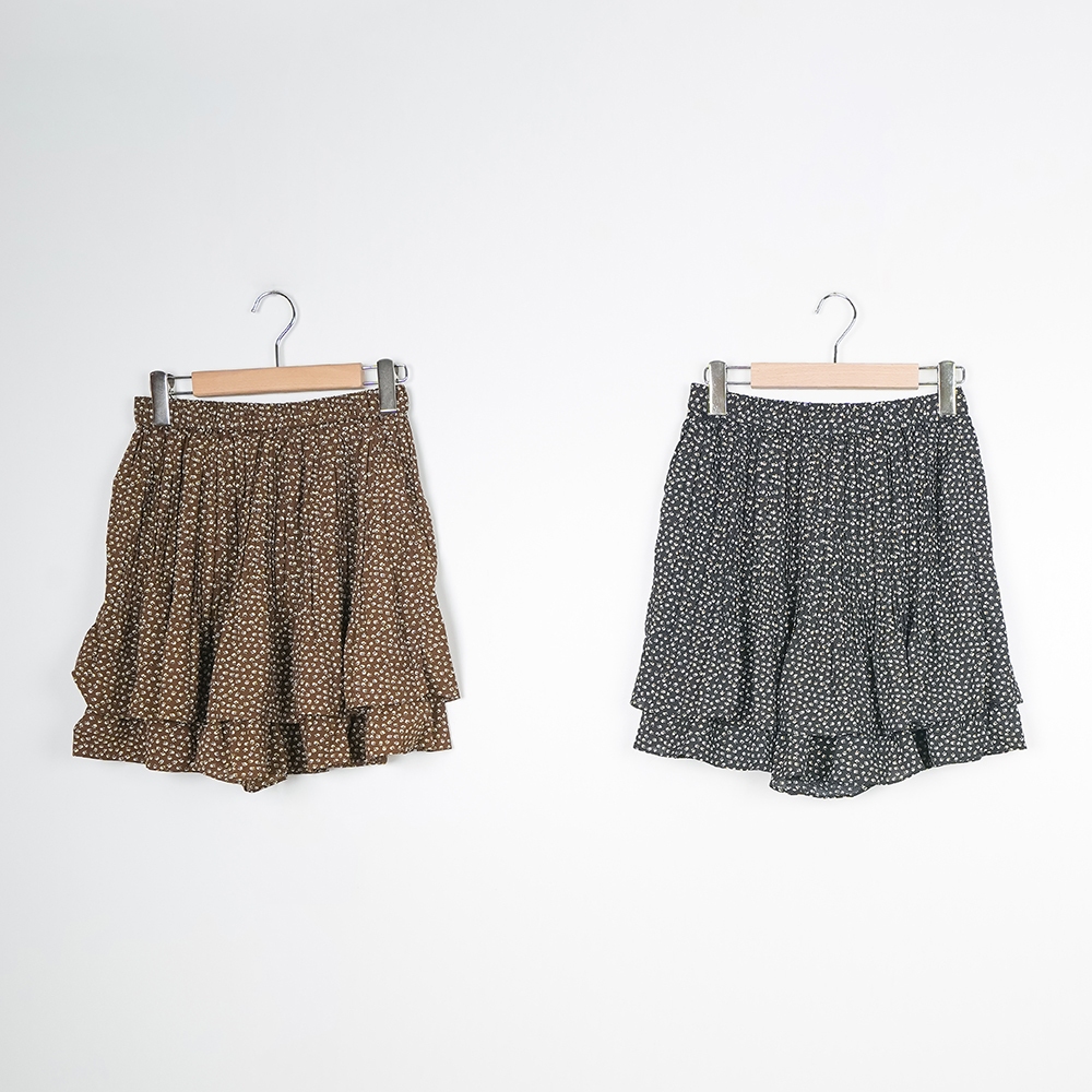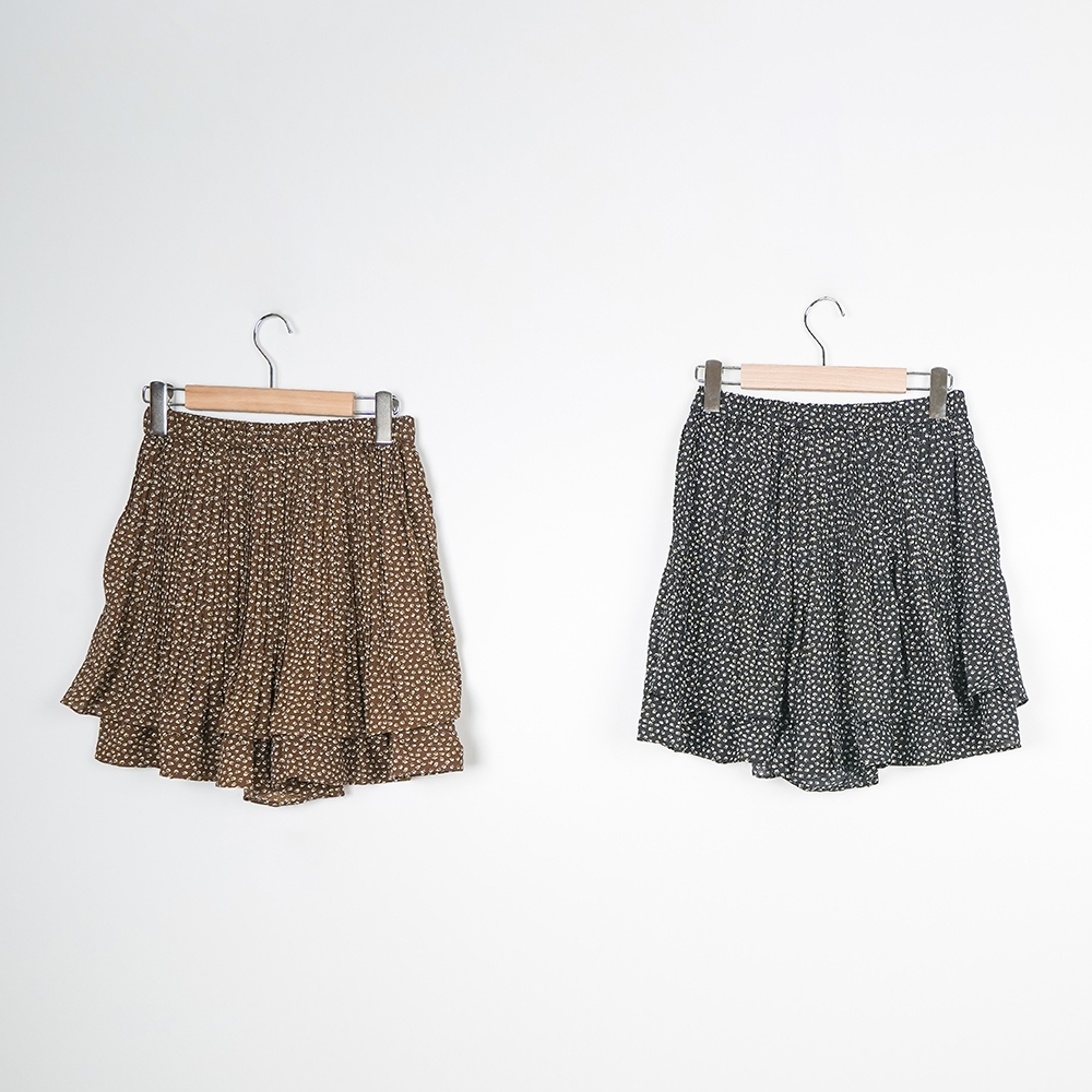 【CUMAR】小碎花印花壓褶短褲裙 黑 咖咖/L|黑/M|咖/M|黑/LSkortsINLook 流行女裝品牌旗艦店