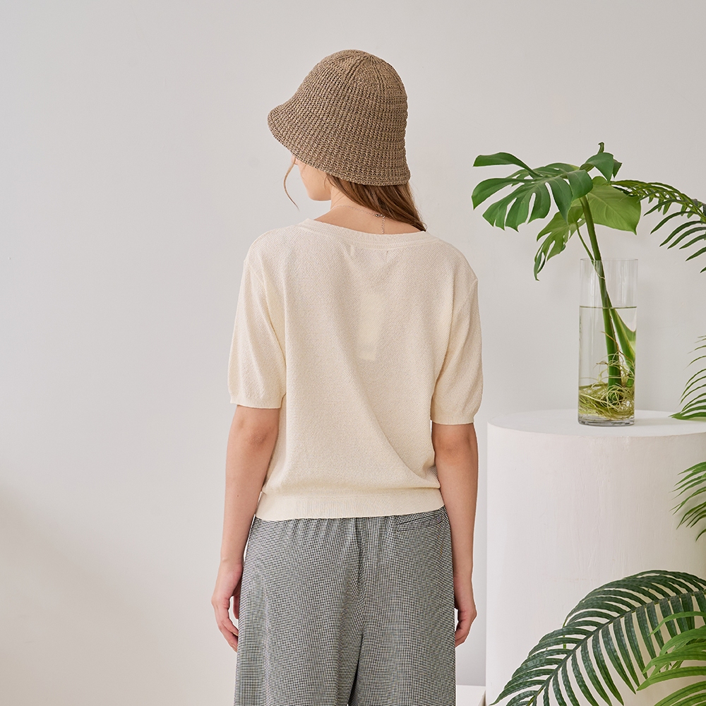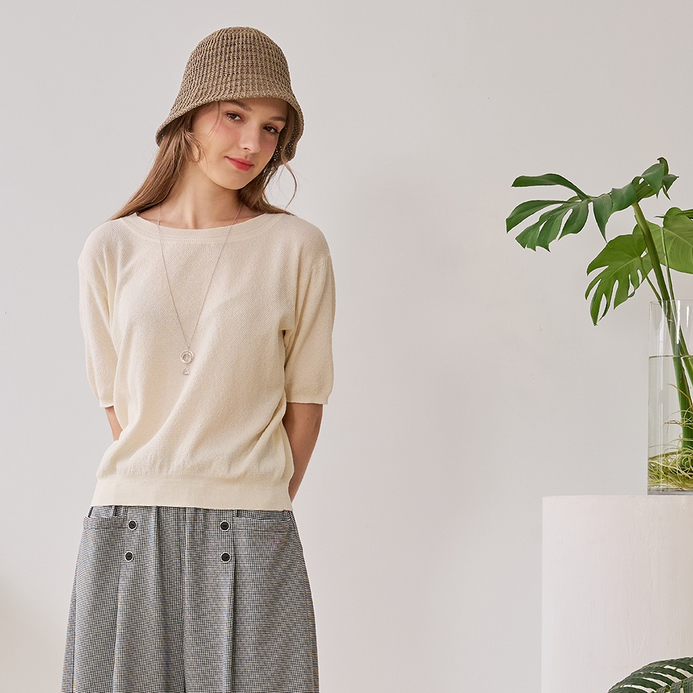 【CUMAR】涼感立體編織圓領針織短袖上衣 藍 粉 米(魅力商品)藍/F|粉/F|米/FINLook 流行女裝品牌旗艦店