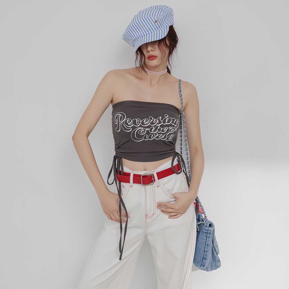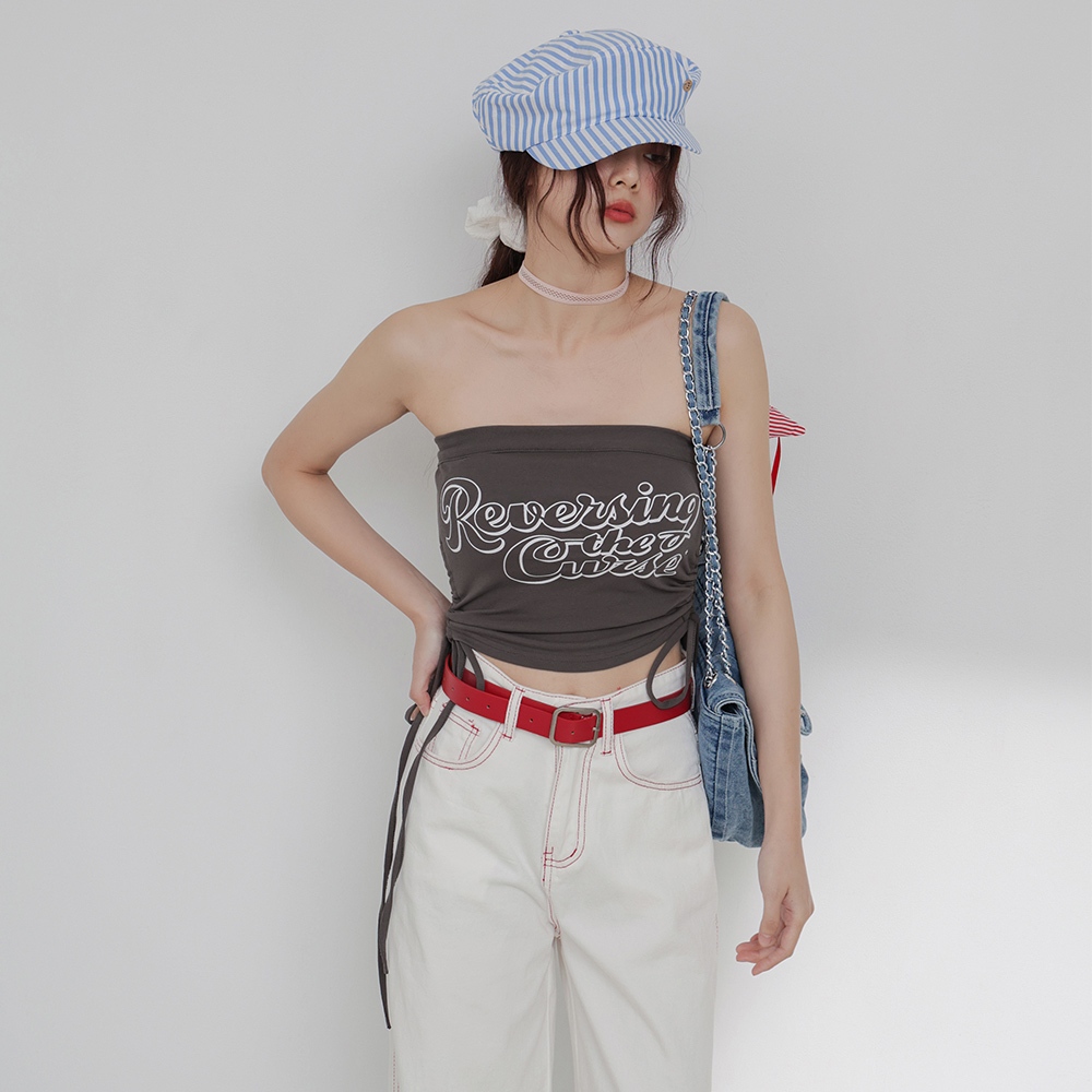 IN SHOP 英文平口抽繩Bra背心-共3色【KT224477】白|花灰|深灰Tube TopsIN’ SHOP 旗艦店