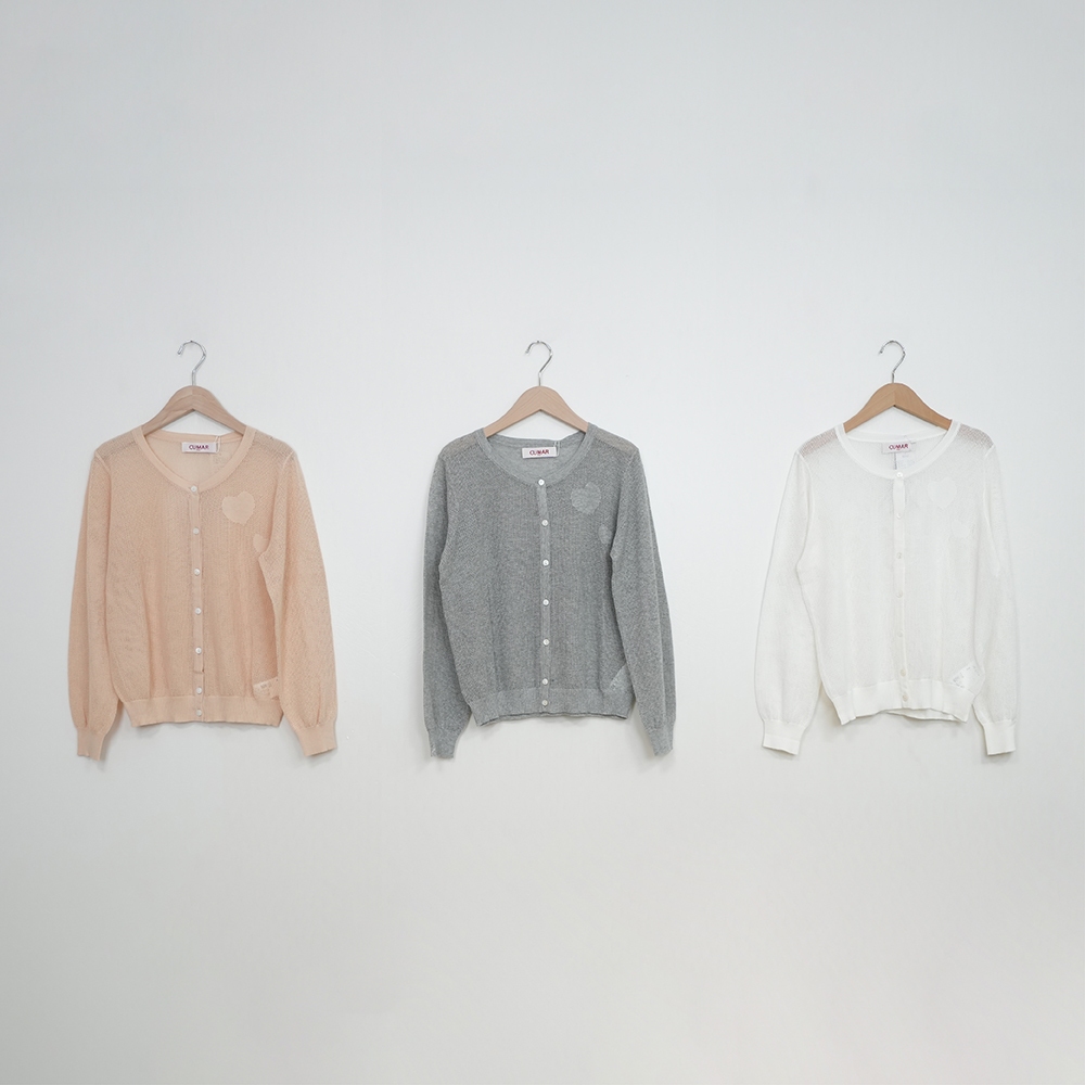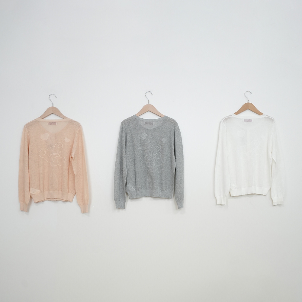 【CUMAR】鏤空愛心小熊圓領長袖針織外套 白 粉 灰 (魅力商品)白/F|粉/F|灰/FINLook 流行女裝品牌旗艦店