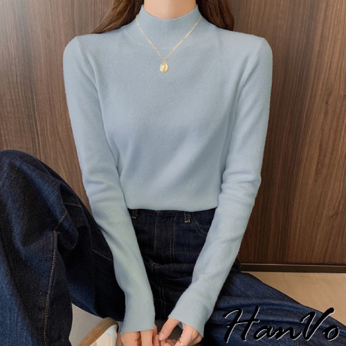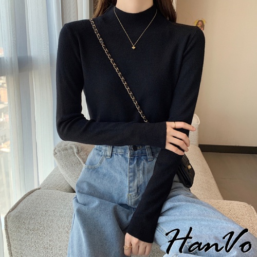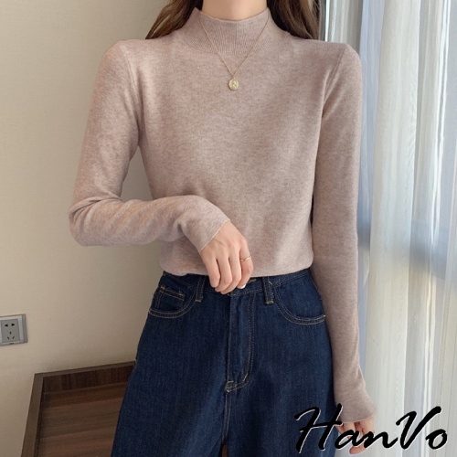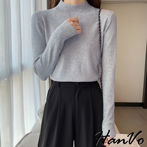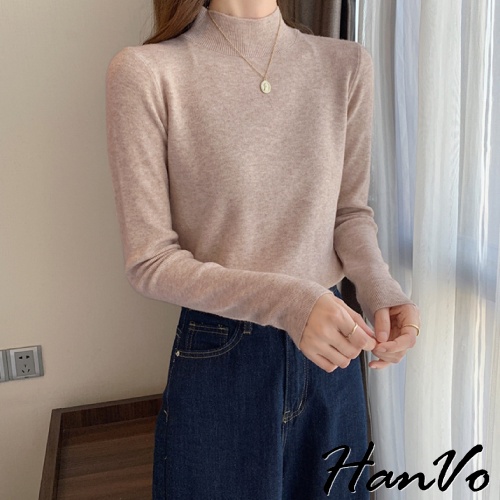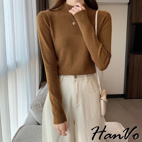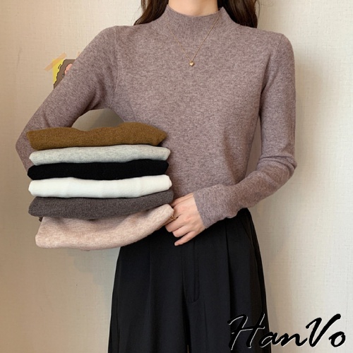 【HanVo】保暖系列 柔美的大地霧感色系半高領針織上衣 秋冬休閒百搭柔軟立領針織衫 女生衣著 A02-1634黑色|白色|燕麥|珊瑚淺灰|泰奶棕|炭焙摩卡|淡雲藍|藕芋灰HanVo Wear Collection