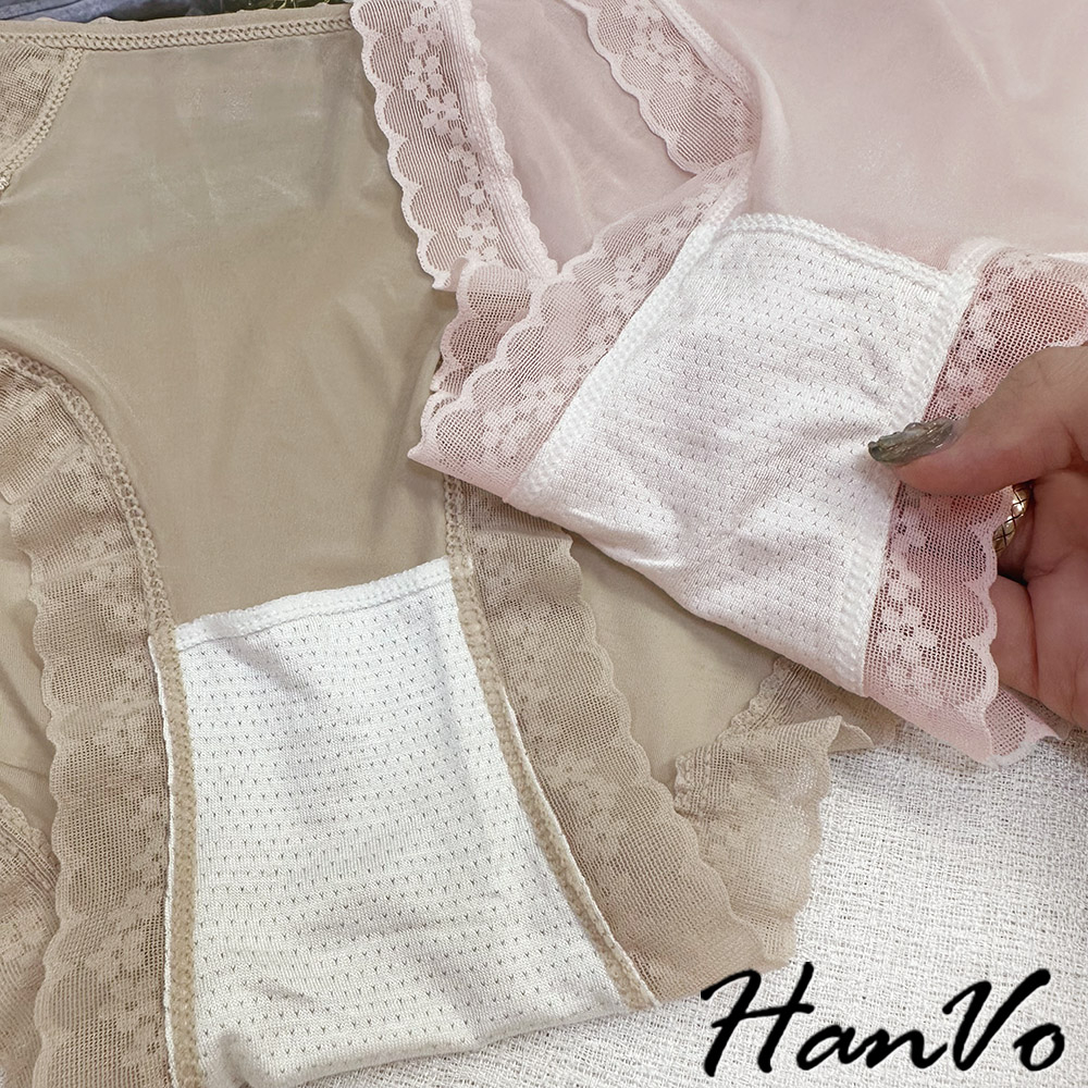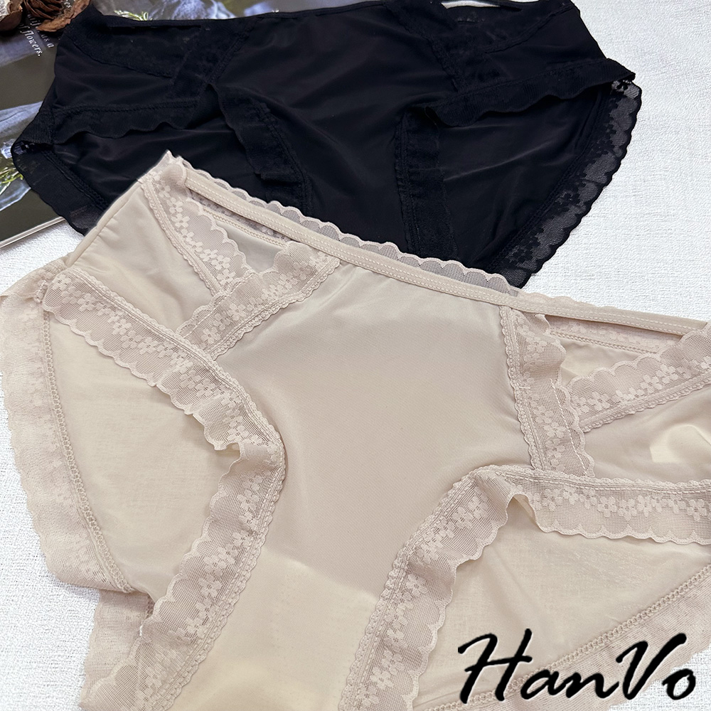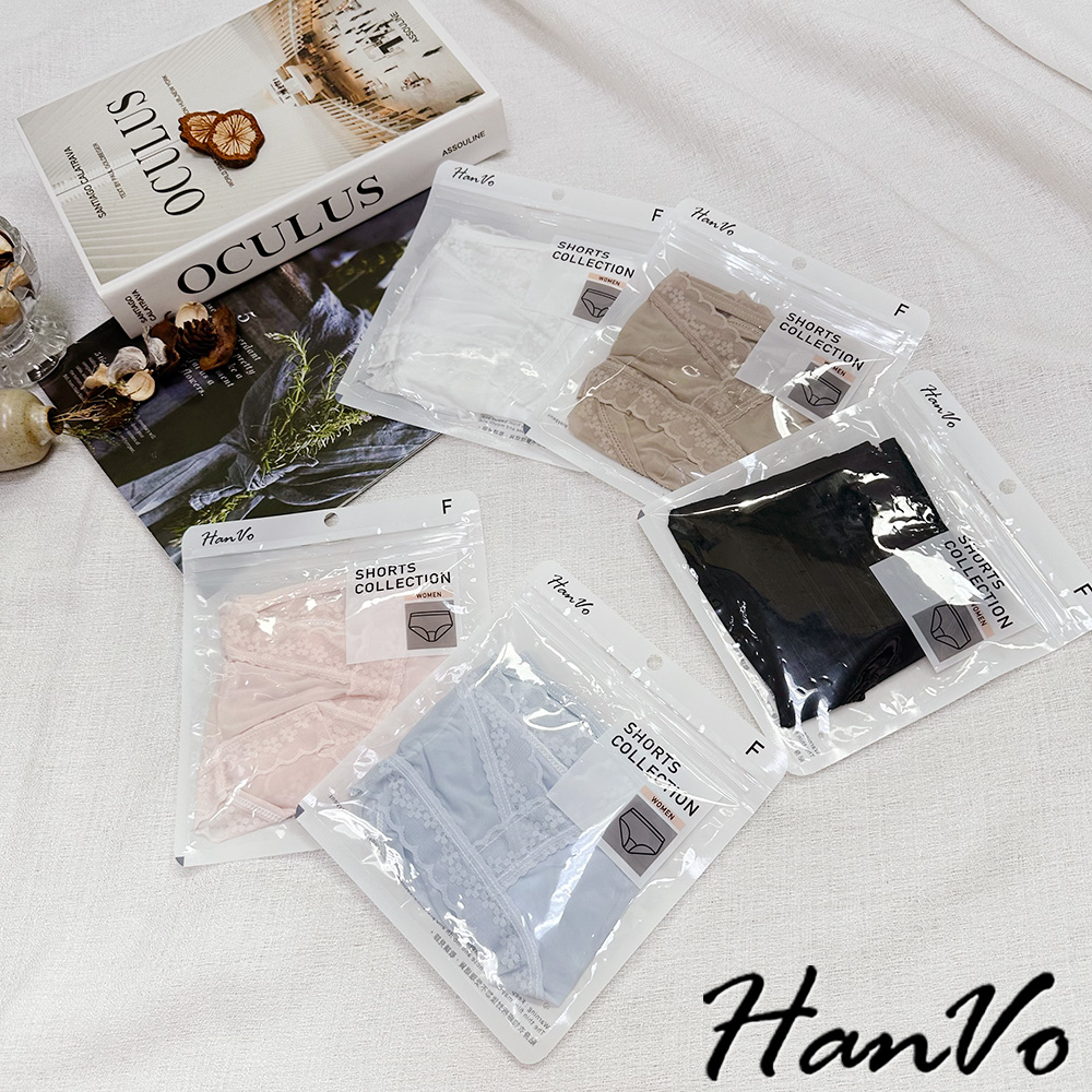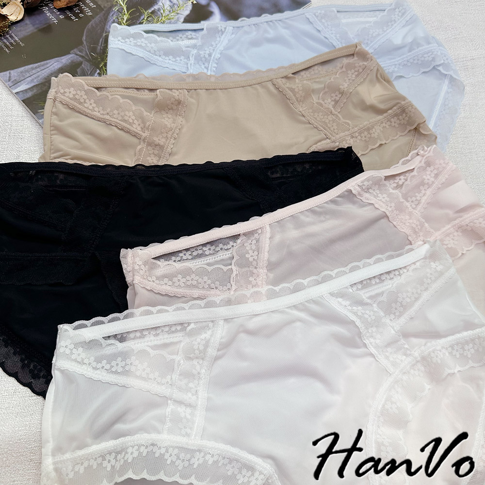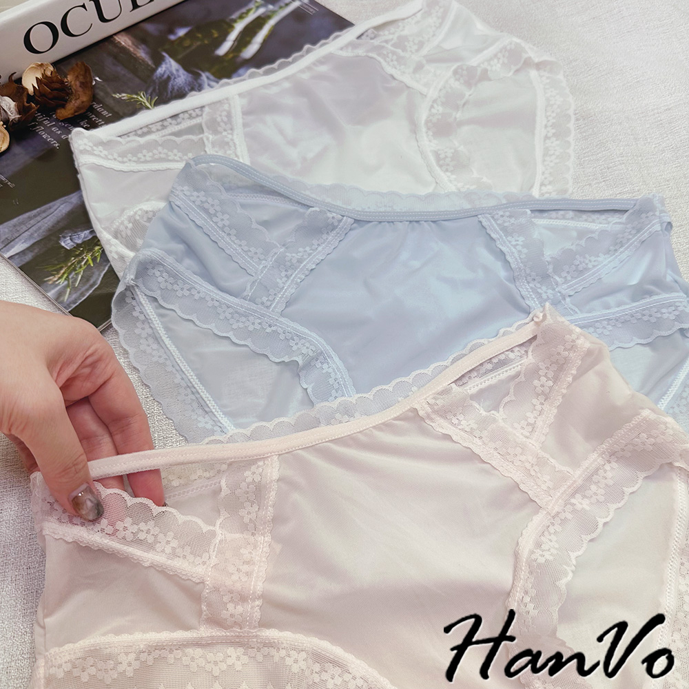 【HanVo】典雅小花蕾絲鏤空冰絲內褲 獨立包裝 透氣輕薄涼感中腰三角褲 女生內褲 女內褲 內褲 A11-5758月夜黑|蜜茶咖|仙女白|天空藍|花瓣粉PantiesHanVo Wear Collection