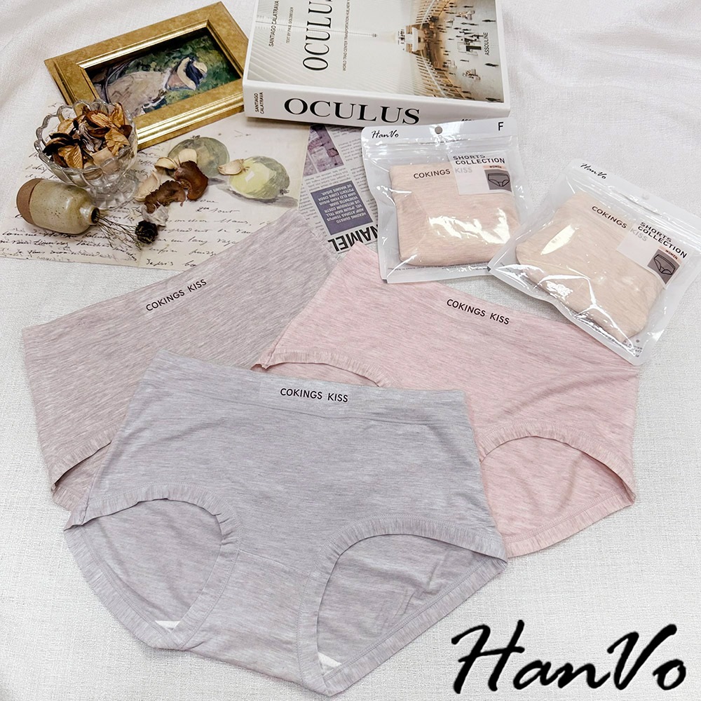【HanVo】COKINGS KISS舒適柔軟內褲 中腰 莫代爾絲滑涼感觸感佳 女生內褲 女內褲 內褲 A11-5238公主粉|霧灰紫|靜謐藍|粉嫩膚|亮光橘PantiesHanVo Wear Collection
