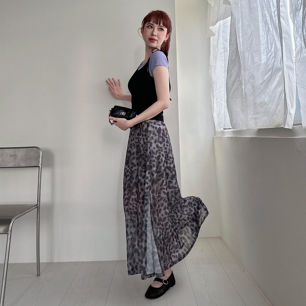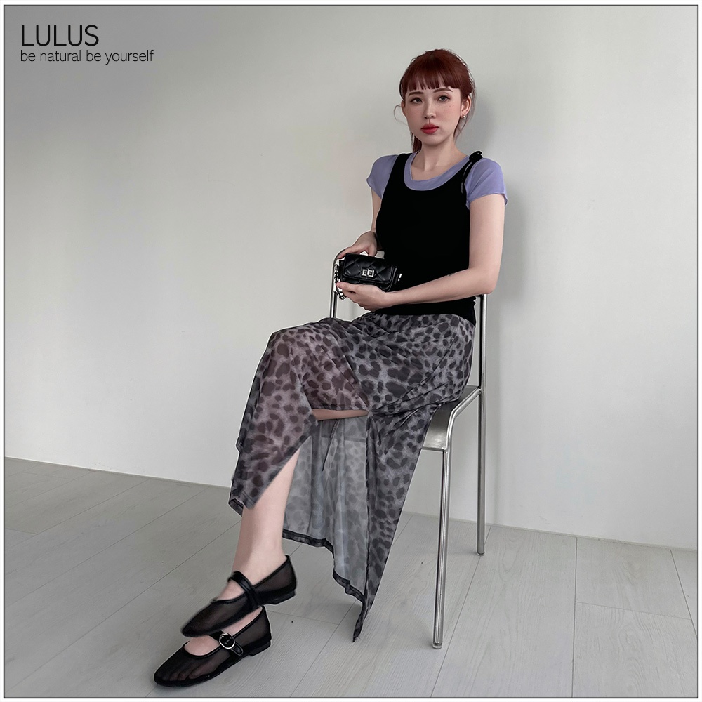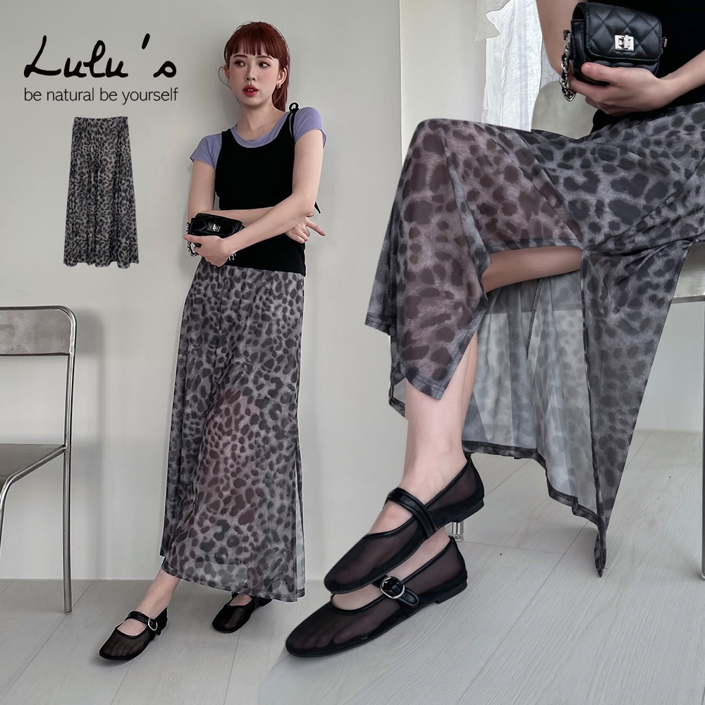 LULUS/豹紋網紗側開岔長裙灰【A05250059】250702灰LULUS