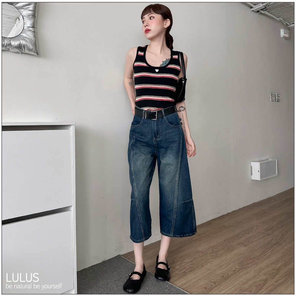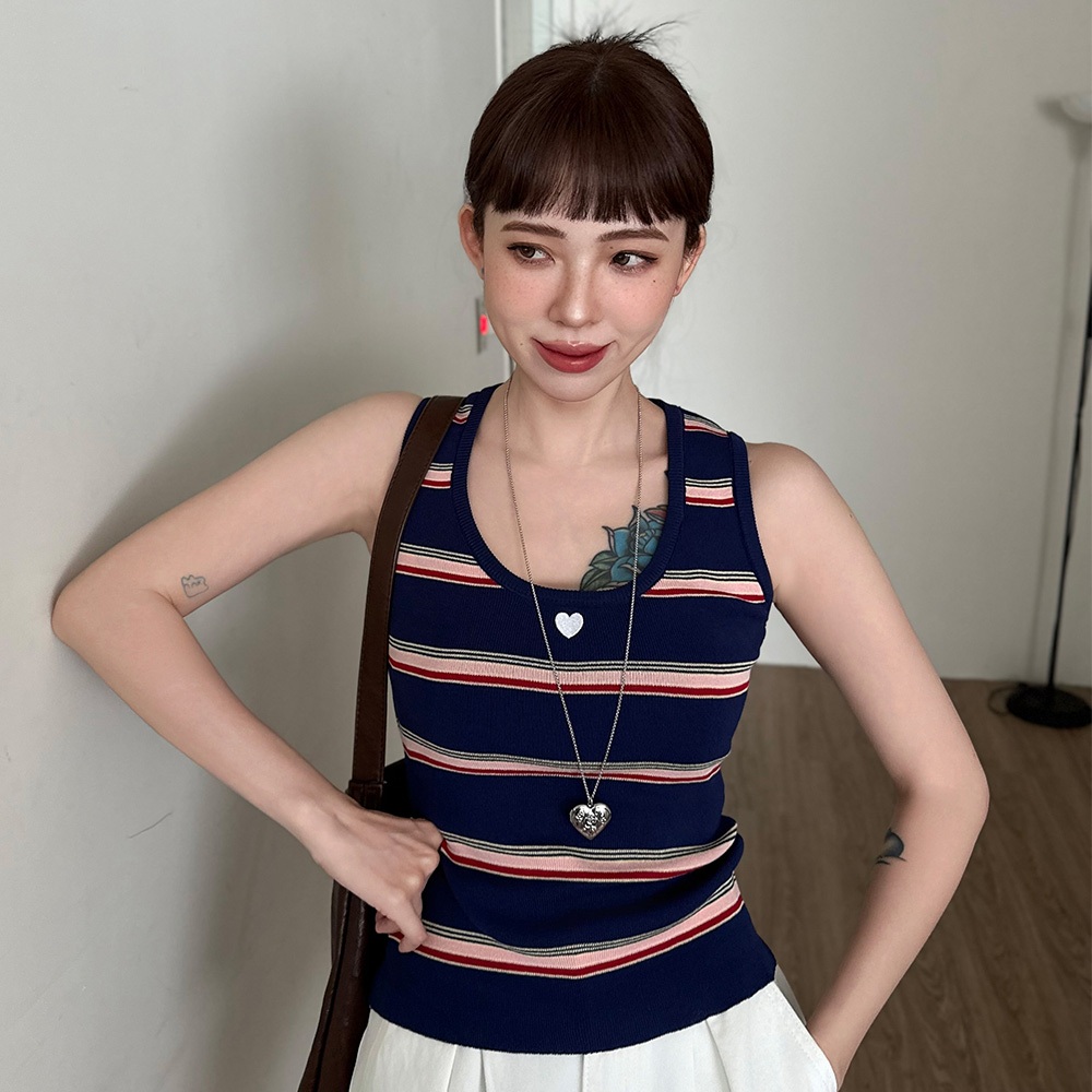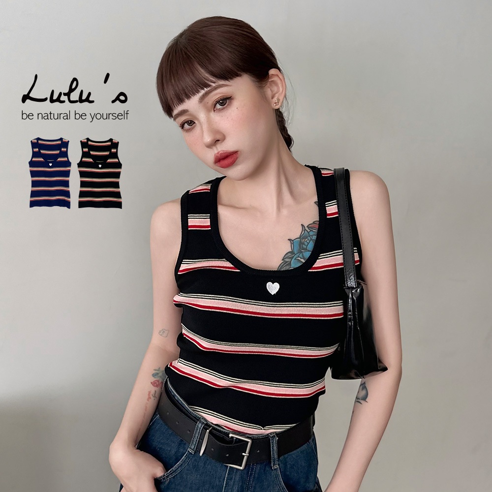LULUS/愛心刺繡撞色橫紋針織背心2色【A01250634】無袖 250820丈青|黑T-shirtsLULUS