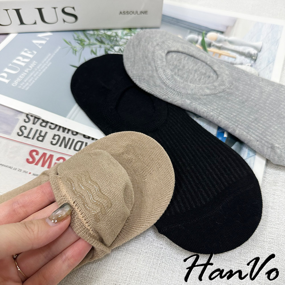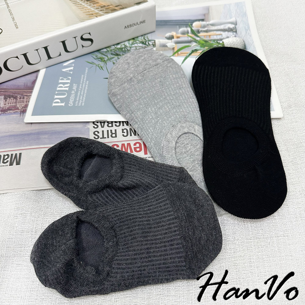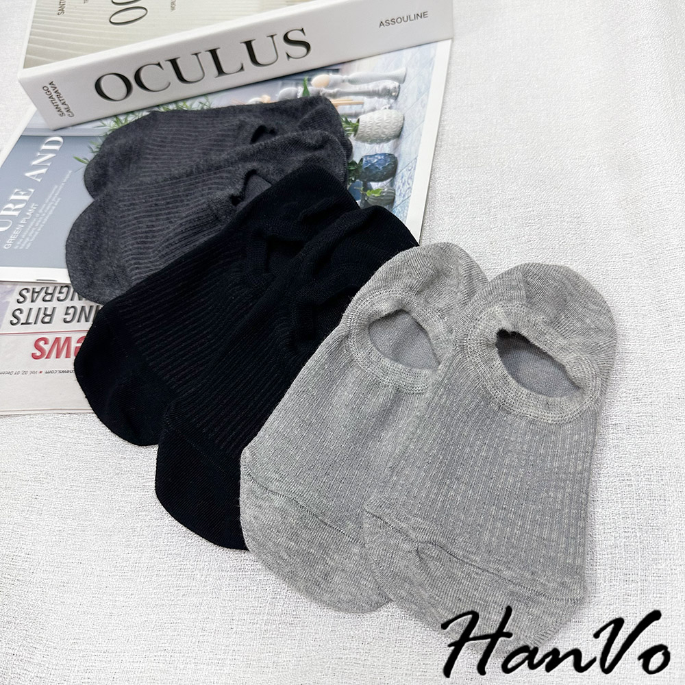 【HanVo】基本色直壓紋隱形襪 韓系透氣吸濕排汗棉質襪 流行百搭休閒襪 襪子 白襪 女生配件 A12-6256深灰色|黑色|白色|灰色|卡色SocksHanVo Wear Collection