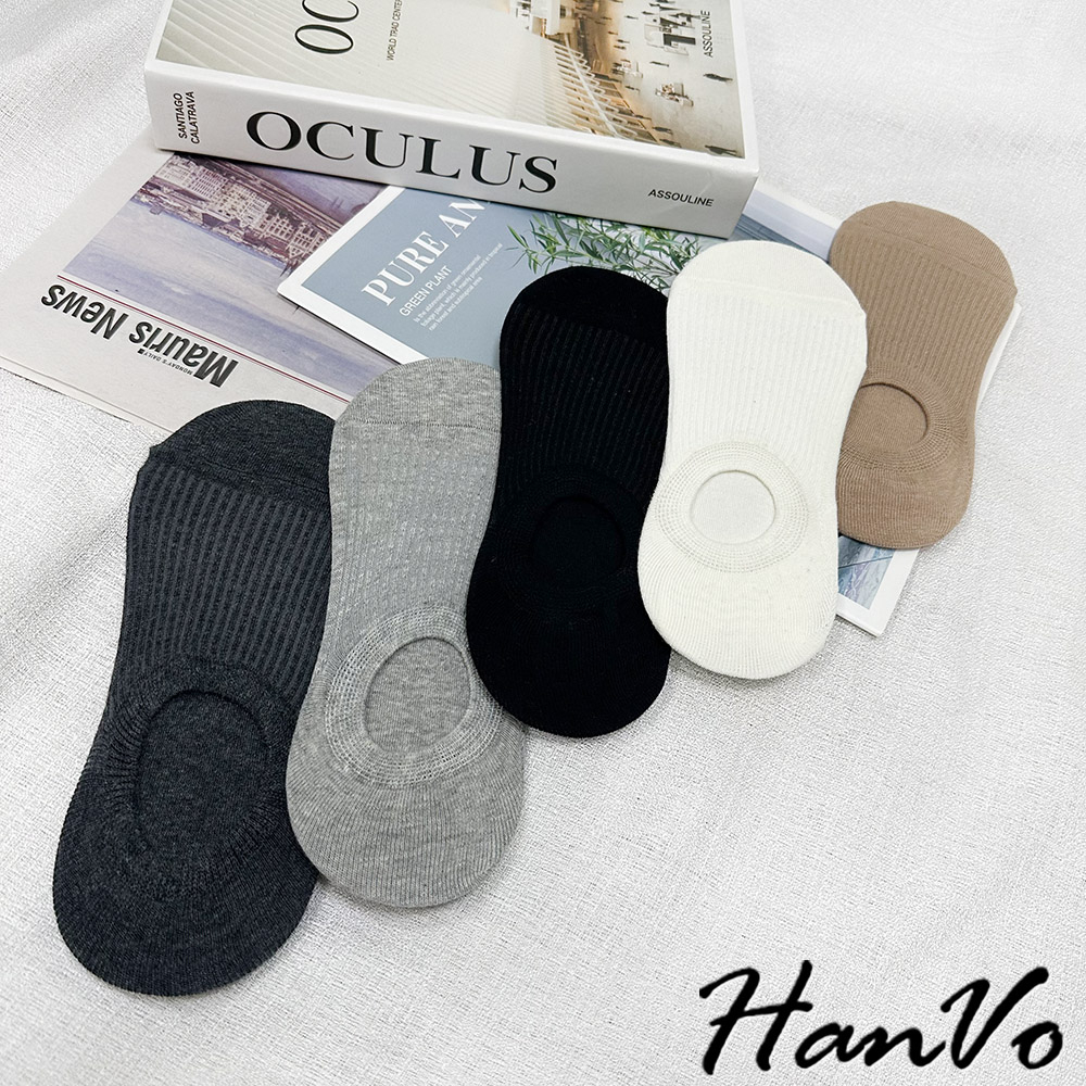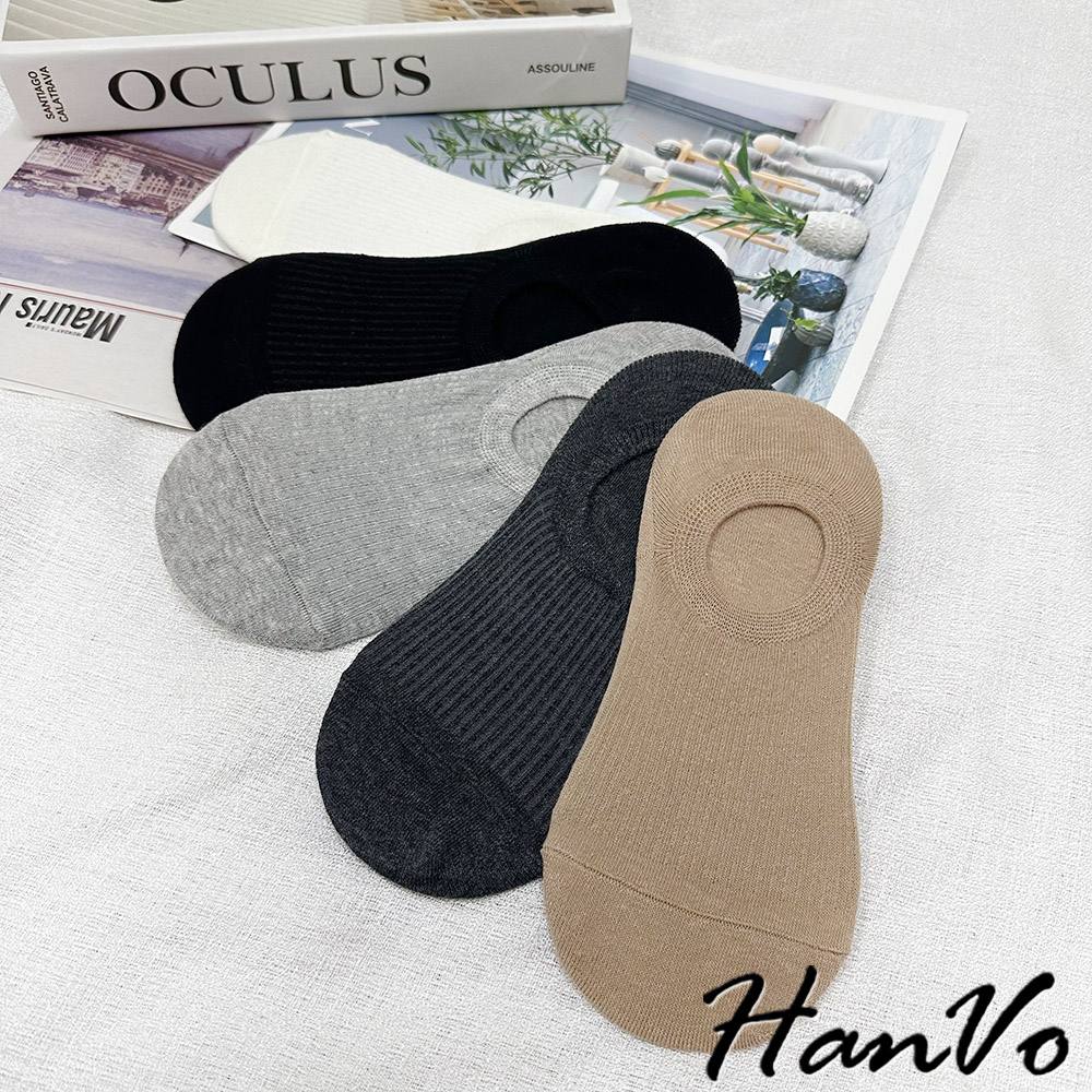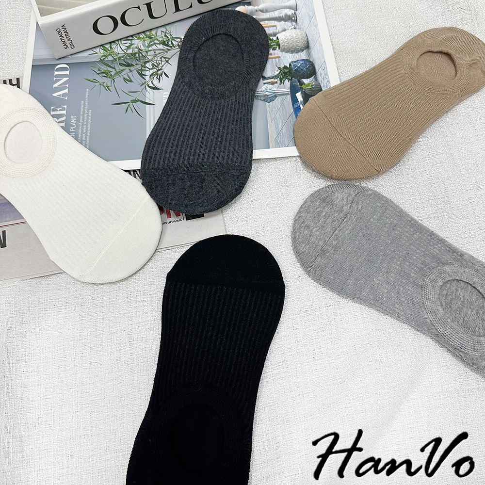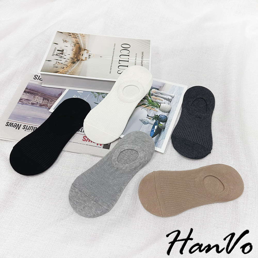 【HanVo】基本色直壓紋隱形襪 韓系透氣吸濕排汗棉質襪 流行百搭休閒襪 襪子 白襪 女生配件 A12-6256深灰色|黑色|白色|灰色|卡色SocksHanVo Wear Collection