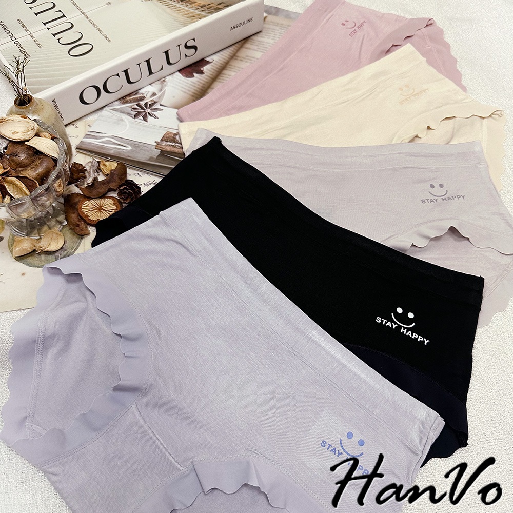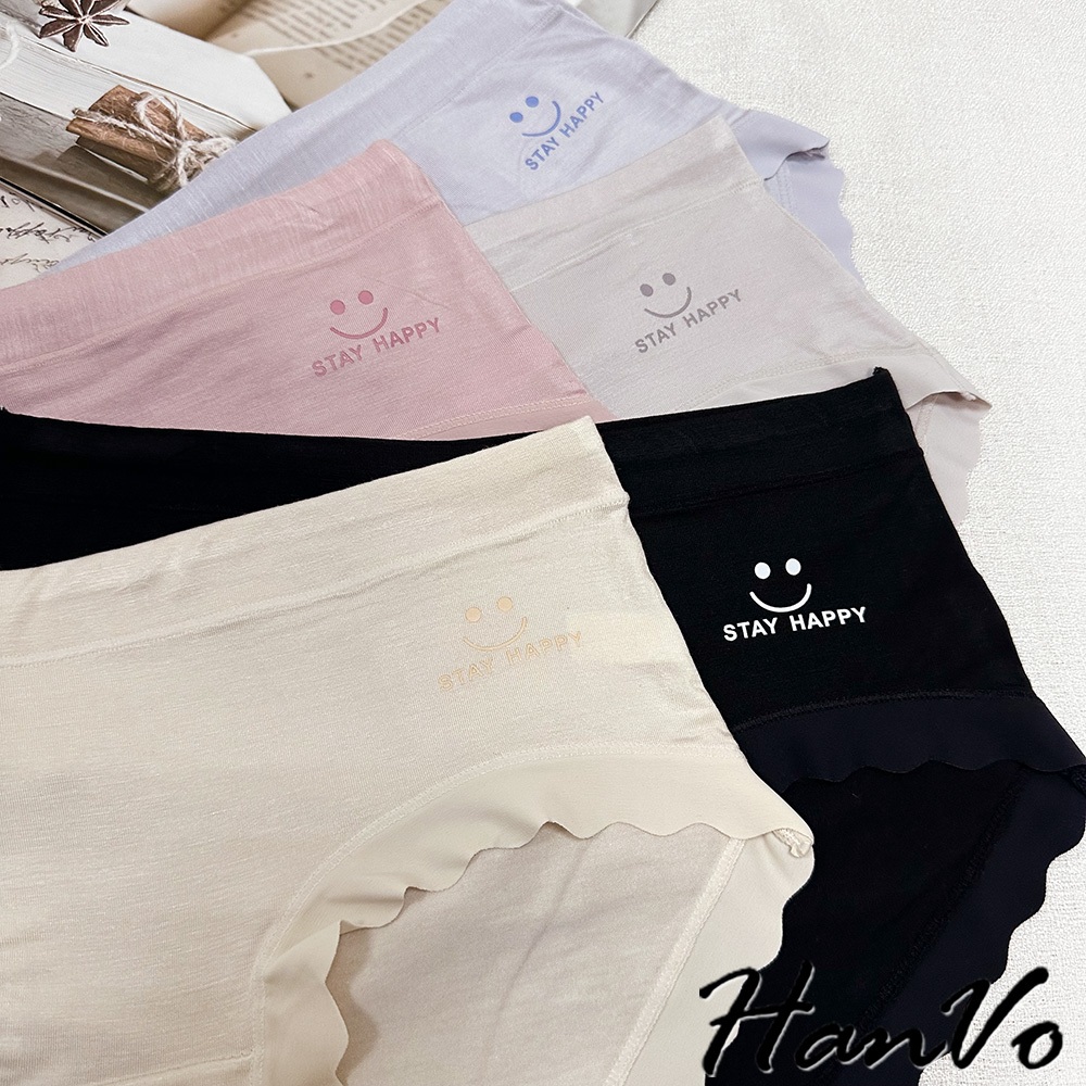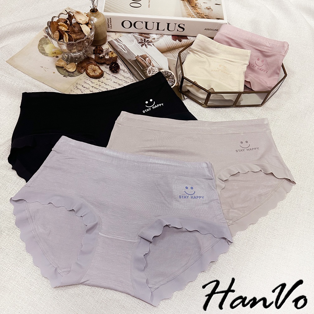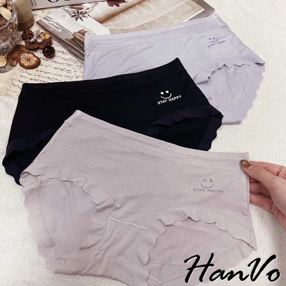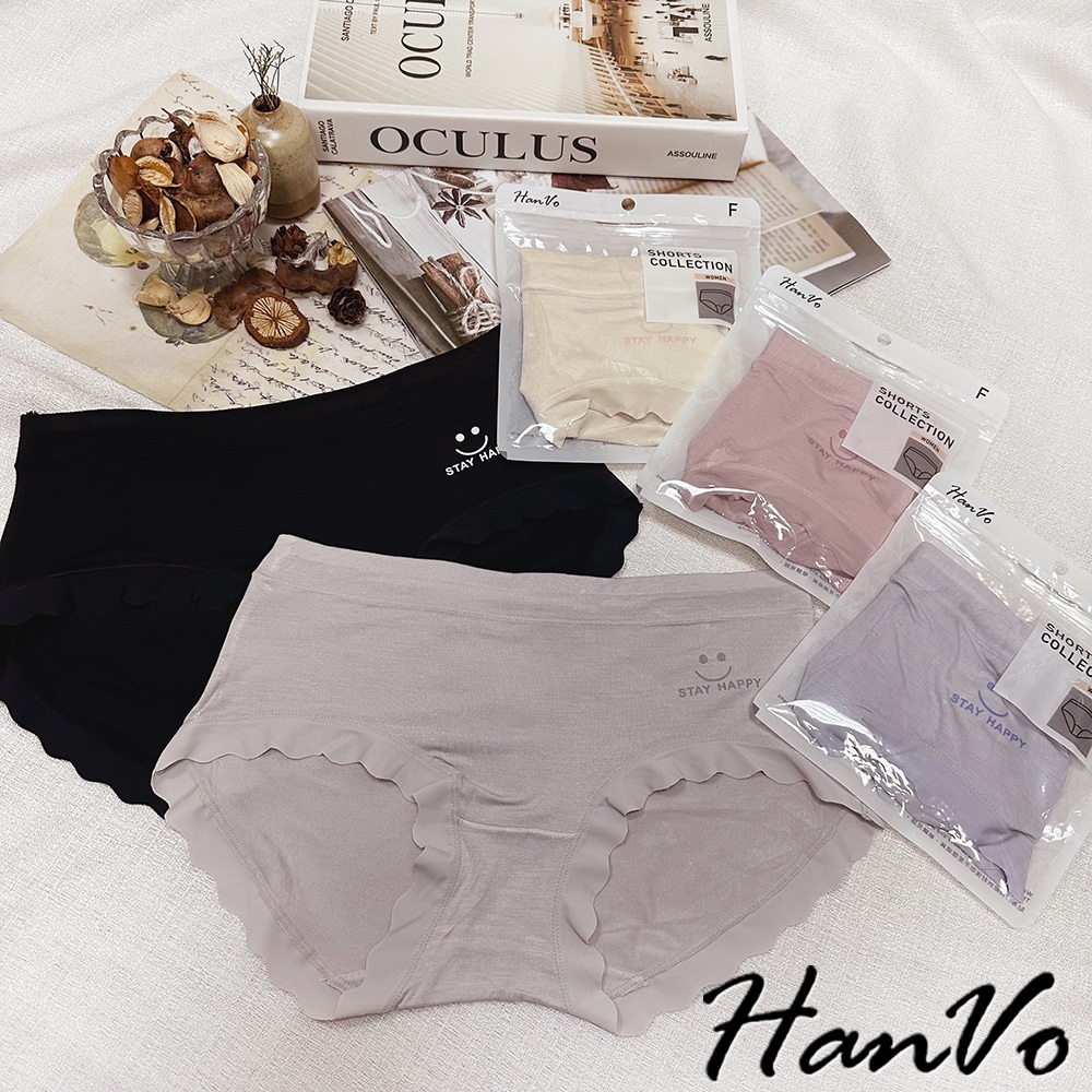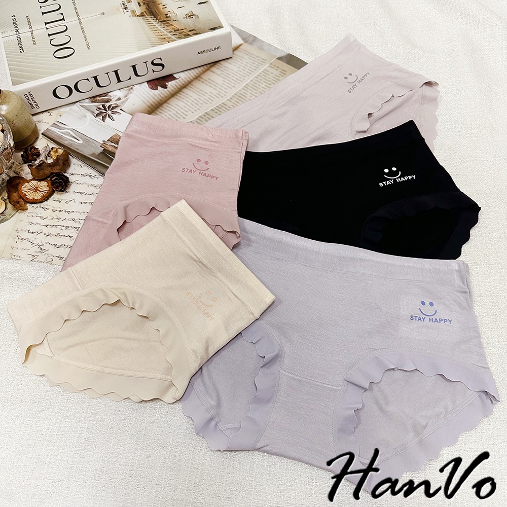 【HanVo】微笑花邊素色莫代爾內褲 透氣細緻親柔觸感中腰內褲 獨立包裝 流行少女內褲 內著 A11-5885煙燻灰|暖膚杏|淡藍紫|靜謐黑|香甜粉PantiesHanVo Wear Collection