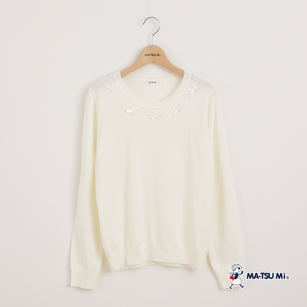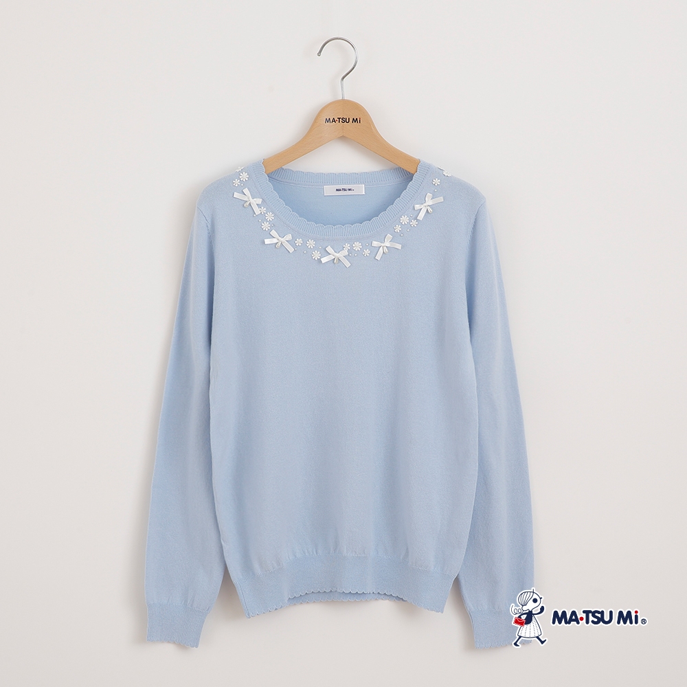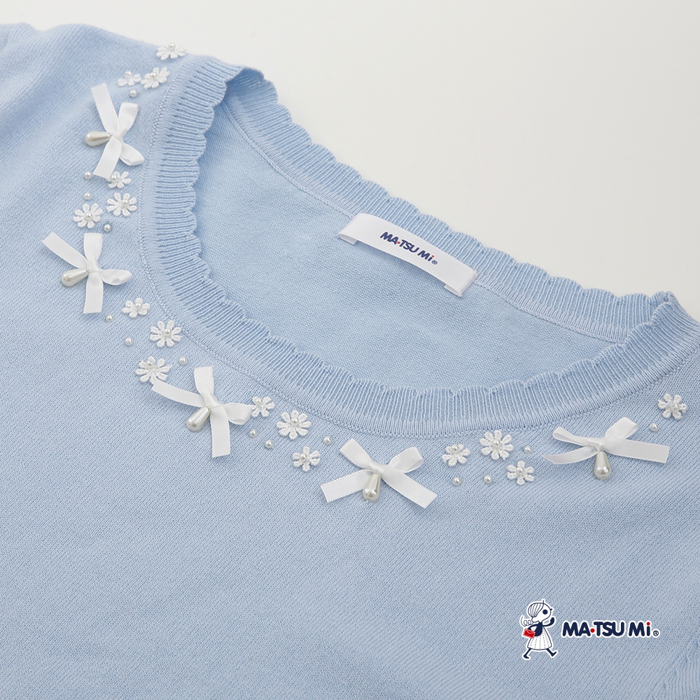 MA‧TSU Mi 氣質感珍珠小花蝴蝶結針織上衣(白.水藍)白,M|白,L|白,XL|水藍,M|水藍,L|水藍,XLMA•TSU Mi瑪之蜜官方旗艦店