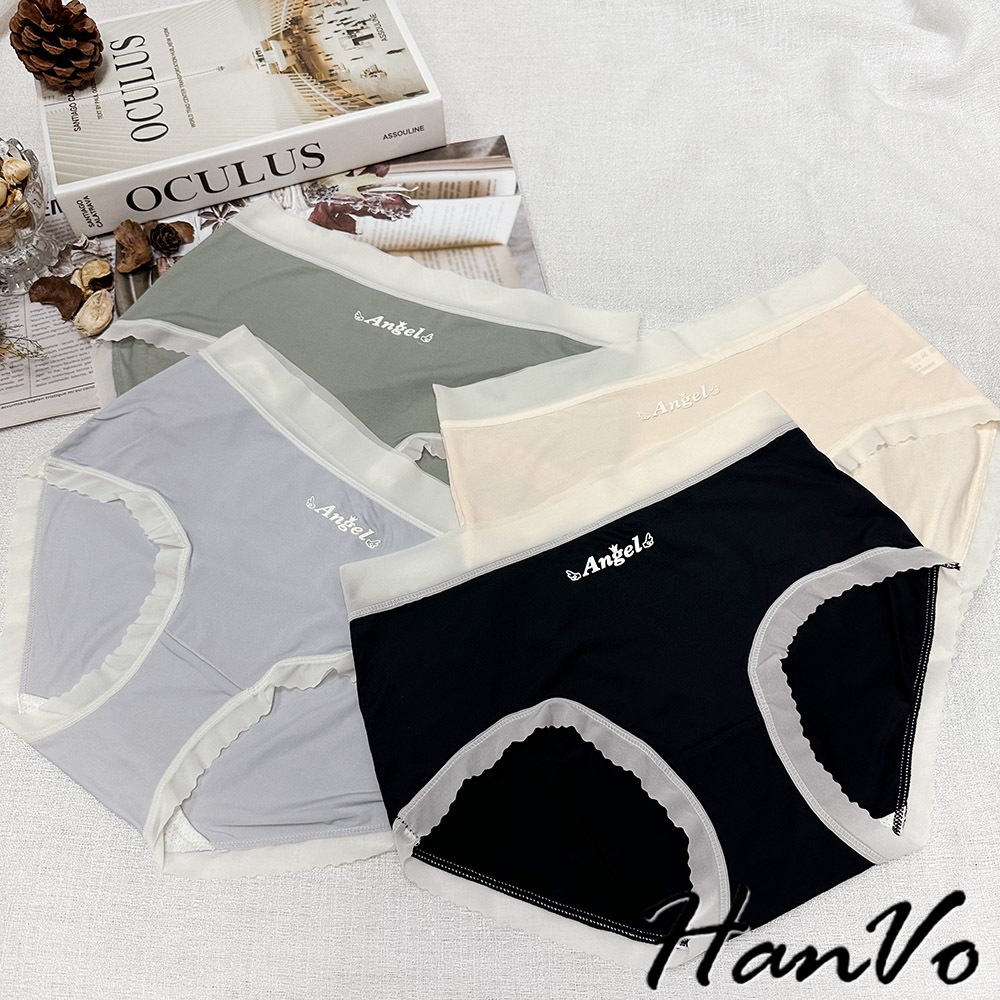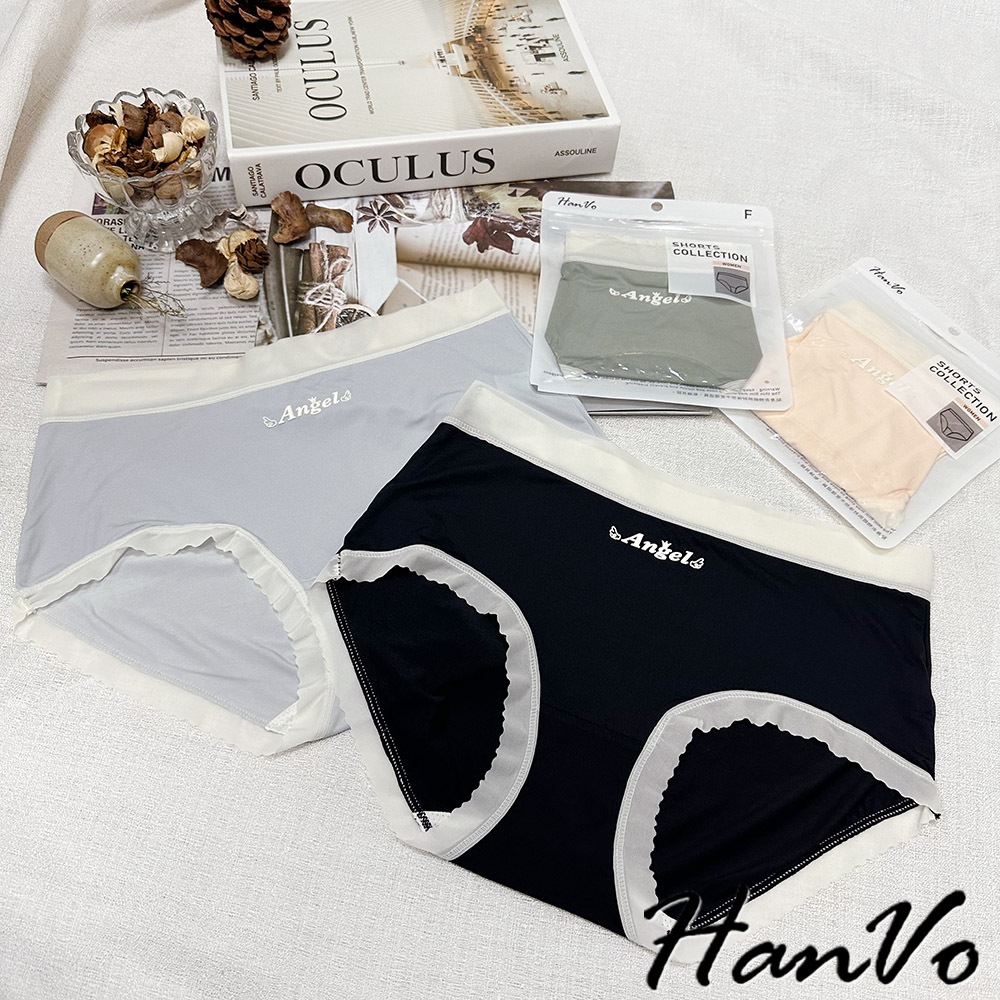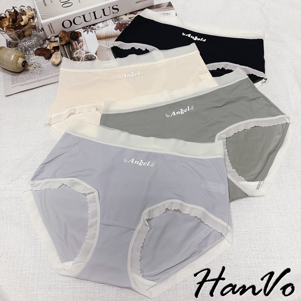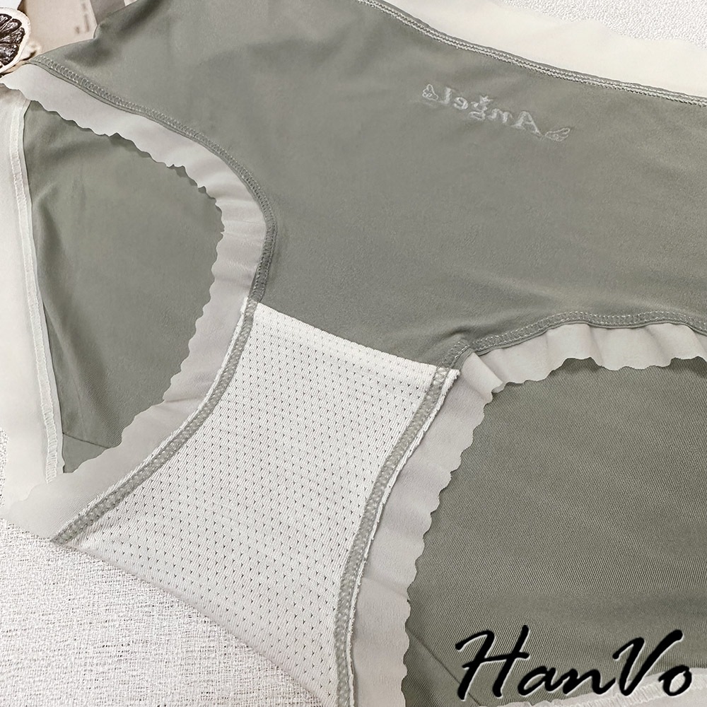 【HanVo】ANGEL裸感無痕輕薄內褲 冰絲內褲 涼感內褲 中腰 獨立包裝 女生內褲 內褲 A11-5823企鵝灰|森林黑|淡雅橘|松柏綠PantiesHanVo Wear Collection