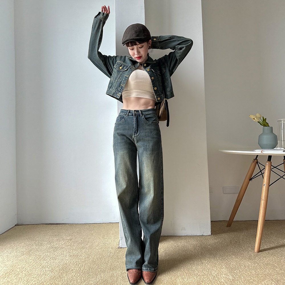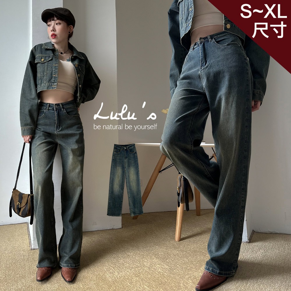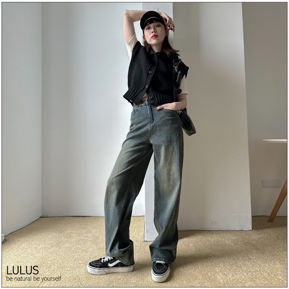LULUS/水洗做舊牛仔寬褲S-XL深藍【A04230266】復古刷色240222