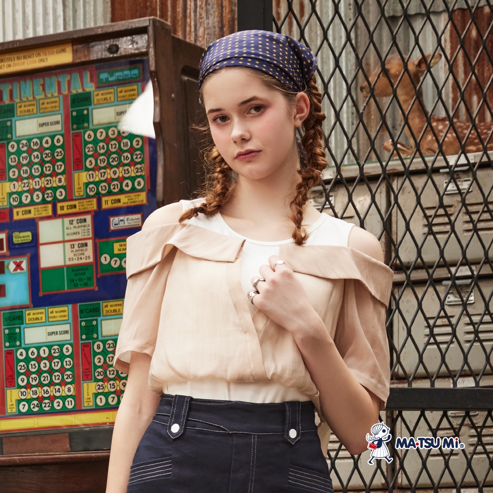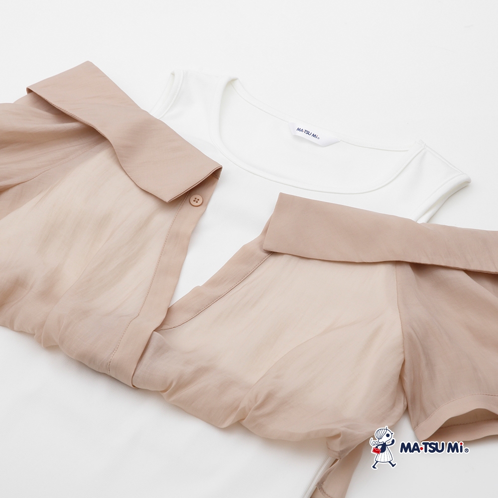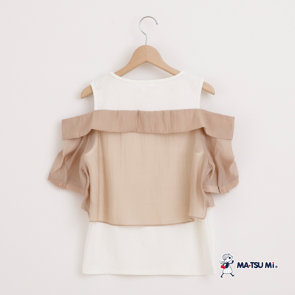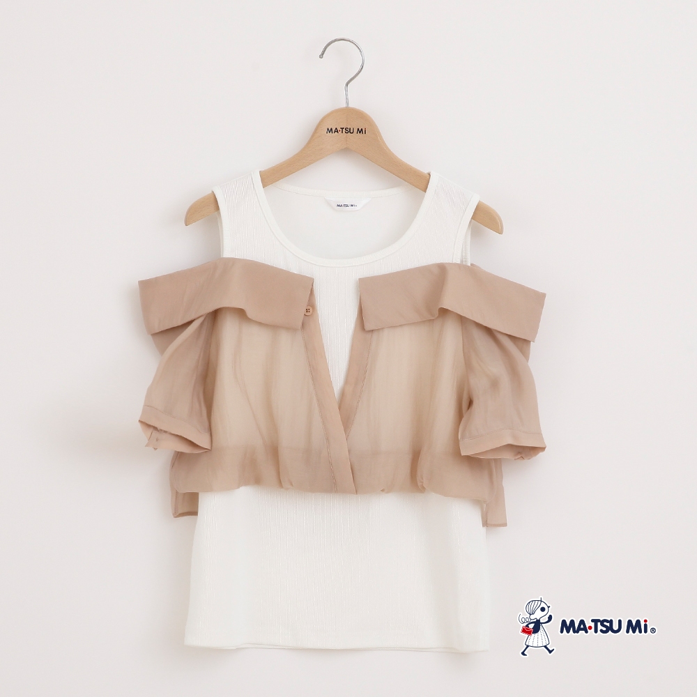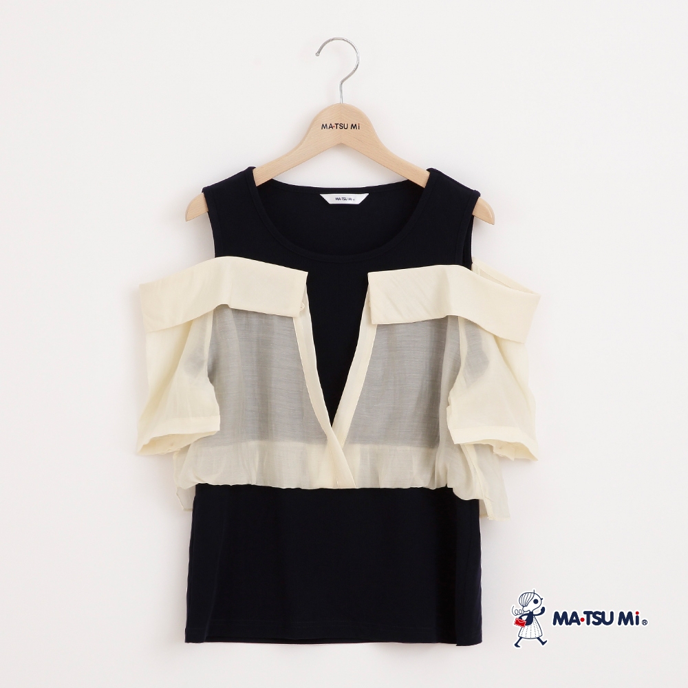 MA‧TSU Mi 層次感雪紡拼接露肩設計上衣(白.深藍)白,M|白,L|深藍,M|深藍,LT-shirtsMA•TSU Mi瑪之蜜官方旗艦店