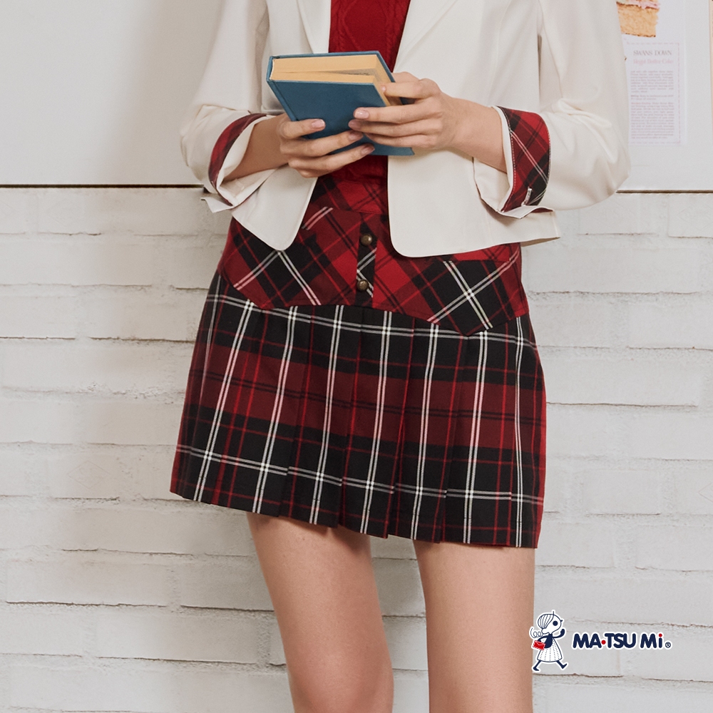 MA‧TSU Mi 學院風剪裁排釦百褶短裙(紅.水藍)水藍,S|水藍,M|水藍,L|水藍,XL|紅,S|紅,M|紅,L|紅,XLMA•TSU Mi瑪之蜜官方旗艦店