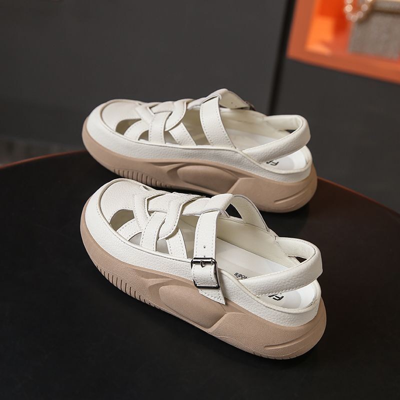 【HOT 本舖】軟底皮涼鞋女夏季新款外穿時尚厚底百搭包頭透氣鏤空洞洞鞋女