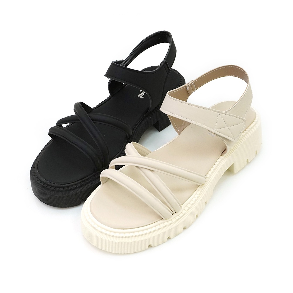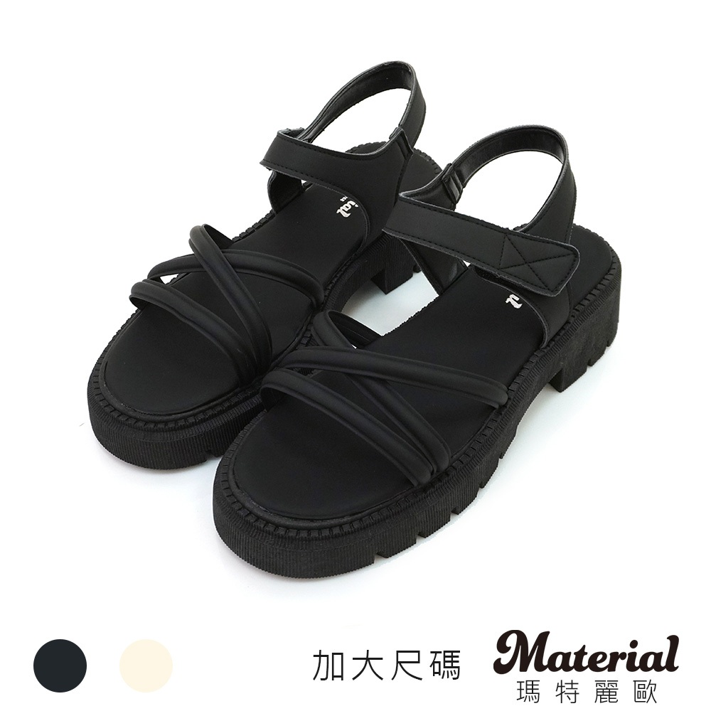 Material瑪特麗歐 TG53373 【加大尺碼25.5-27】 女鞋 涼鞋 MIT加大尺碼交叉細帶魔鬼氈涼鞋黑色25.5|黑色26|黑色26.5|黑色27|米色25.5|米色26|米色26.5|米色27Flat SandalsMaterial 瑪特麗歐 台灣製女鞋品牌 旗艦店