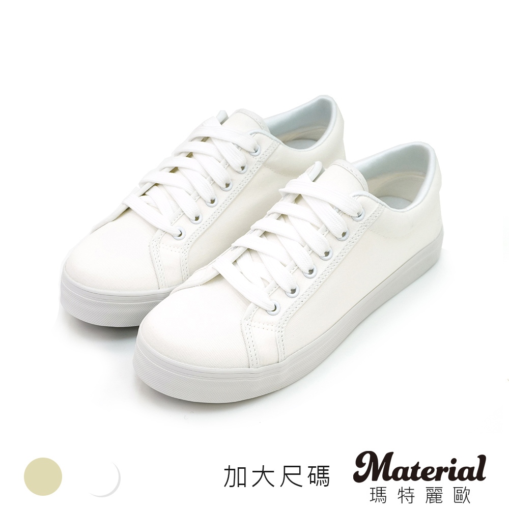 Material瑪特麗歐 TG13008 【加大尺碼25.5-27】 休閒鞋 真皮鞋墊 MIT加大尺碼布面綁帶平底包鞋奶茶25.5|奶茶26|奶茶26.5|奶茶27|白色25.5|白色26|白色26.5|白色27Material 瑪特麗歐 台灣製女鞋品牌 旗艦店