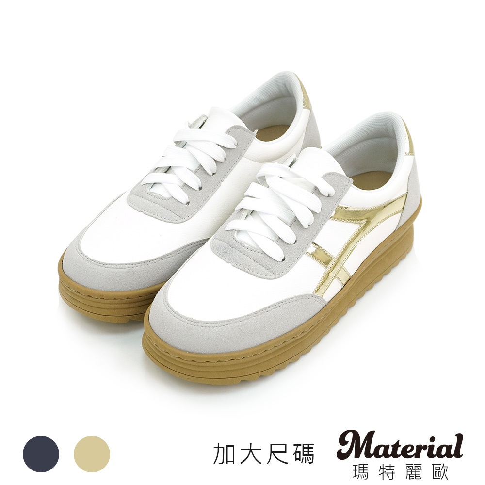 Material瑪特麗歐 TG52275 【加大尺碼25.5-27】 女鞋 休閒鞋 MIT加大尺碼簡約撞色德訓鞋藍色25.5|藍色26|藍色26.5|藍色27|金色25.5|金色26|金色26.5|金色27Material 瑪特麗歐 台灣製女鞋品牌 旗艦店