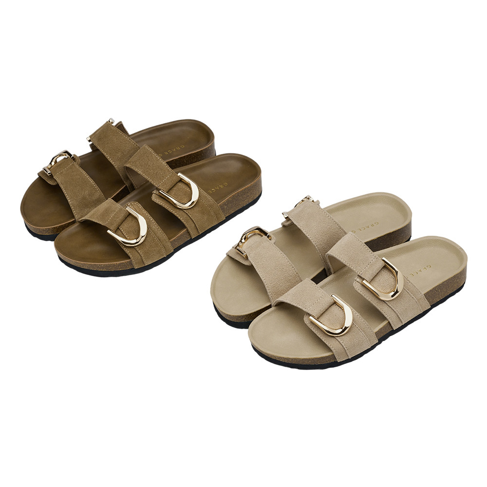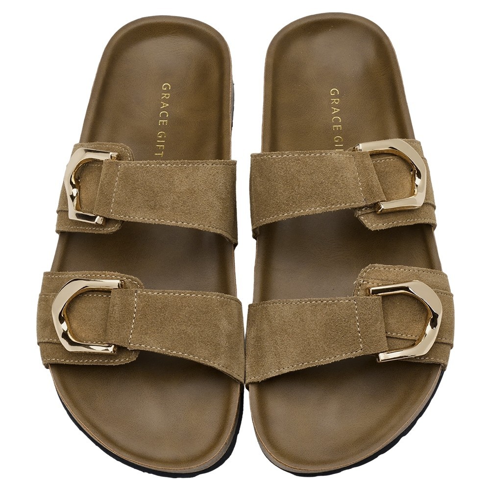 【Grace Gift】拖鞋 女鞋 勃肯鞋【日光奶茶復古金屬扣雙帶拖鞋】2色 35-41號 平底拖鞋 涼鞋灰褐,35|灰褐,36|灰褐,37|灰褐,38|灰褐,39|灰褐,40|灰褐,41|深杏,35|深杏,36|深杏,37|深杏,38|深杏,39|深杏,40|深杏,41Flip FlopsGrace gift 正式官方旗艦店