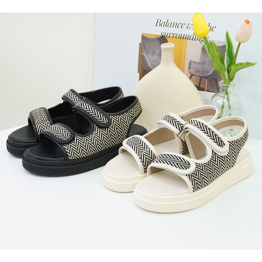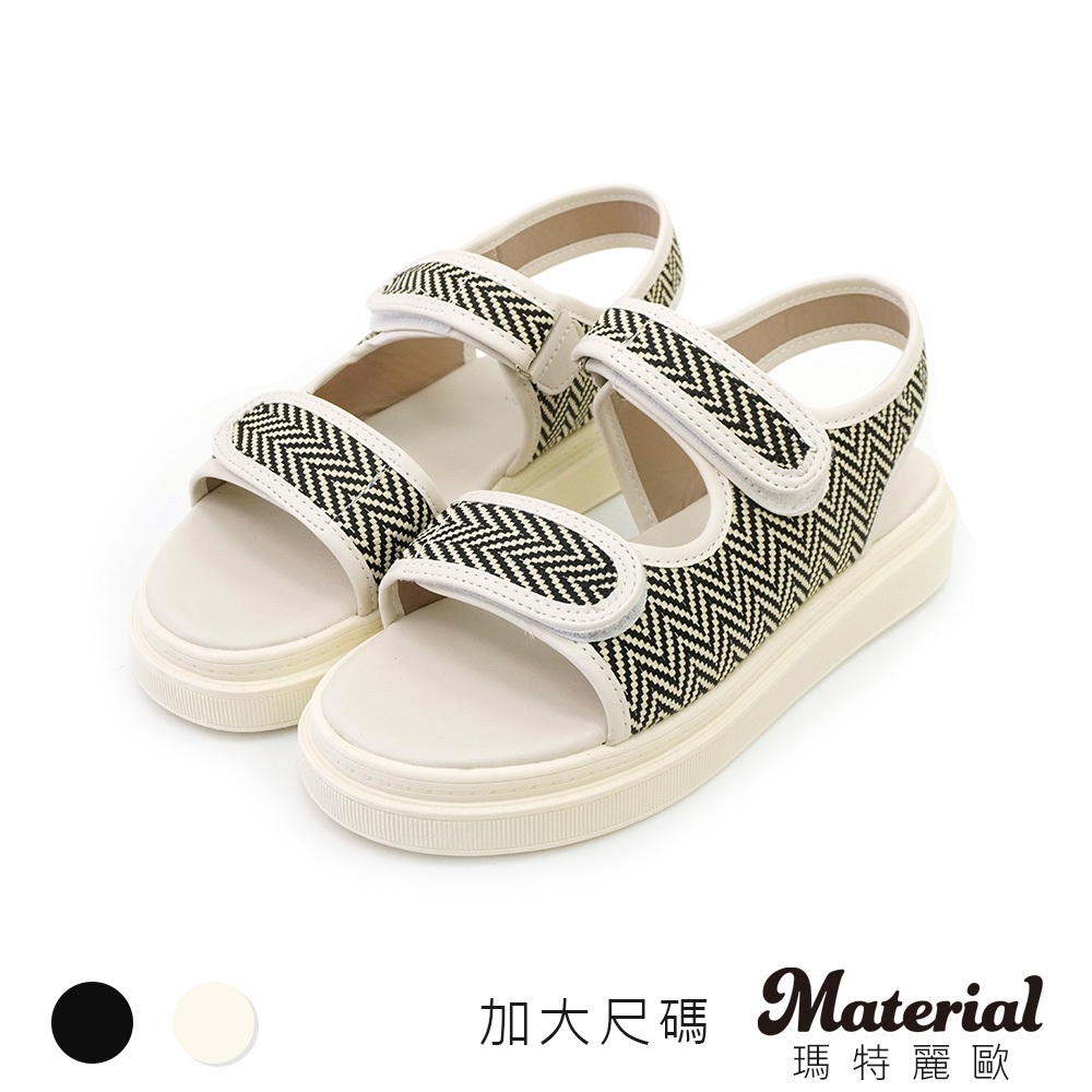 Material瑪特麗歐 TG8526 【加大尺碼25.5-27】 女鞋 涼鞋 MIT加大尺碼雙帶拼接厚底涼鞋黑色25.5|黑色26|黑色26.5|黑色27|米色25.5|米色26|米色26.5|米色27Flat SandalsMaterial 瑪特麗歐 台灣製女鞋品牌 旗艦店