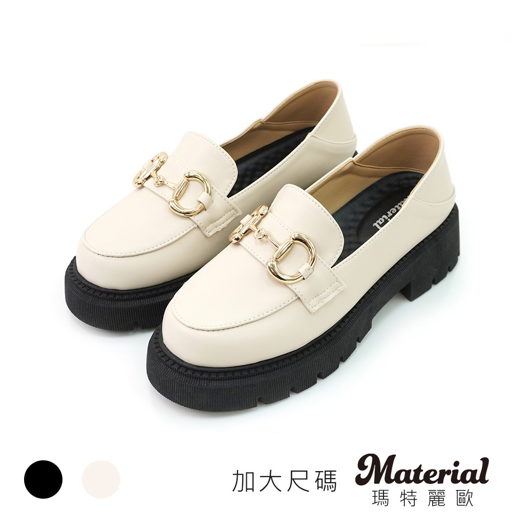 Material瑪特麗歐 TG53013 【加大尺碼25.5-27】 女鞋 樂福鞋 MIT加大尺碼時髦銜釦厚底樂福鞋黑色25.5|黑色26|黑色26.5|黑色27|米色25.5|米色26|米色26.5|米色27Loafers & Boat ShoesMaterial 瑪特麗歐 台灣製女鞋品牌 旗艦店