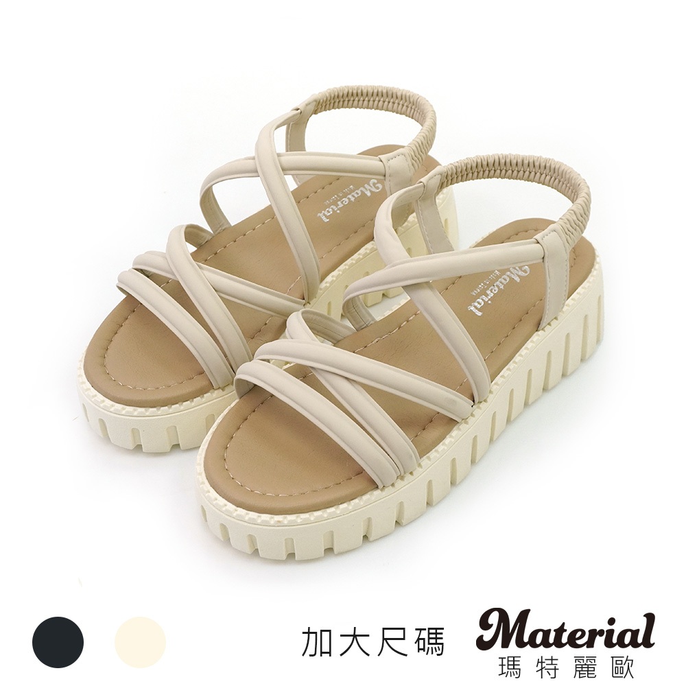 Material瑪特麗歐 TG53396 【加大尺碼25.5-27】 女鞋 涼鞋 MIT加大尺碼交叉細帶厚底涼鞋黑色25.5|黑色26|黑色26.5|黑色27|米色25.5|米色26|米色26.5|米色27Flat SandalsMaterial 瑪特麗歐 台灣製女鞋品牌 旗艦店