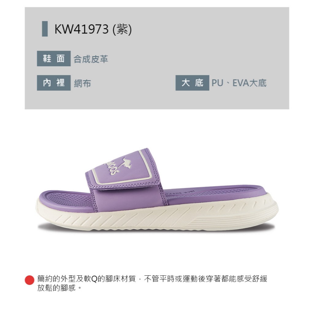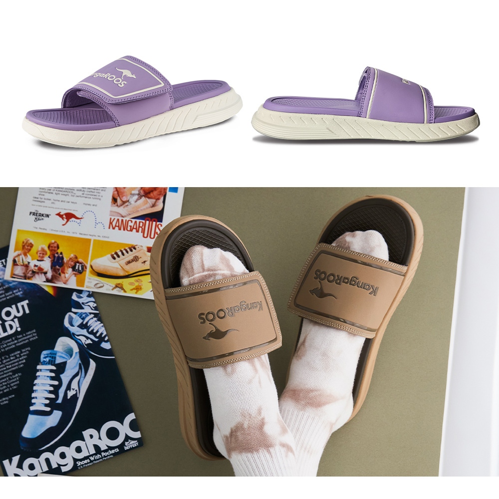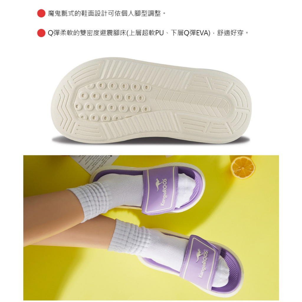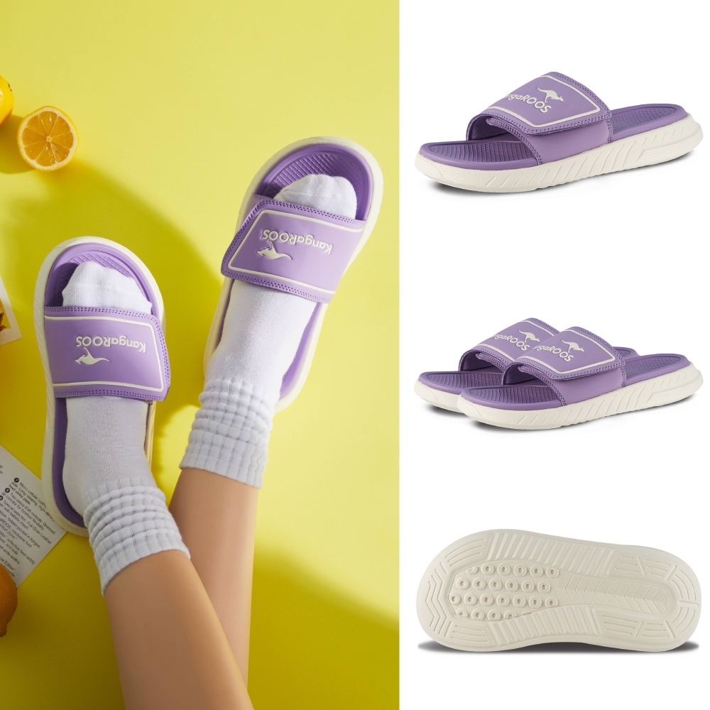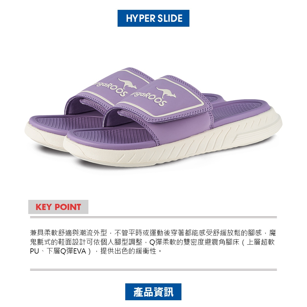 【KangaROOS 美國袋鼠鞋】女鞋 HYPER SLIDE 厚片吐司拖鞋 魔鬼氈 止滑 (紫-KW41973)22cm|23cm|24cm|25cm|26cmFlat SandalsKangaROOS 美國袋鼠鞋 官方旗艦店