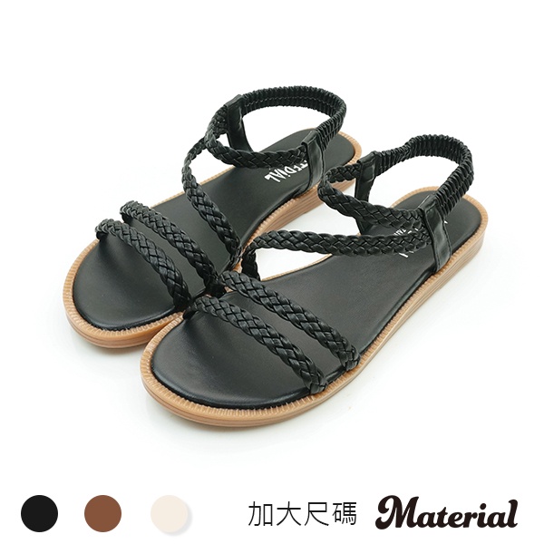 Material瑪特麗歐 TG1062 【加大尺碼25.5-27】 女鞋 涼鞋 MIT加大尺碼編織細帶鬆緊涼鞋黑色26.5|米色25.5|米色26.5|棕色26|棕色26.5|棕色27|米色26|黑色25.5|黑色26|黑色27|棕色25.5|米色27Flat SandalsMaterial 瑪特麗歐 台灣製女鞋品牌 旗艦店