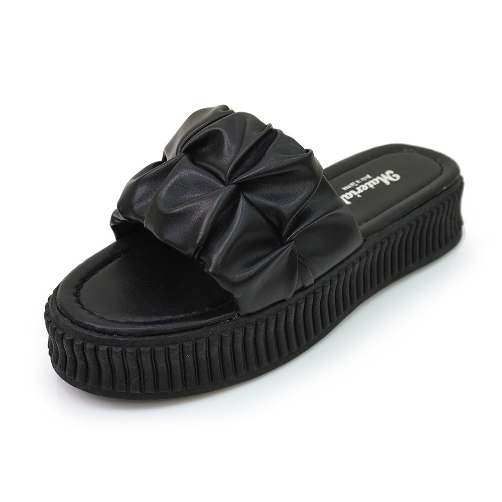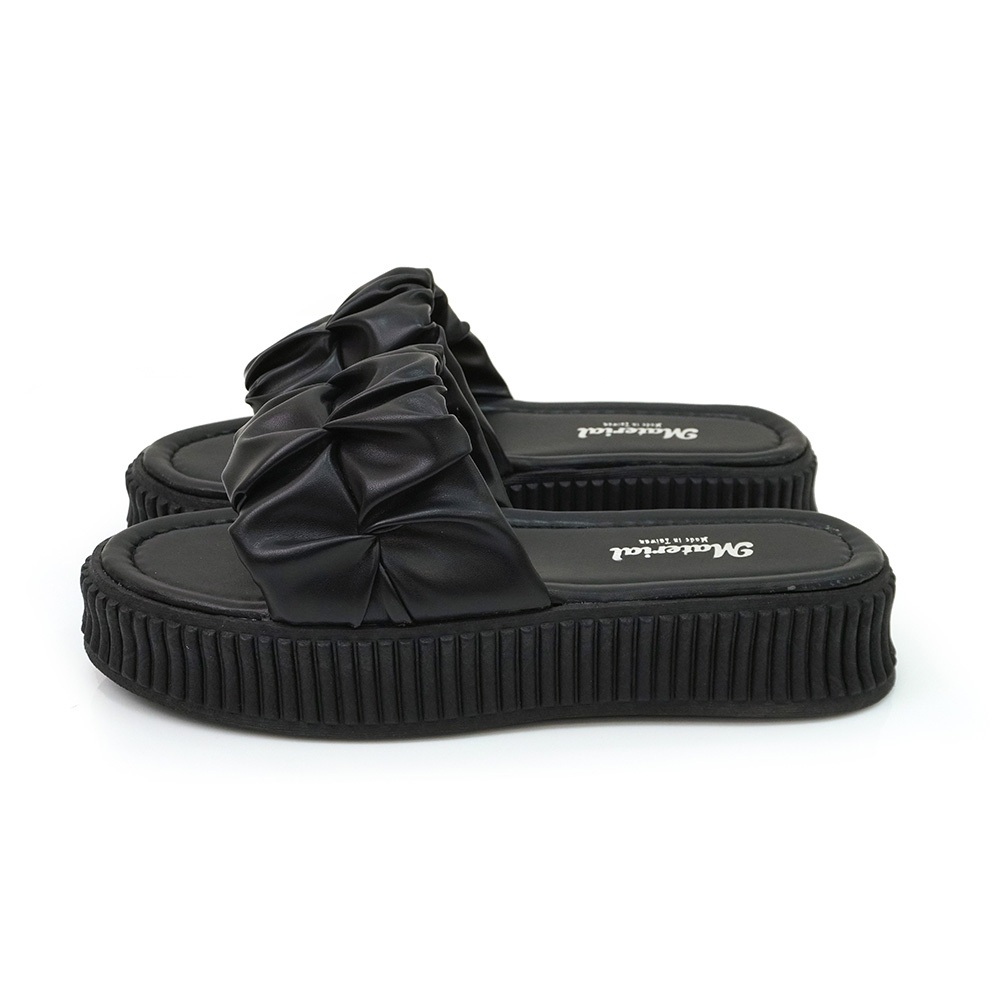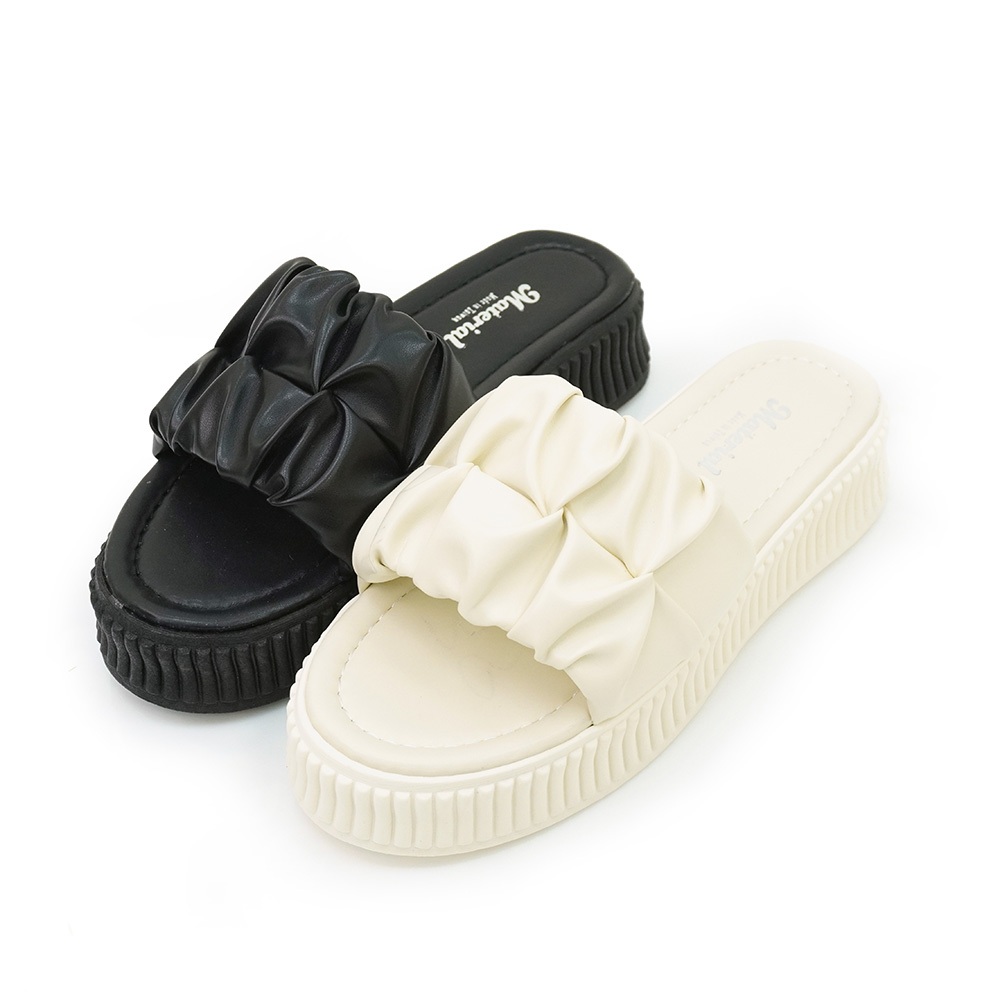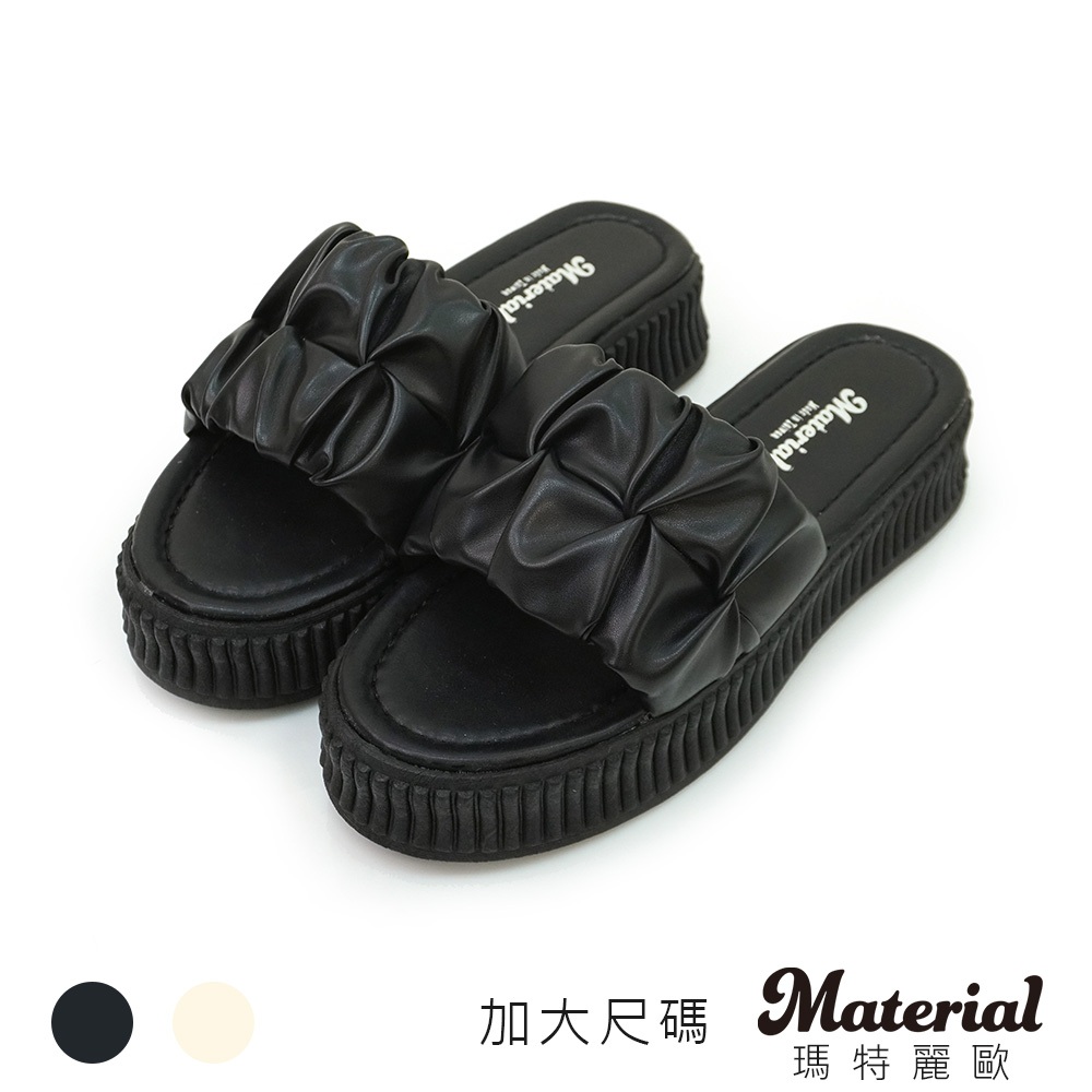 Material瑪特麗歐 TG53360 【加大尺碼25.5-27】 女鞋 拖鞋 MIT加大尺碼寬帶抓皺厚底拖鞋黑色25.5|黑色26|黑色26.5|黑色27|米色25.5|米色26|米色26.5|米色27Flat SandalsMaterial 瑪特麗歐 台灣製女鞋品牌 旗艦店