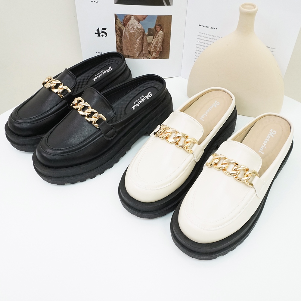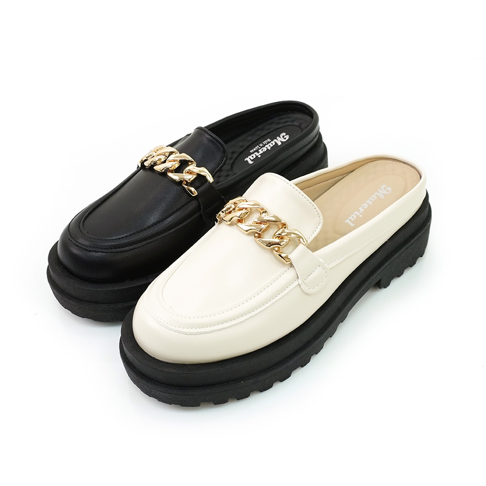 Material瑪特麗歐 T52952 一般碼23-25(另有加大碼) 女鞋 樂福鞋 MIT一字鍊條厚底穆勒鞋黑色23|黑色23.5|黑色24|黑色24.5|黑色25|米色23|米色23.5|米色24|米色24.5|米色25Loafers & Boat ShoesMaterial 瑪特麗歐 台灣製女鞋品牌 旗艦店