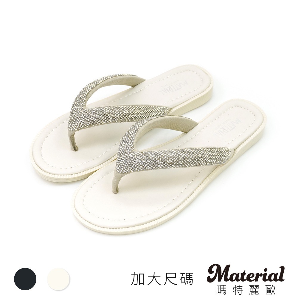 Material瑪特麗歐 TG0184 【加大尺碼25.5-27】 女鞋 拖鞋 MIT加大尺碼夾腳水鑽平底拖鞋黑色25.5|黑色26|黑色26.5|黑色27|米色25.5|米色26|米色26.5|米色27Flat SandalsMaterial 瑪特麗歐 台灣製女鞋品牌 旗艦店