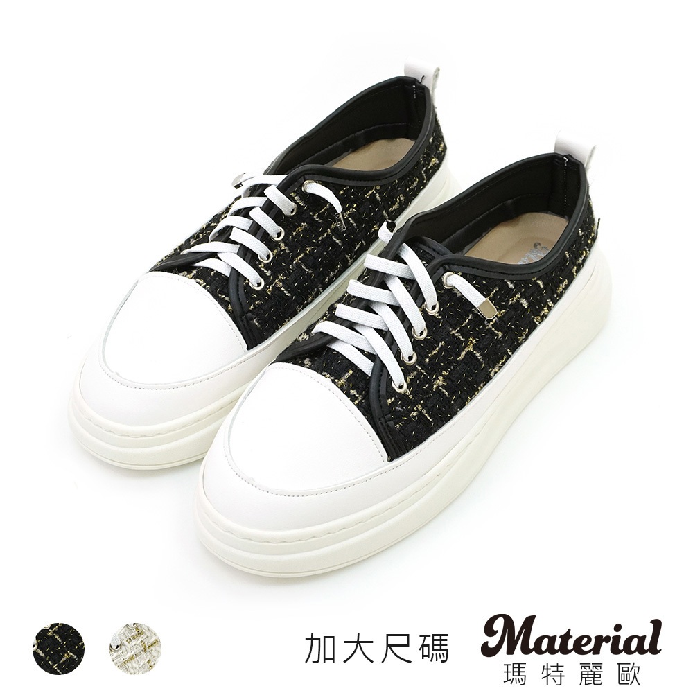Material瑪特麗歐 TG52917 【加大尺碼25.5-27】 女鞋 休閒鞋 MIT加大尺碼小香風拼接懶人鞋黑色25.5|黑色26|黑色26.5|黑色27|白色25.5|白色26|白色26.5|白色27Material 瑪特麗歐 台灣製女鞋品牌 旗艦店