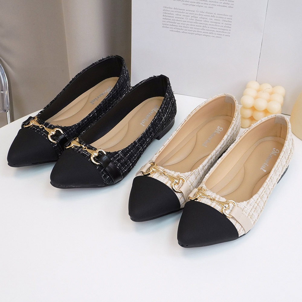 Material瑪特麗歐 T53125 一般碼23-25(另有加大碼) 女鞋 包鞋 MIT拼接尖頭平底包鞋黑色23|黑色23.5|黑色24|黑色24.5|黑色25|米色23|米色23.5|米色24|米色24.5|米色25Ballet FlatsMaterial 瑪特麗歐 台灣製女鞋品牌 旗艦店
