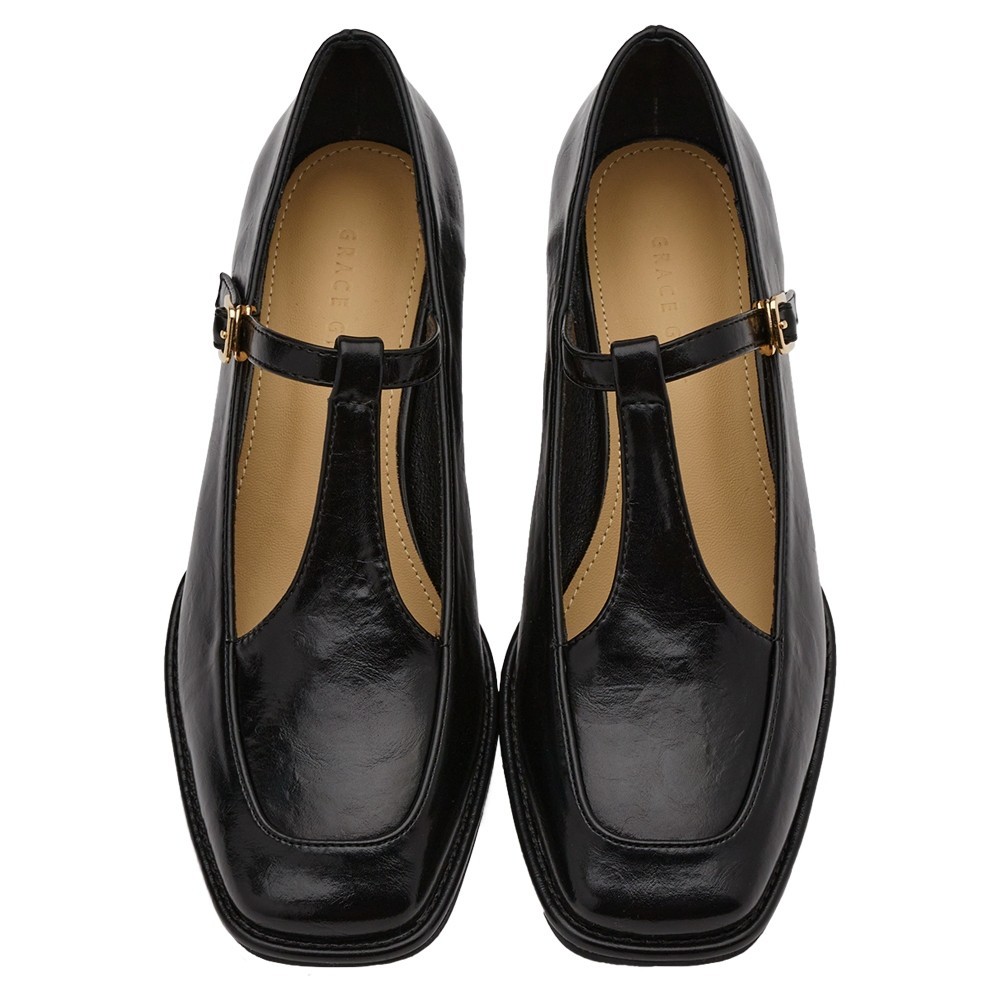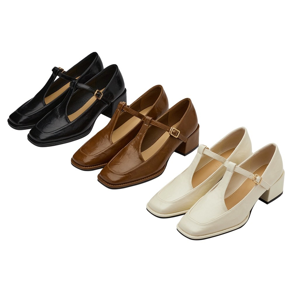 【Grace Gift】瑪莉珍鞋 包鞋 瑪麗珍【知性方頭T字中跟瑪莉珍鞋】3色 35-39號 高跟 T字 瑪莉珍黑,36|黑,37|黑,38|黑,39|棕,35|棕,36|棕,37|棕,38|棕,39|米白,35|米白,36|米白,37|米白,38|米白,39|黑,35Grace gift 正式官方旗艦店