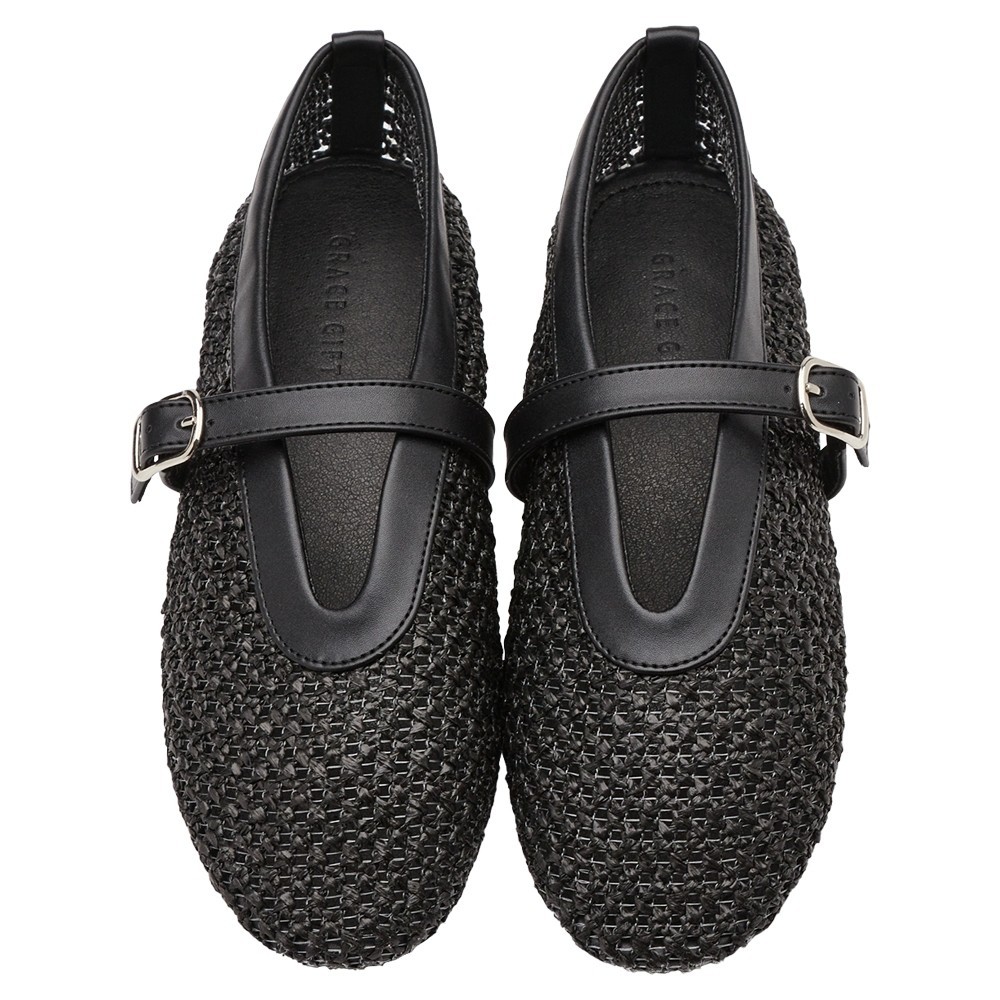 【Grace Gift】瑪莉珍 包鞋 瑪麗珍 【法式時髦簍空編織瑪莉珍平底鞋】3色 35-40號 編織鞋 平底鞋黑,35|黑,36|黑,37|黑,38|黑,39|黑,40|棕,35|棕,36|棕,37|棕,38|棕,39|棕,40|杏,35|杏,36|杏,37|杏,38|杏,39|杏,40Ballet FlatsGrace gift 正式官方旗艦店