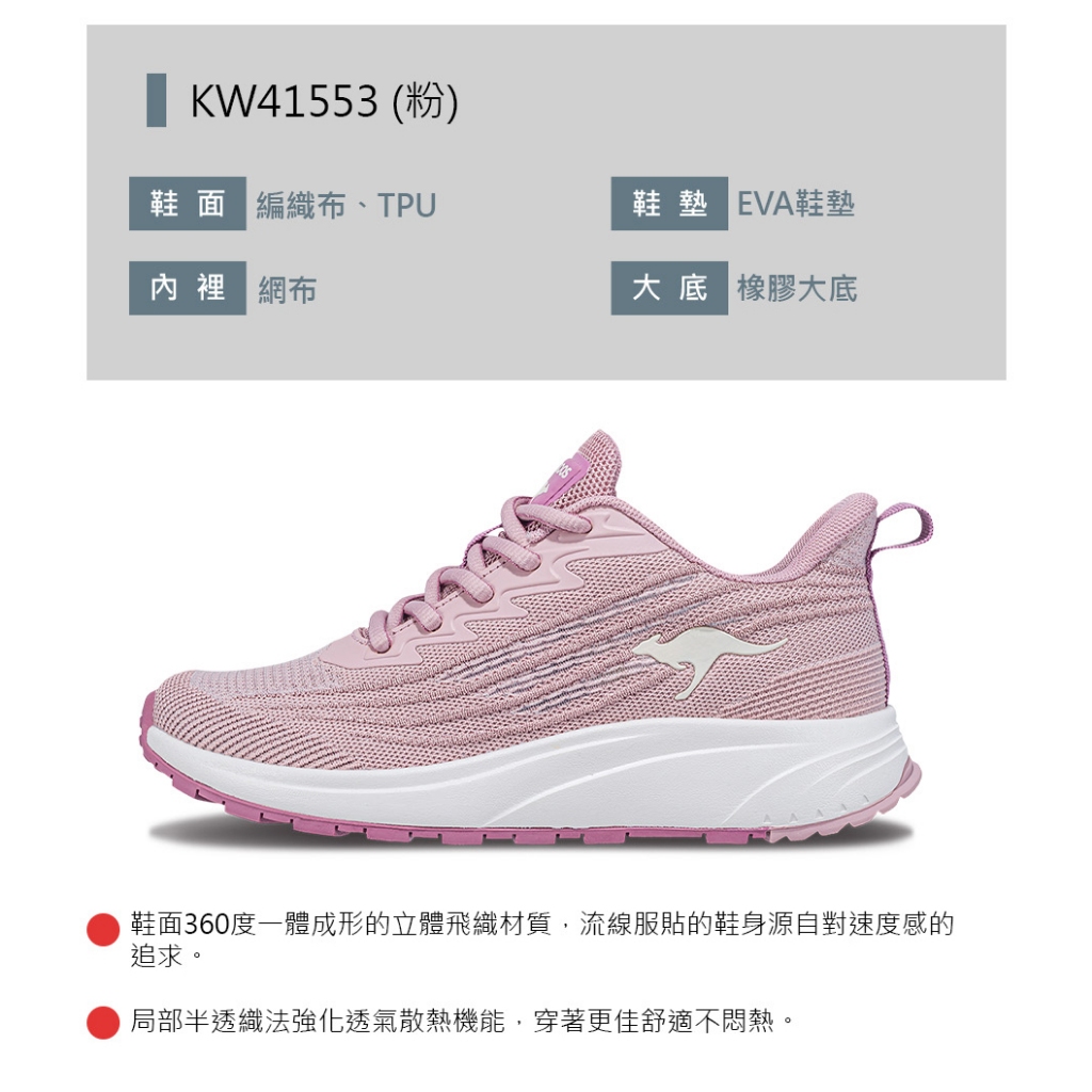 【KangaROOS 美國袋鼠鞋】女鞋 RUN SPEED 2 透氣吸濕 涼爽散熱 輕量緩震 (粉-KW41553)23cm|23.5cm|24cm|24.5cm|25cm|25.5cmKangaROOS 美國袋鼠鞋 官方旗艦店