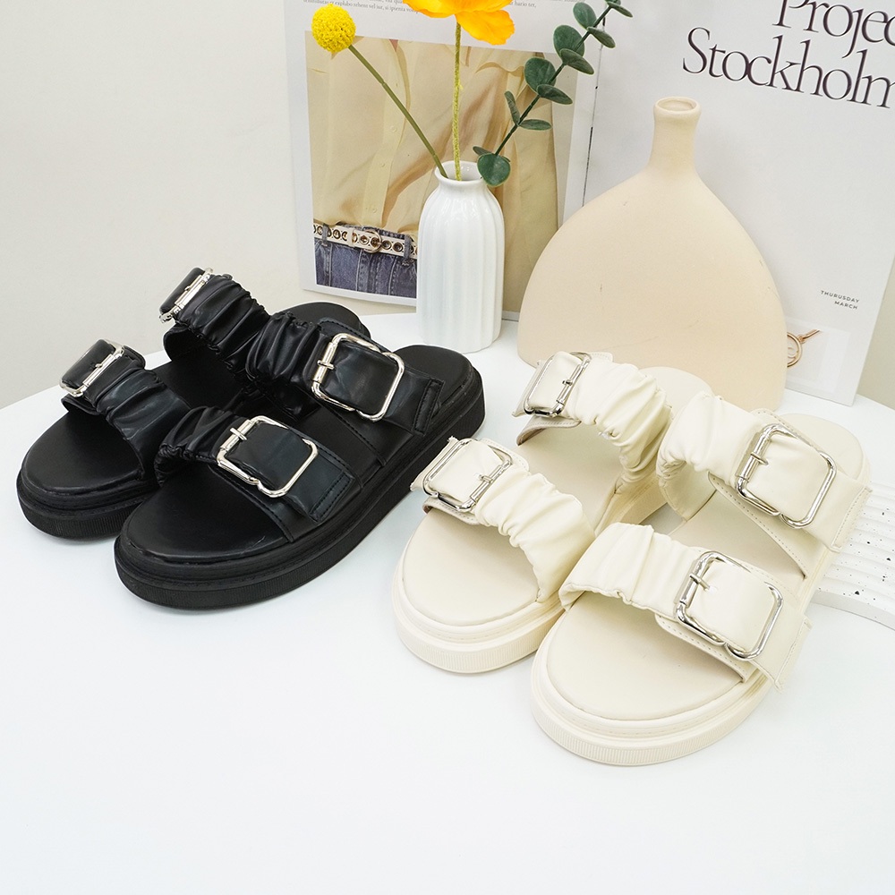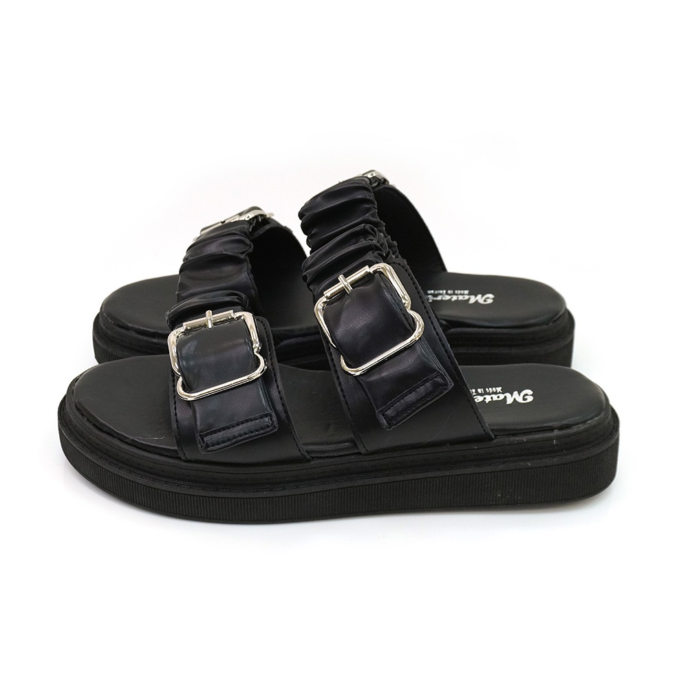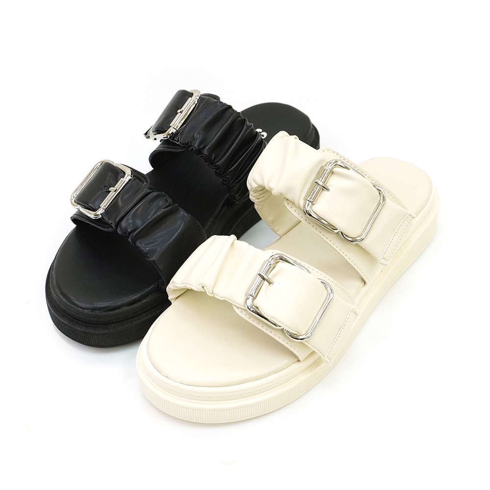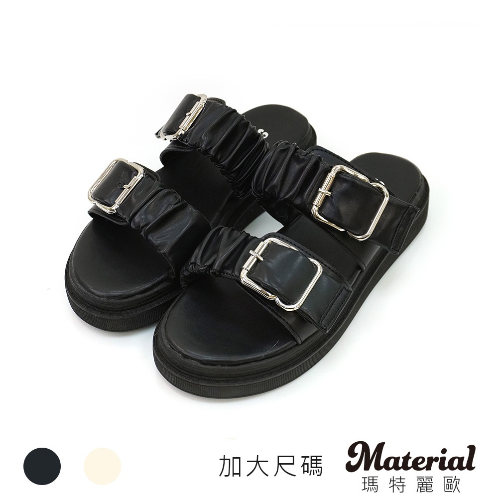 Material瑪特麗歐 TG8527 【加大尺碼25.5-27】 女鞋 拖鞋 MIT加大尺碼雙帶抓皺雲朵拖鞋黑色25.5|黑色26|黑色26.5|黑色27|米色25.5|米色26|米色26.5|米色27Flat SandalsMaterial 瑪特麗歐 台灣製女鞋品牌 旗艦店