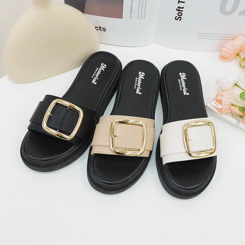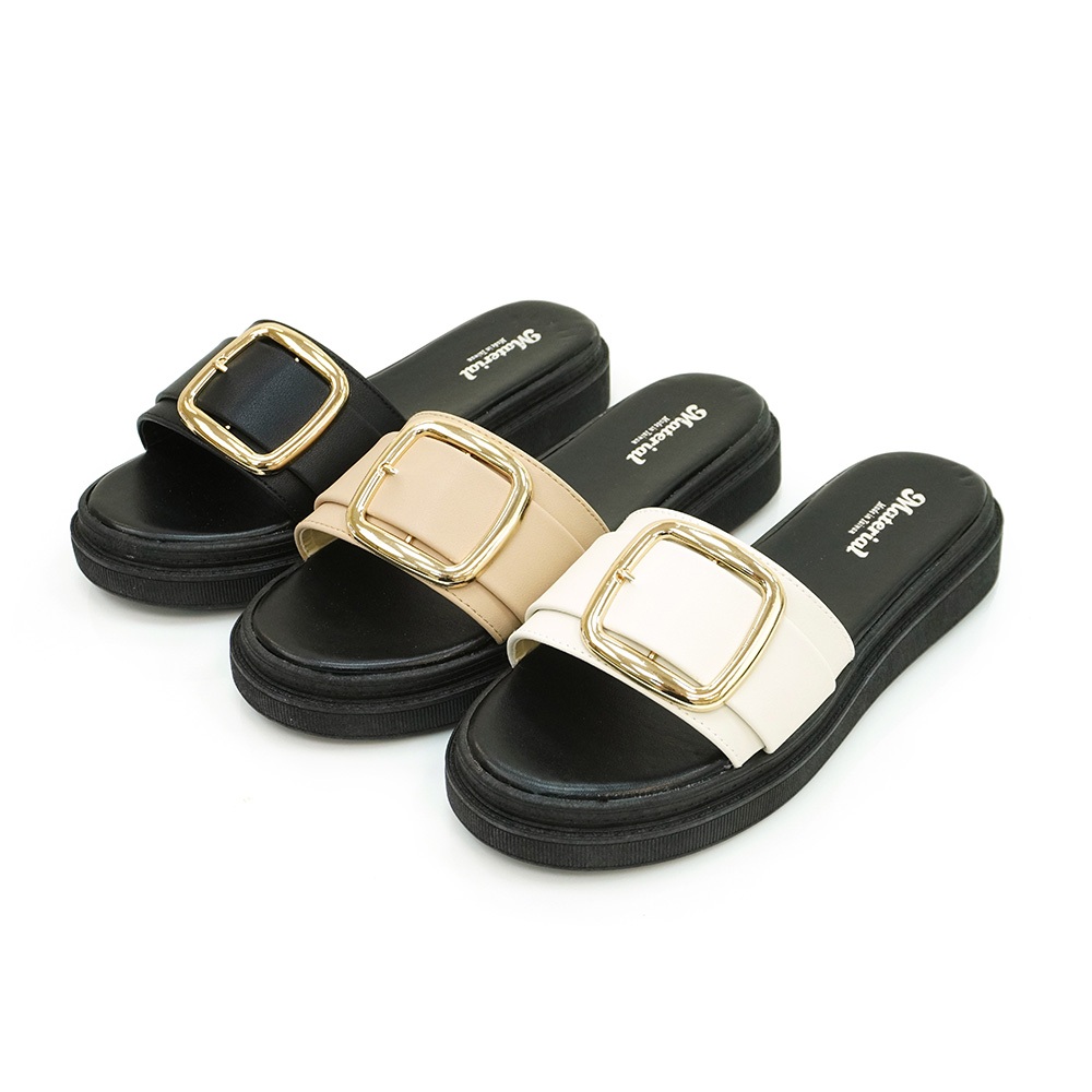 Material瑪特麗歐 T54522 【23-25】 女鞋 拖鞋 MIT大方釦百搭拖鞋黑色23|黑色23.5|黑色24|黑色24.5|黑色25|米色23|米色23.5|米色24|米色24.5|米色25|卡其23|卡其23.5|卡其24|卡其24.5|卡其25Flat SandalsMaterial 瑪特麗歐 台灣製女鞋品牌 旗艦店
