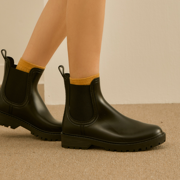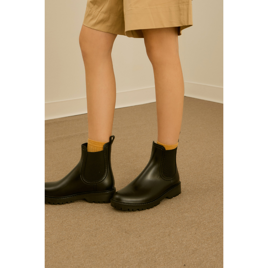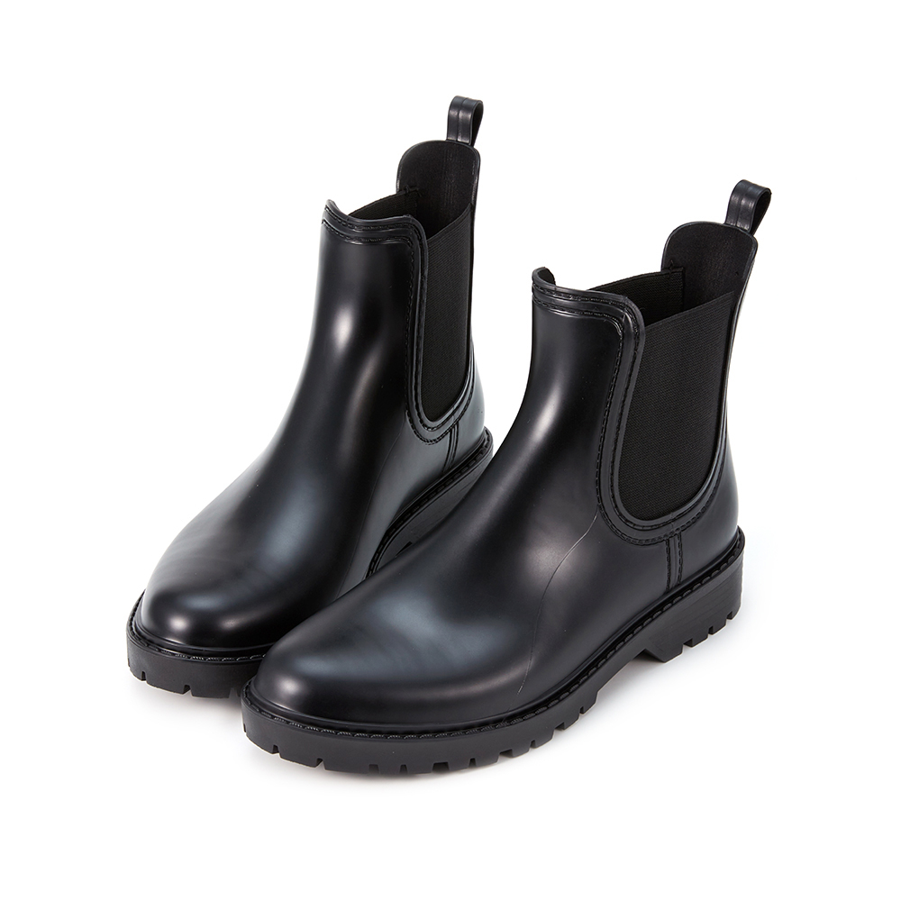 現貨 HERLS雨靴 颱風雨天必備 雨鞋 防水鞋 亮面側鬆緊切爾西厚底防水雨靴 黑色36(23cm)|37(23.5cm)|38(24cm)|39(24.5cm)|40(25cm)Rain BootsHERLS Shoes 官方旗艦店