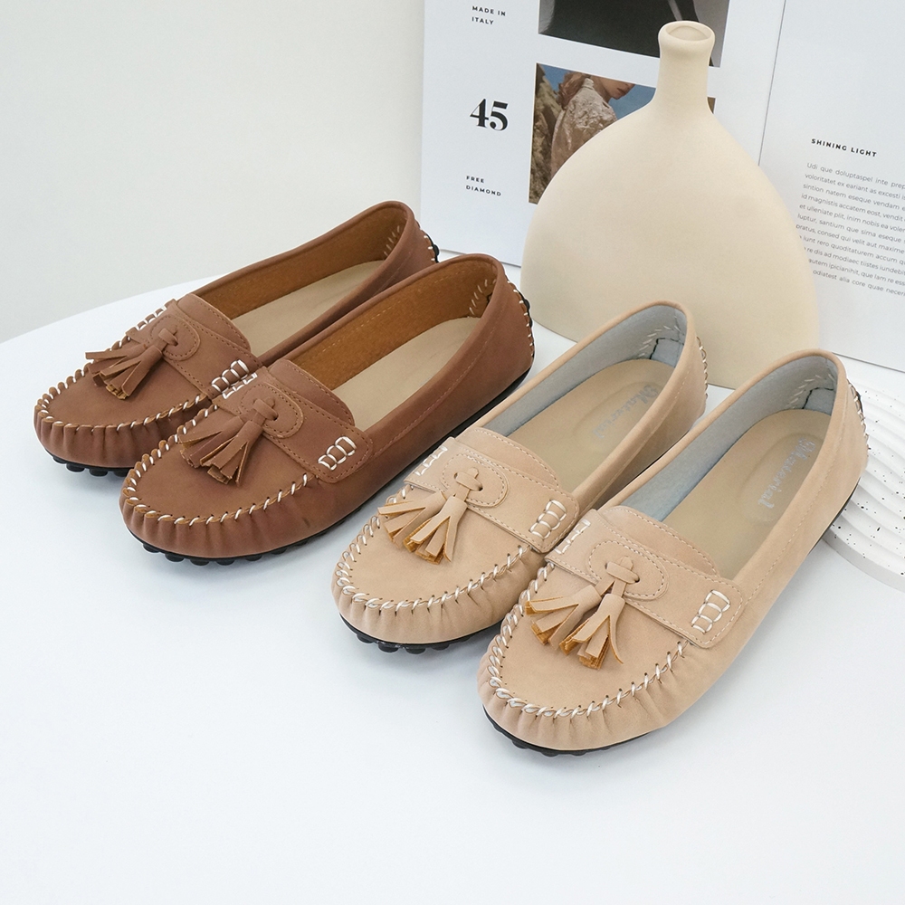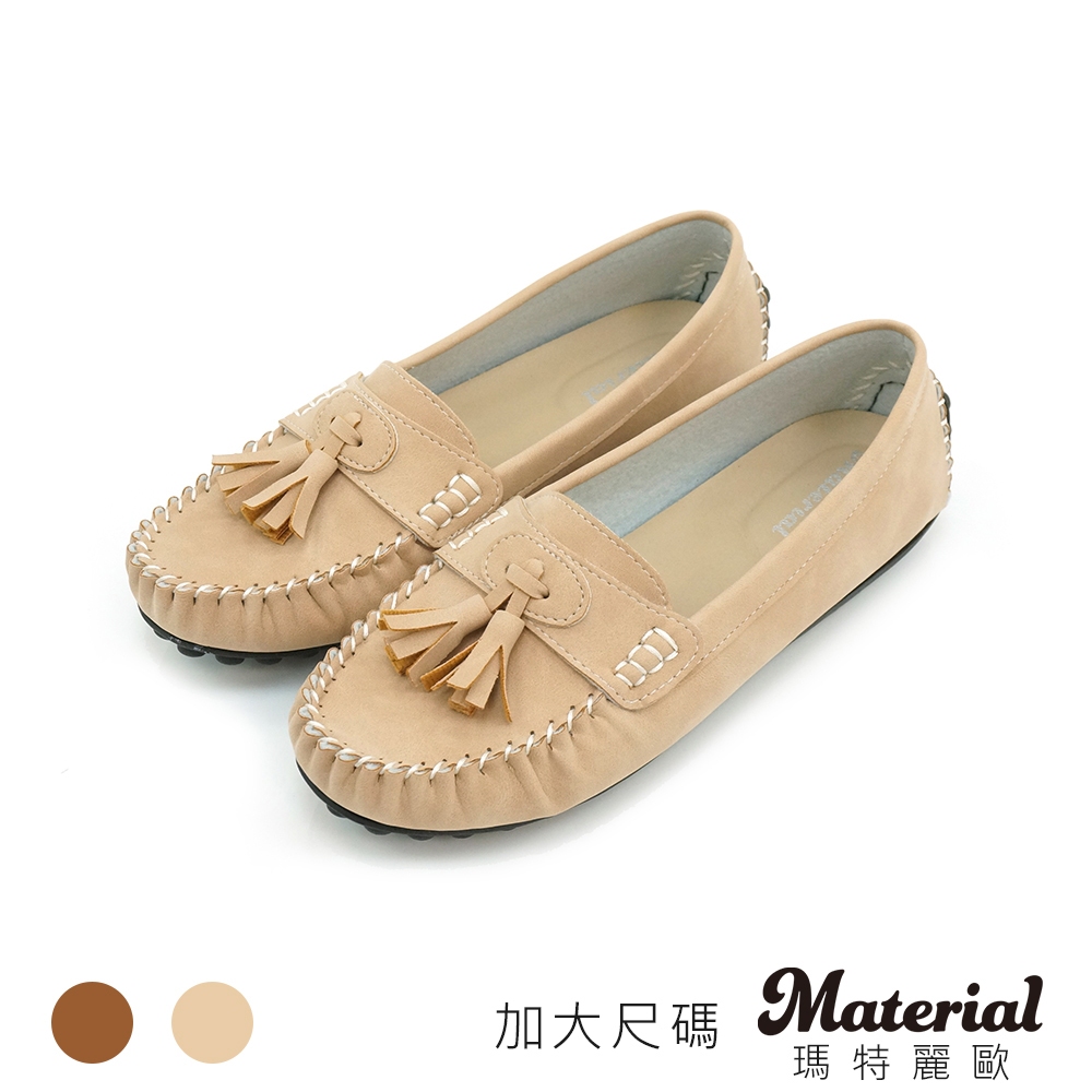 Material瑪特麗歐 TG53047 【加大尺碼25.5-27】 女鞋 懶人鞋 MIT加大尺碼經典流蘇豆豆鞋棕色25.5|棕色26|棕色26.5|棕色27|粉色25.5|粉色26|粉色26.5|粉色27Material 瑪特麗歐 台灣製女鞋品牌 旗艦店