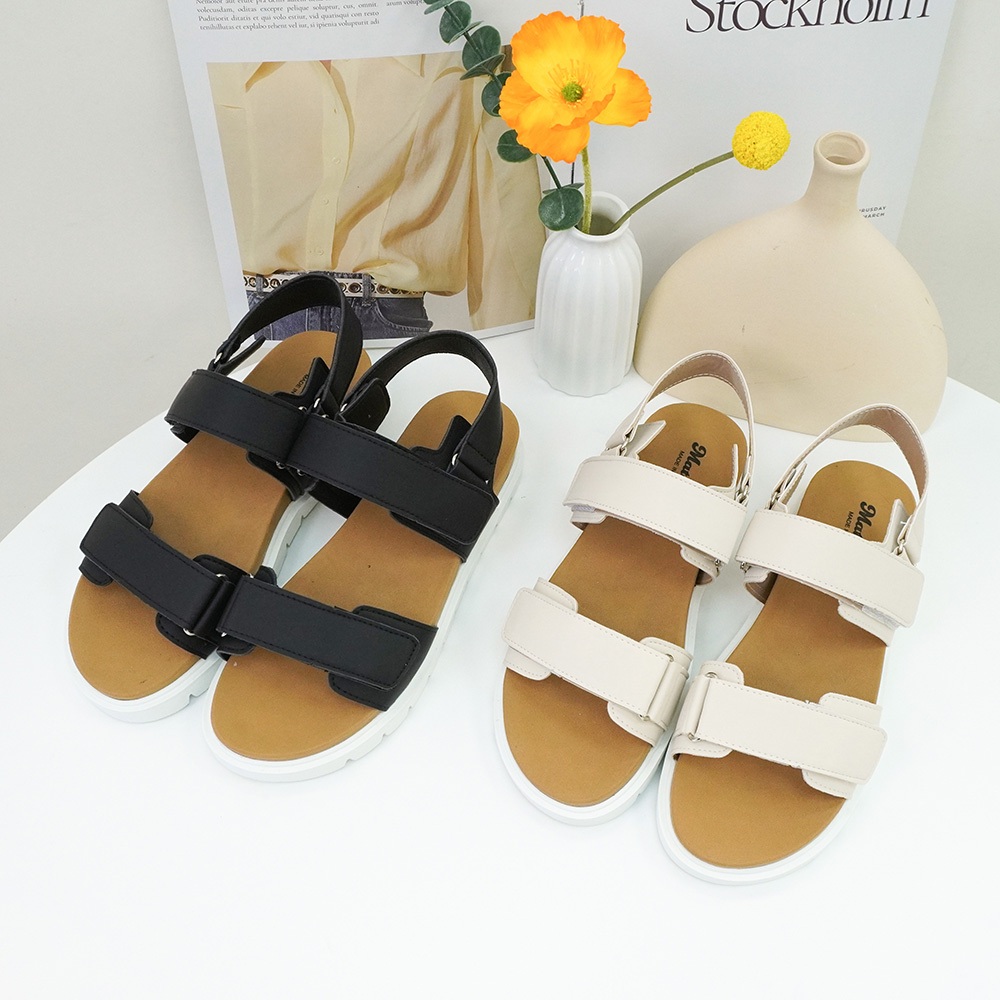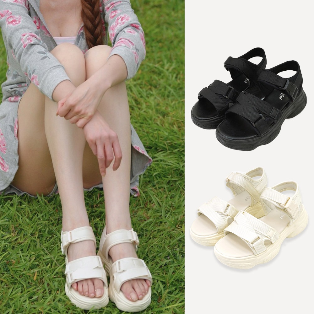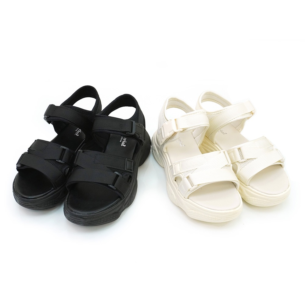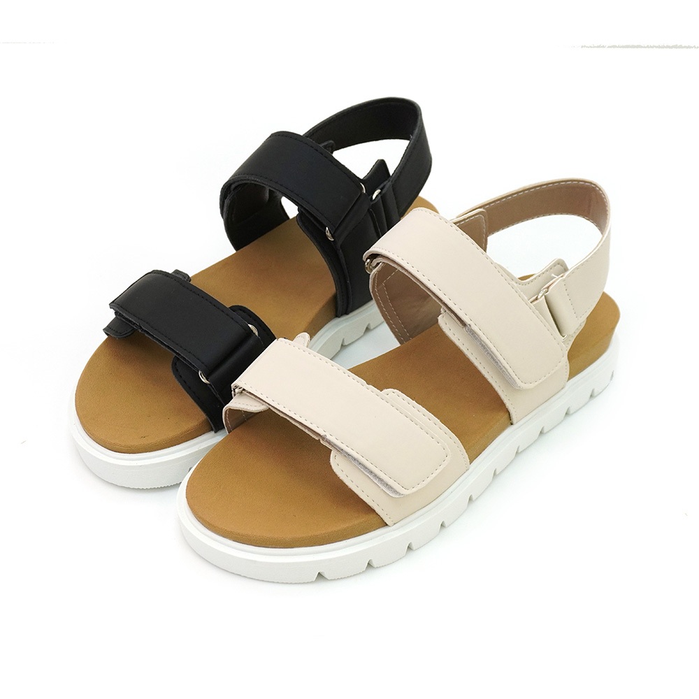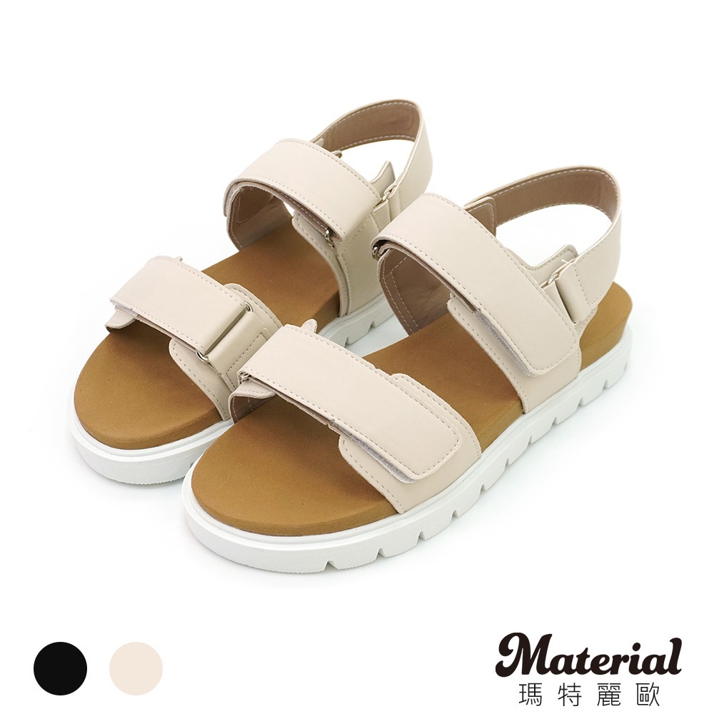 Material瑪特麗歐 T51056 【23-25】 女鞋 涼鞋 MIT雙帶魔鬼氈厚底涼鞋黑色23|黑色23.5|黑色24|黑色24.5|黑色25|米色23|米色23.5|米色24|米色24.5|米色25Flat SandalsMaterial 瑪特麗歐 台灣製女鞋品牌 旗艦店